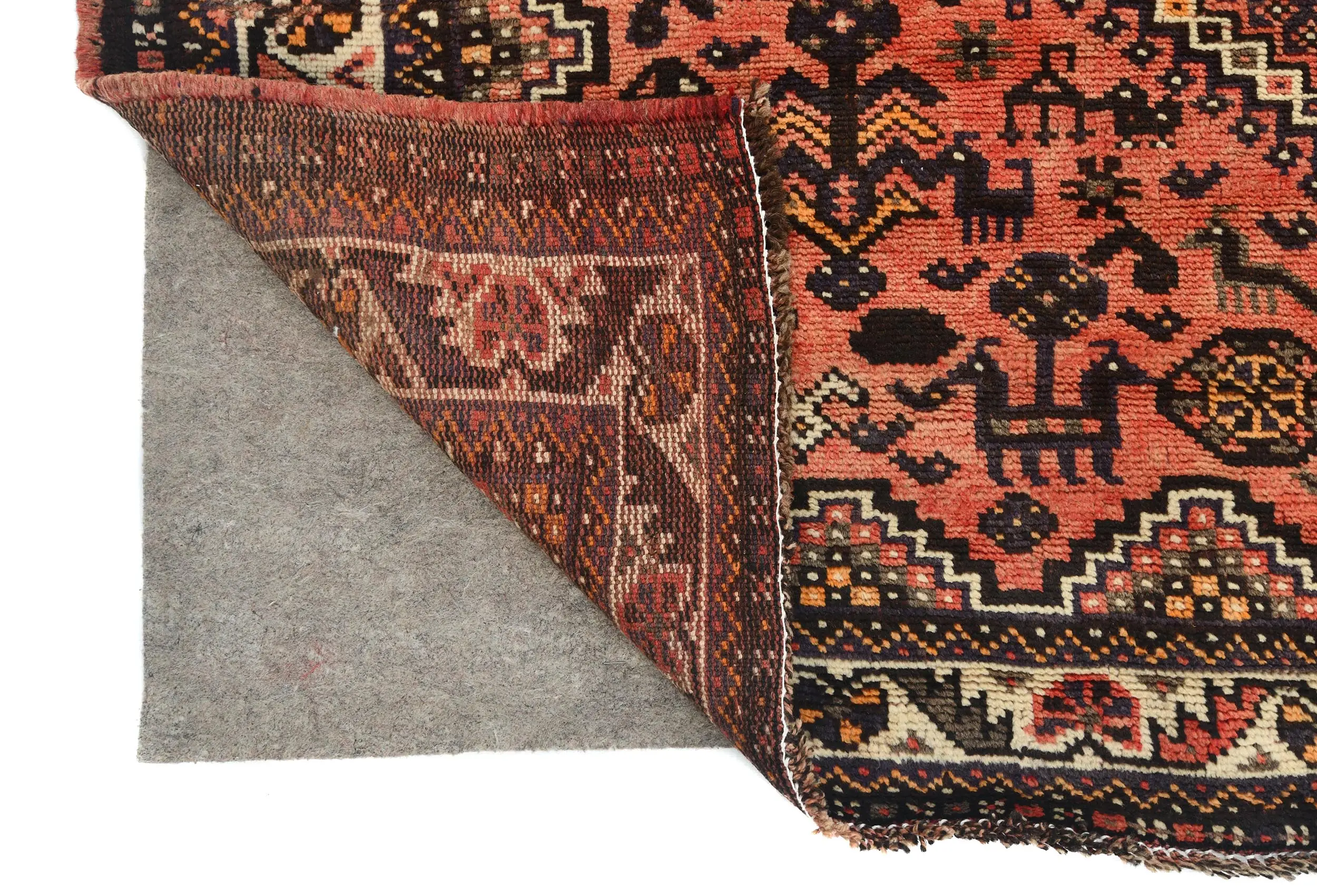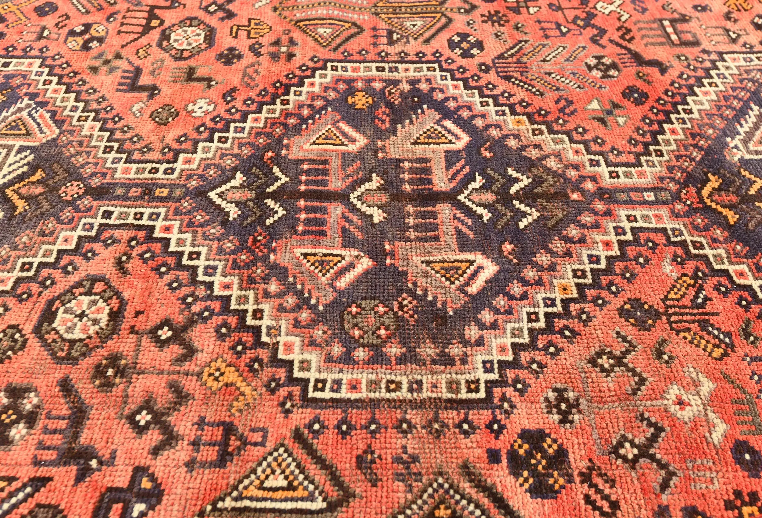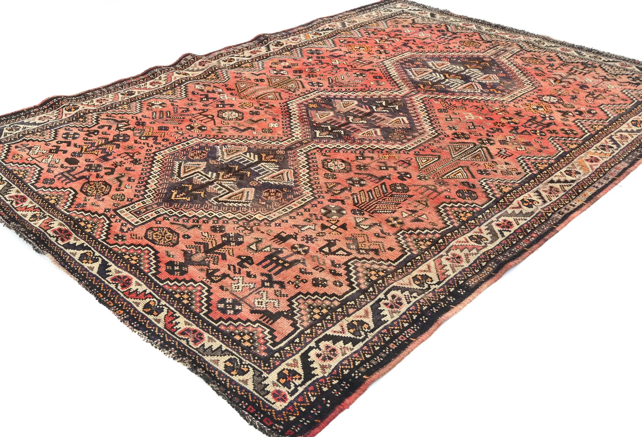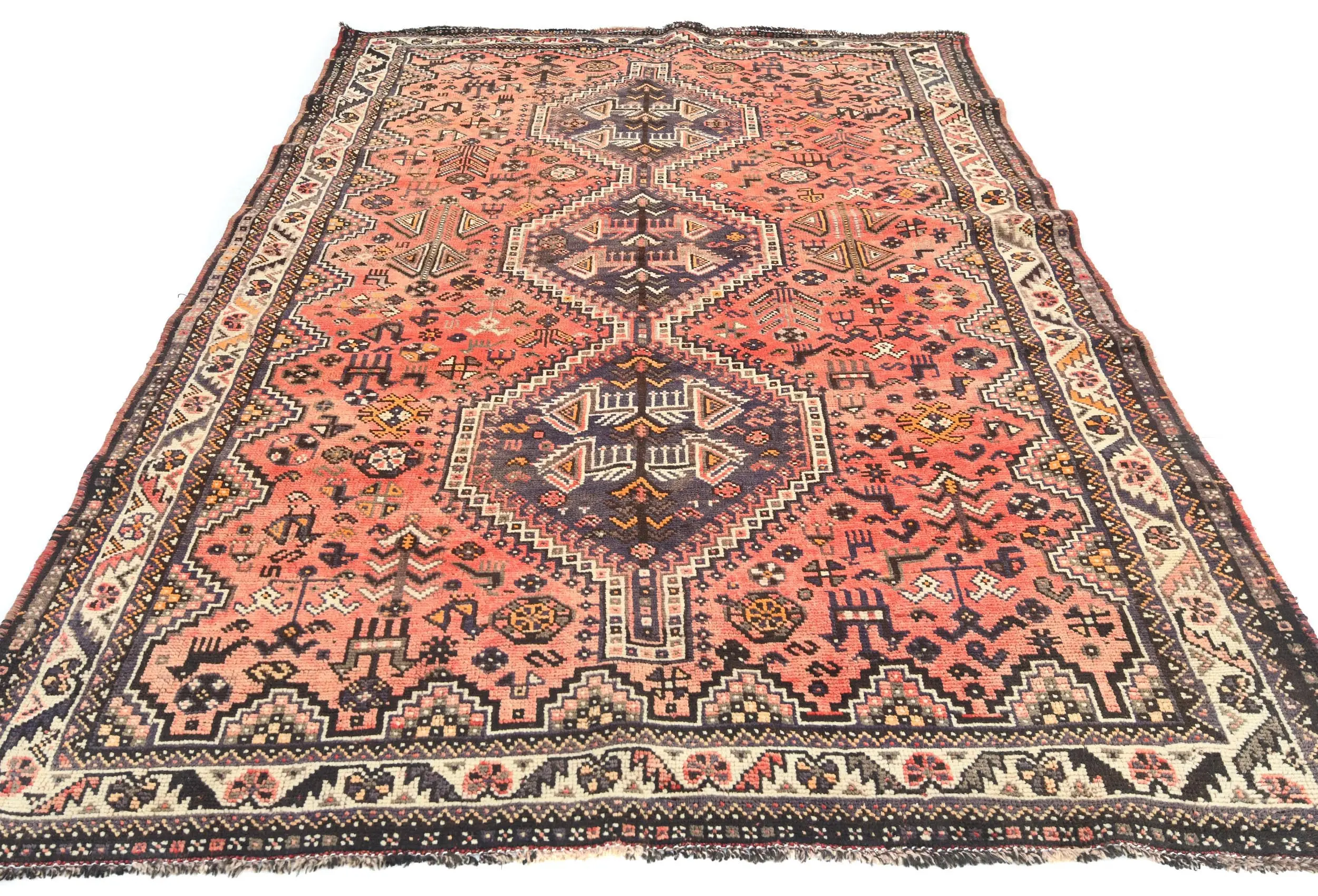 - Hand-knotted 5'6" X 7'6" Persian rug with tribal design