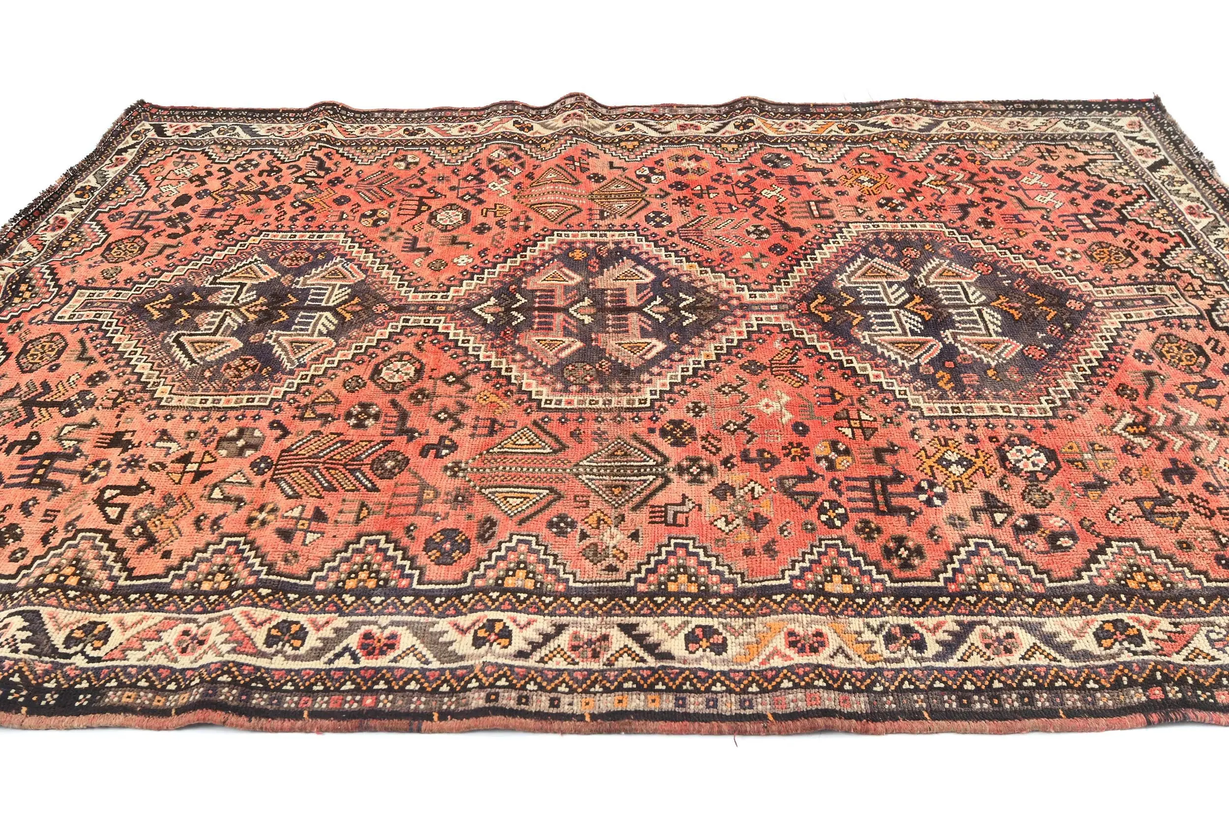 This original 5'6X7'6 bittersweet red vintage Persian rug was well-constructed by the hands of master weavers motivated by a variety of stunning artistic designs, to recreate the aged look of the exceptional piece with a richness of color and developed decorative background field. What set this tribal Oriental area rug from the others are the material and dye used (wool pile and cotton foundation), knot count, ancient designs, fantastic grades, and its regional historical connection: it has deep roots, from the story of the people who produced it to the meaning of the symbols and colors displayed across its canvas that have been praised for centuries. This home décor carpet will be completely cozy and inviting that never will go out of style! Also, this Oriental rug would be among your most valuable treasures, it is a great investment that increase in value over time, and it will last a lifetime because was woven with high-quality, all-natural wool; it won’t rip, tear, or shed. Eco-friendly, opulent yet affordable; this Persian rug will give you an extra pop of character to help define your home environment with elegance and warmth that will capture the eyes and attention of your audience (homeowners, designers, decorators, family and friends). RT-6937
