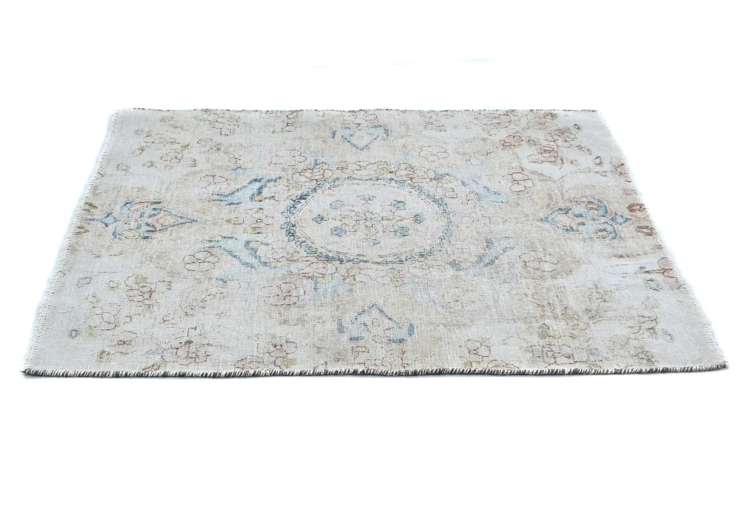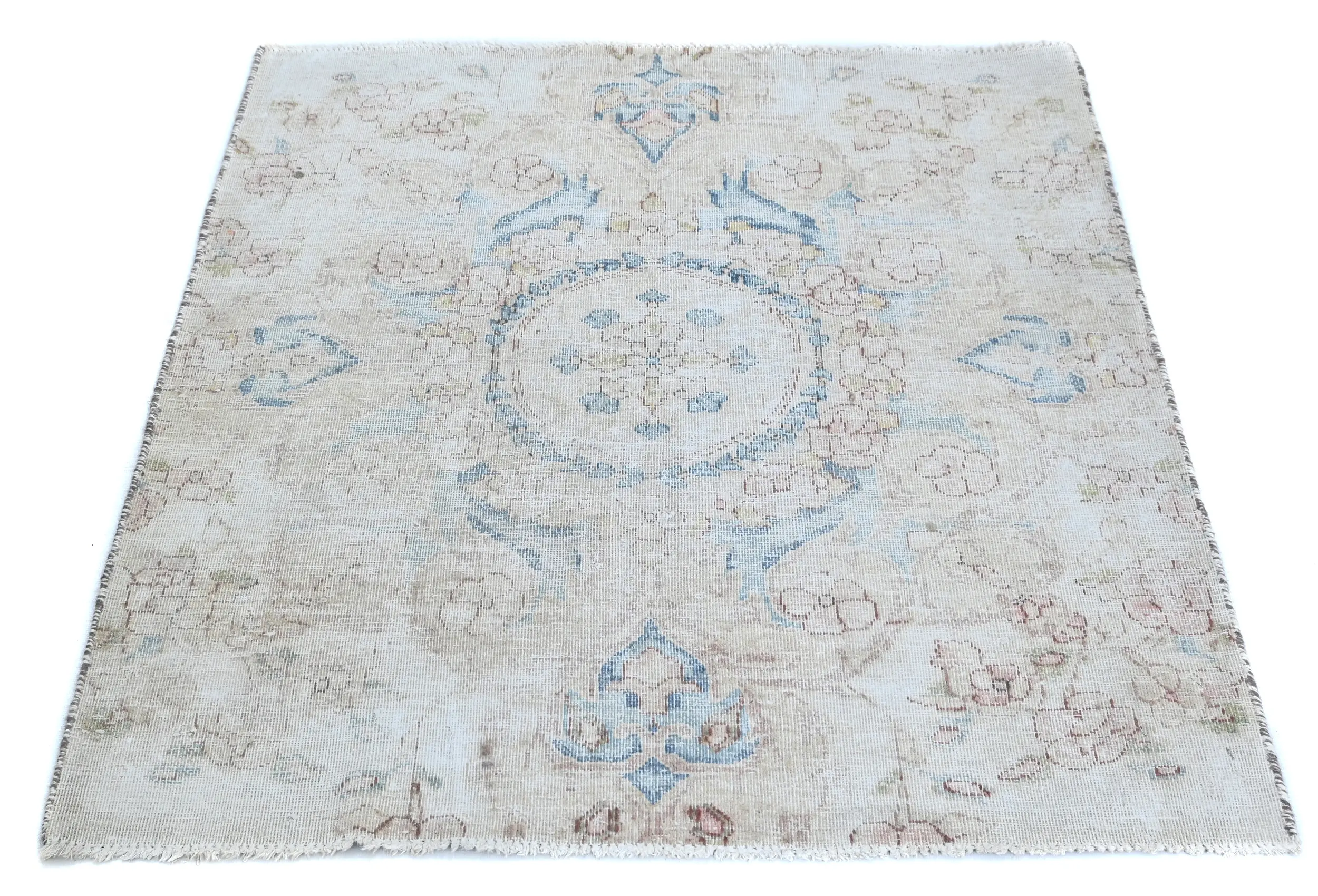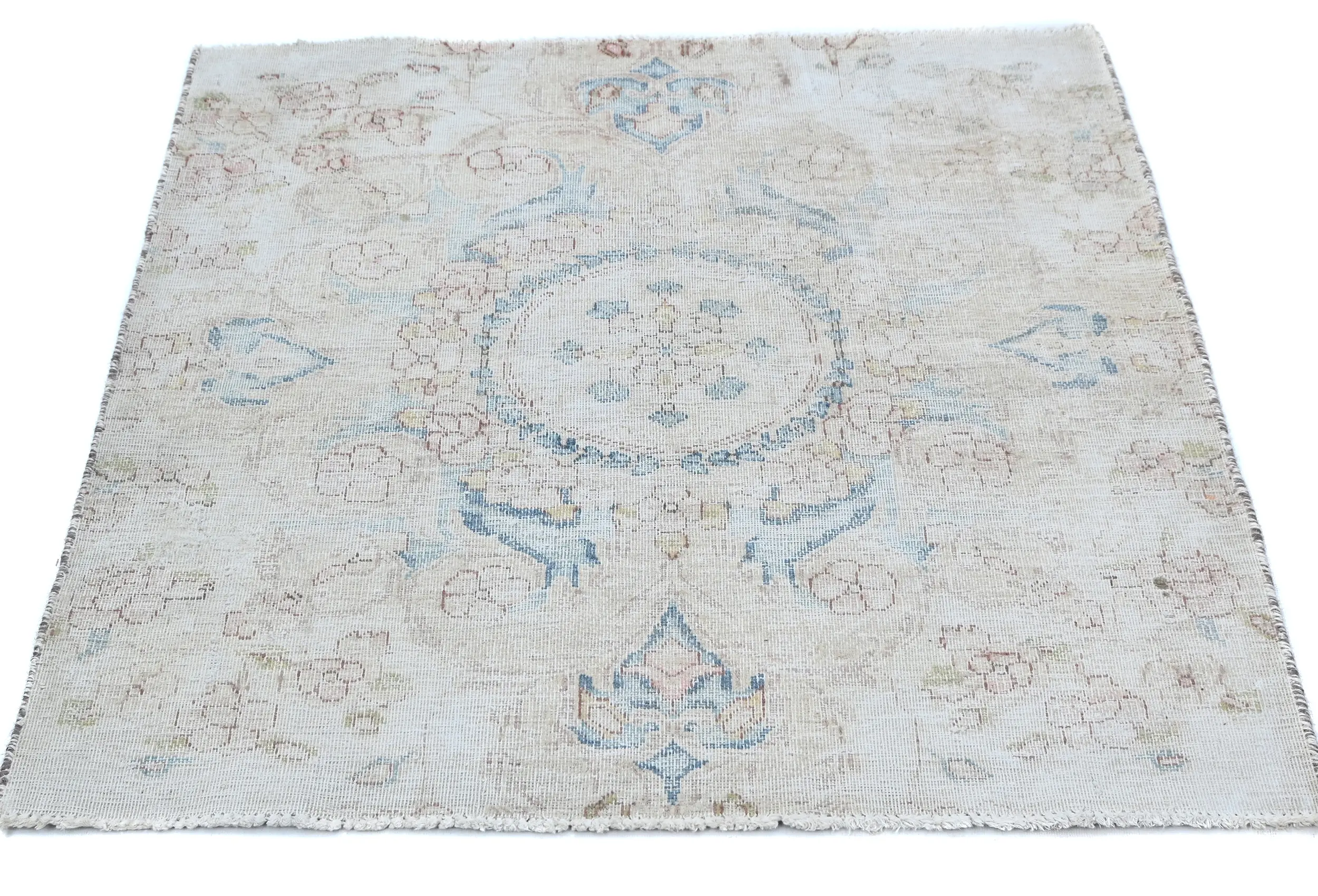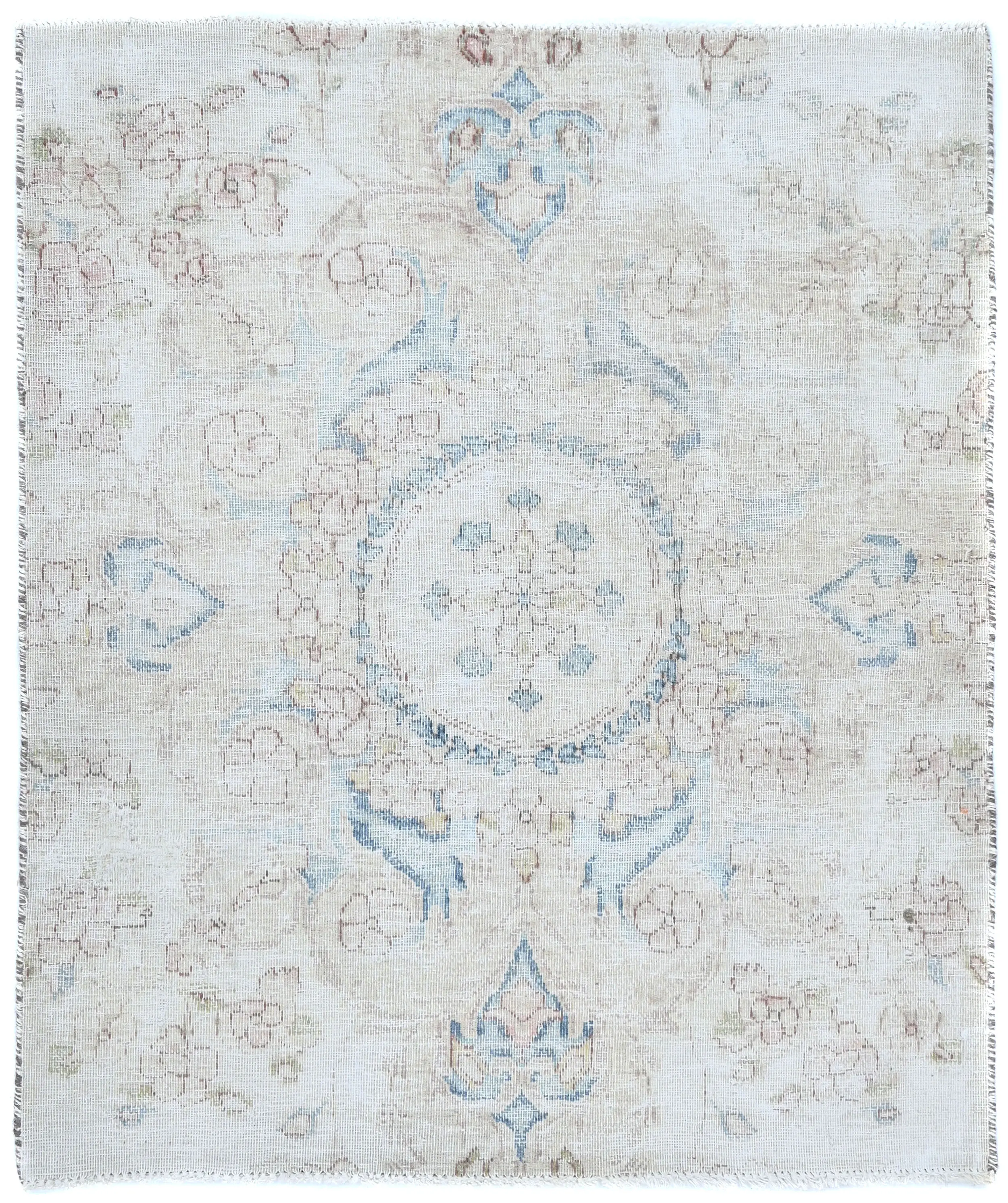 Semi Antique Muted Cream Floral 2'6X2'11 Distressed Oriental Rug