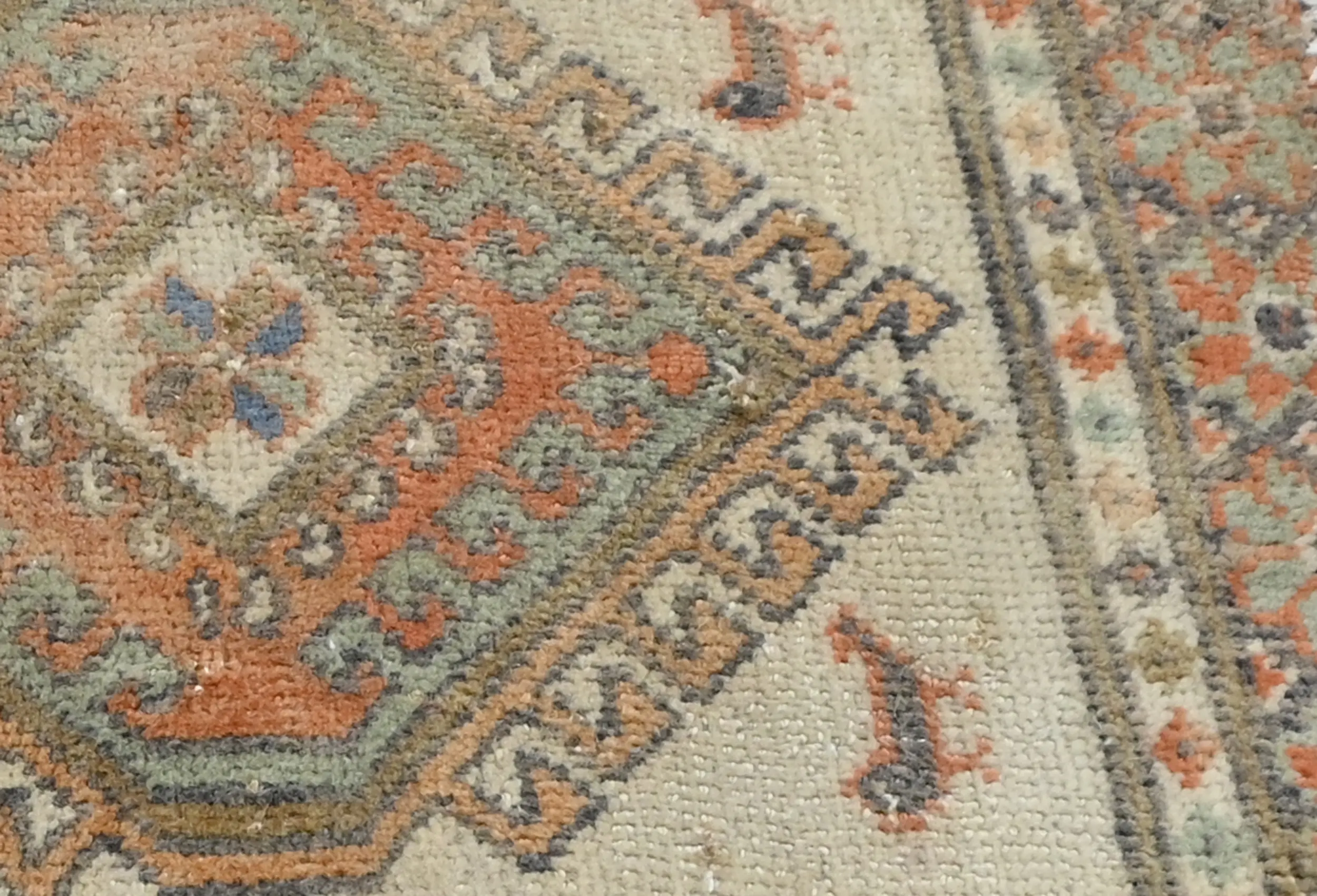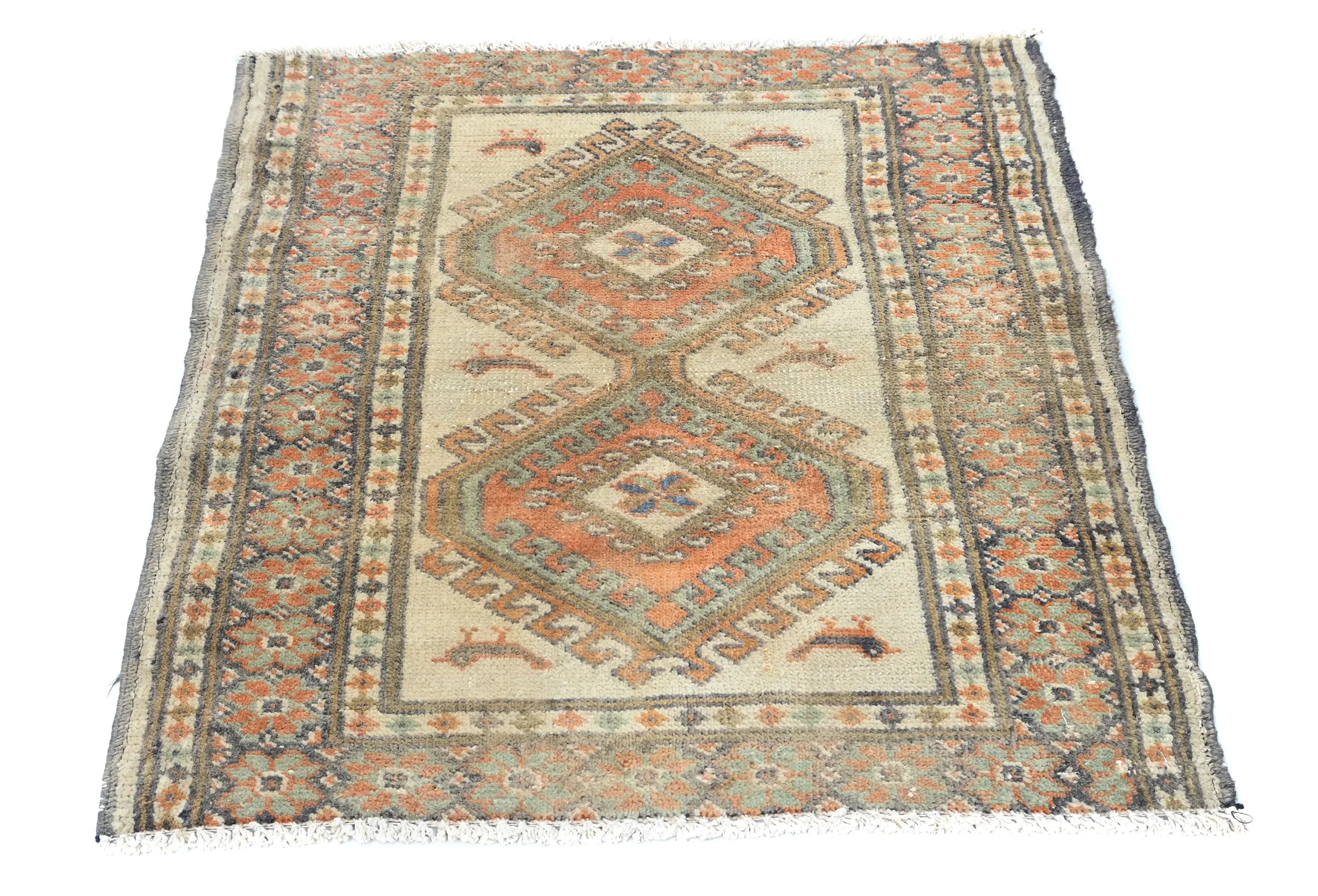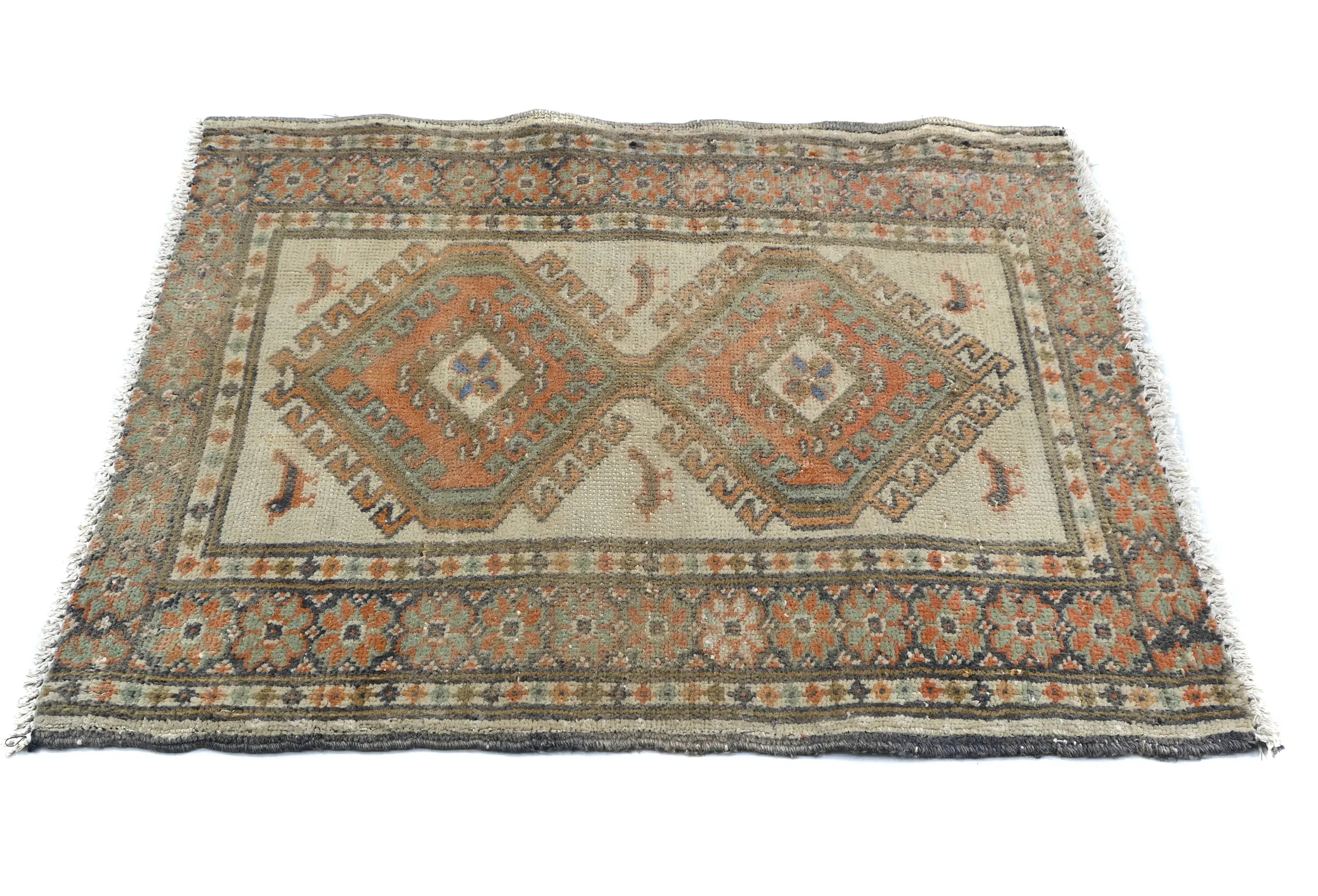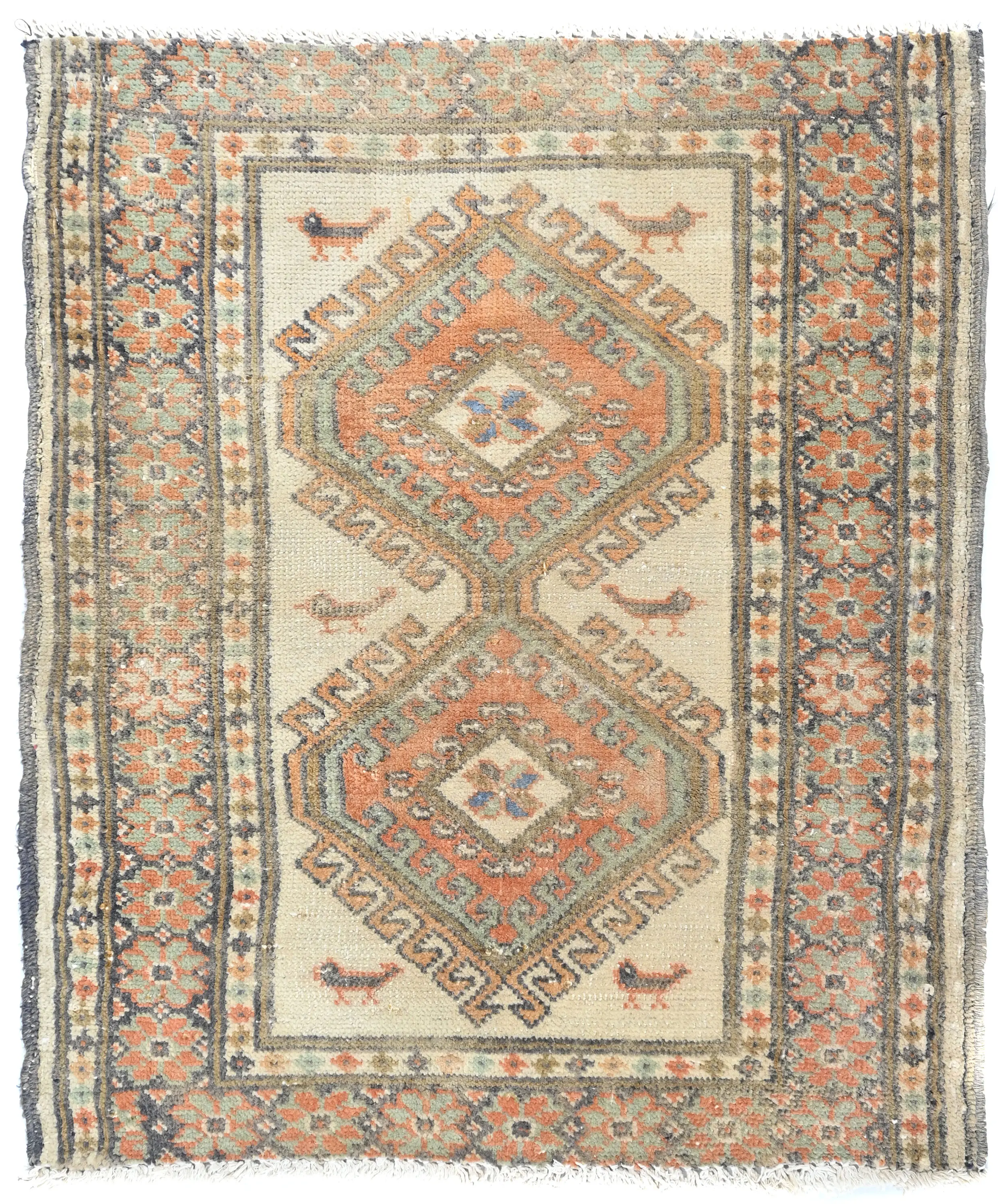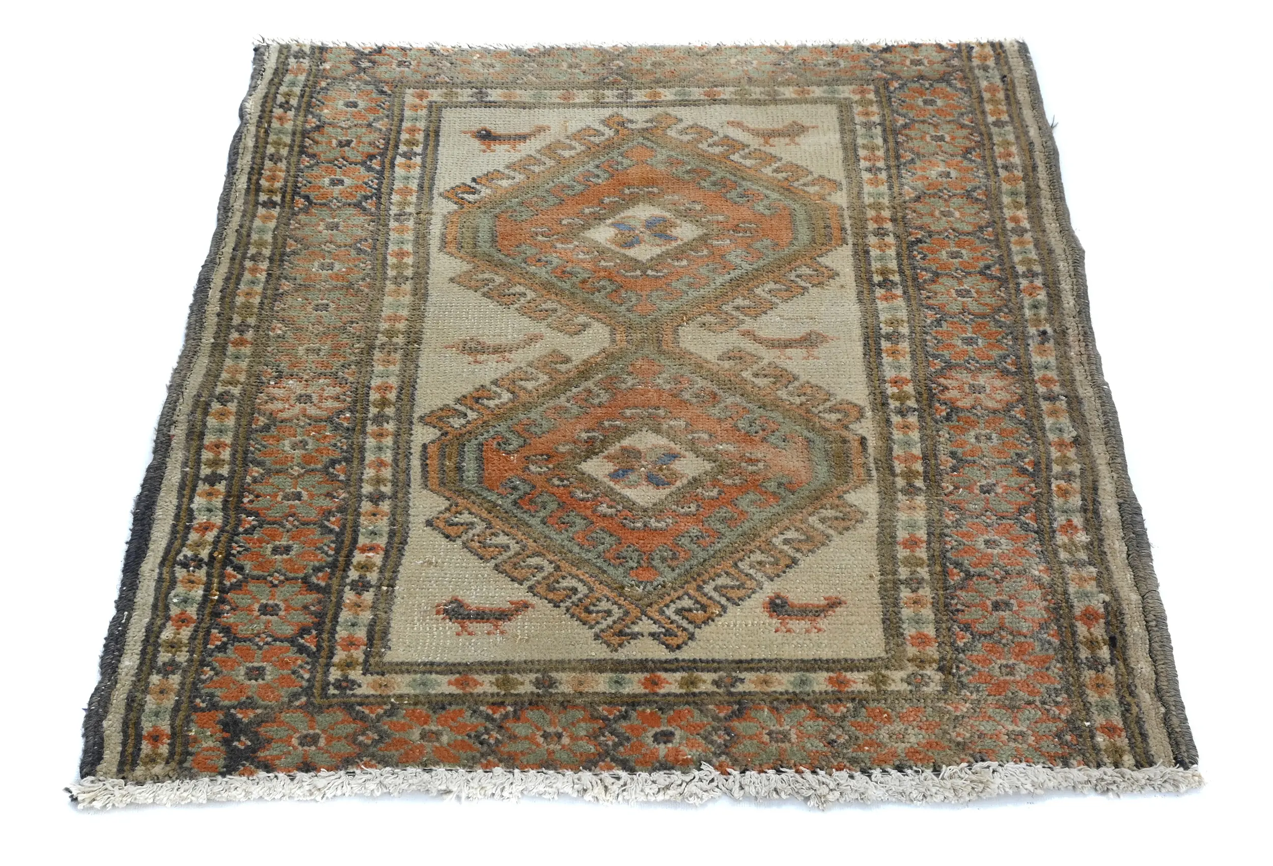 This authentic 2'1X2'3 muted cream vintage Oriental rug was finely knotted by the hands of weavers influenced by a variety of amazing artistic designs, to recreate the aged look of the exceptional piece with a richness of color and embellished background field. What set this tribal Oriental area rug from the others are the material and dye used (wool pile and cotton foundation), knot count, antique designs, fantastic grades, and its regional historical connection: it has deep roots, from the story of the people who produced it to the meaning of the symbols and colors displayed across its canvas that have been praised for centuries. This home décor carpet will be completely cozy and inviting that never will go out of style! Also, this Oriental rug would be among your most valuable treasures, it is a great investment that increase in value over time, and it will last a lifetime because was woven with high-quality, all-natural wool; it won’t rip, tear, or shed. Eco-friendly, opulent yet affordable; this Persian rug will give you an extra pop of character to help define your home environment with luxury and warmth that will capture the eyes and attention of your audience (homeowners, designers, decorators, family and friends). RT-7780
