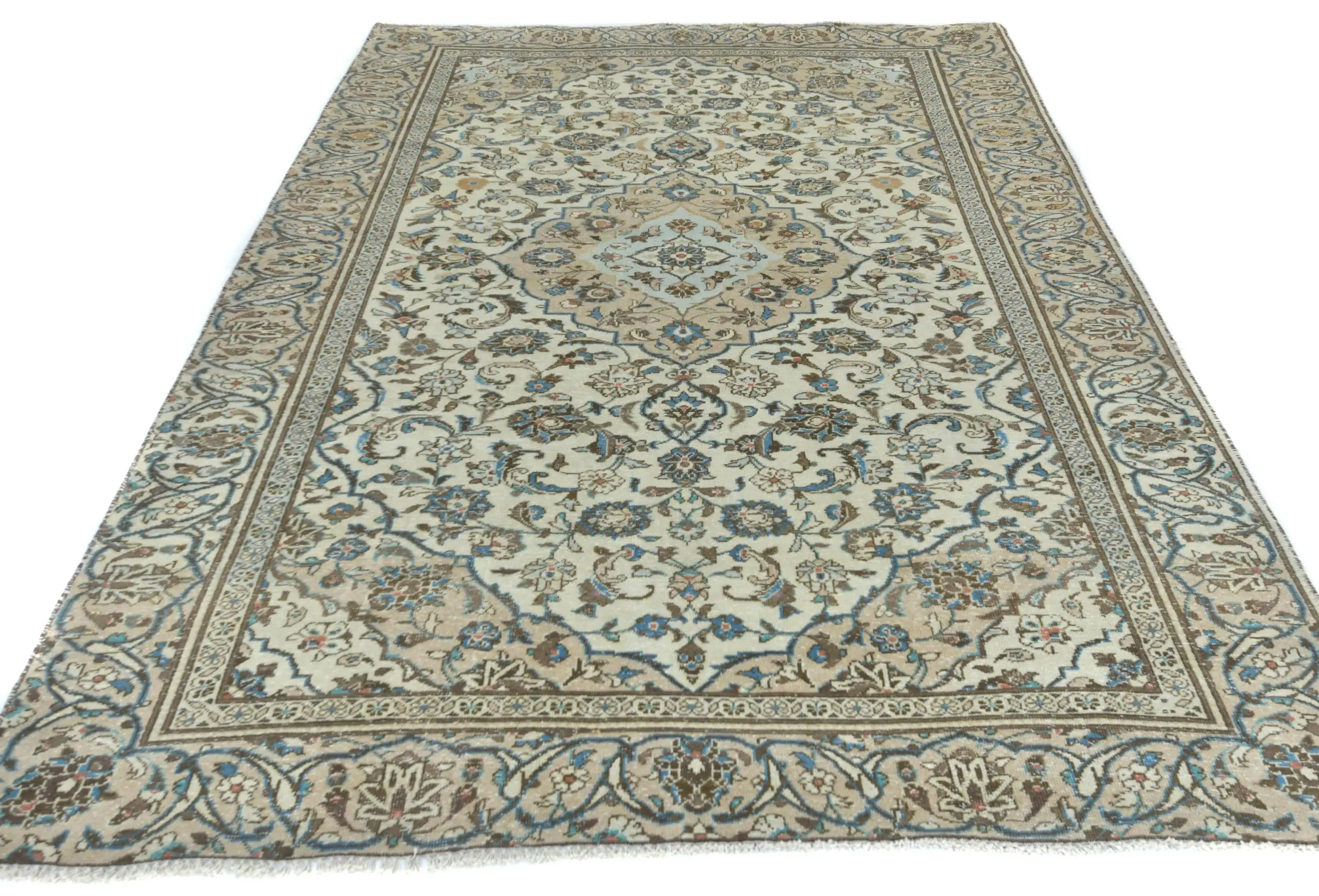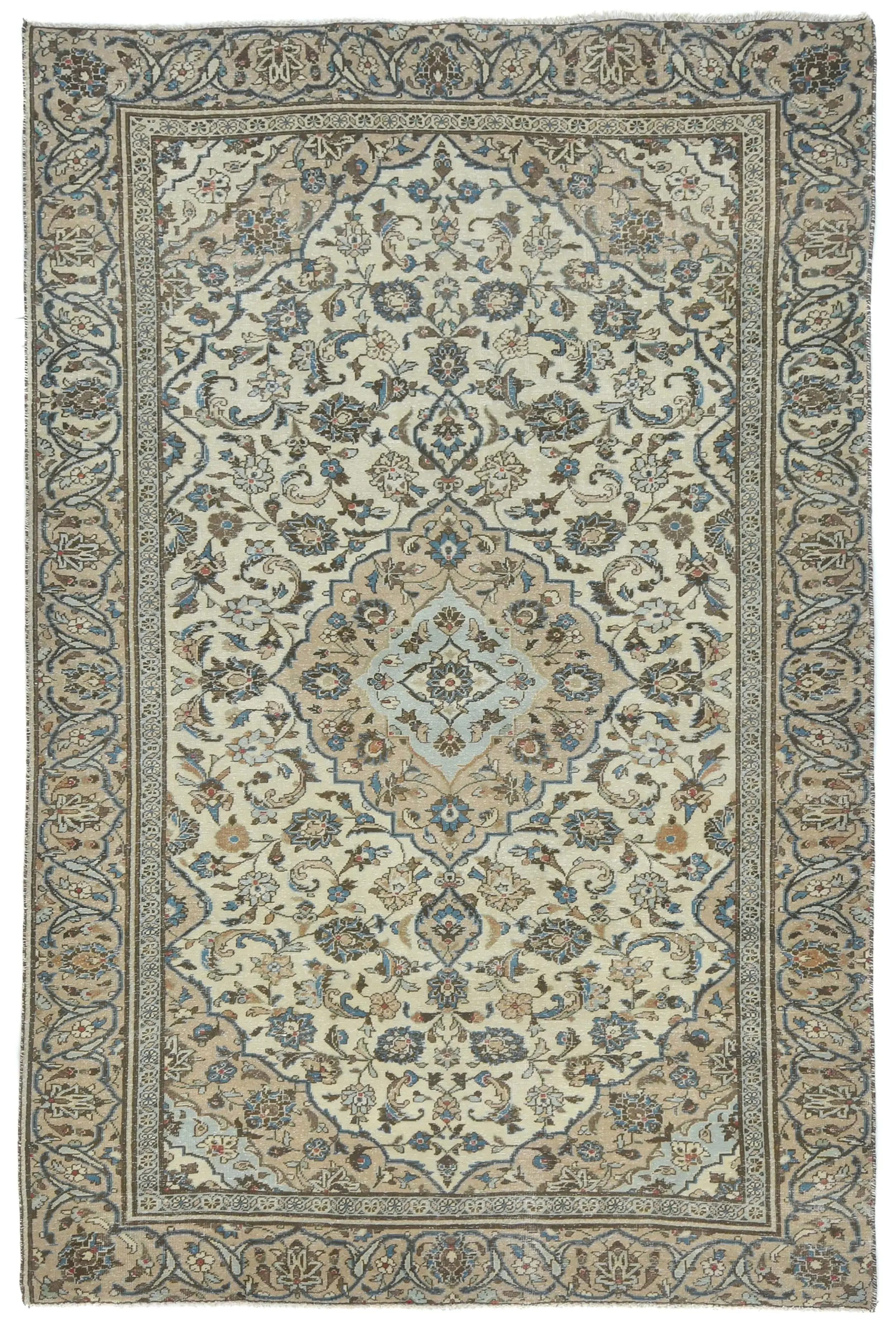 Hand Knotted 6X9 cream oriental rug made with vegetable dyes (fine wool pile and cotton foundation), superior knot count, and appealing ancient designs. This Oriental rug never will go out of style and would be among your most valuable treasures.