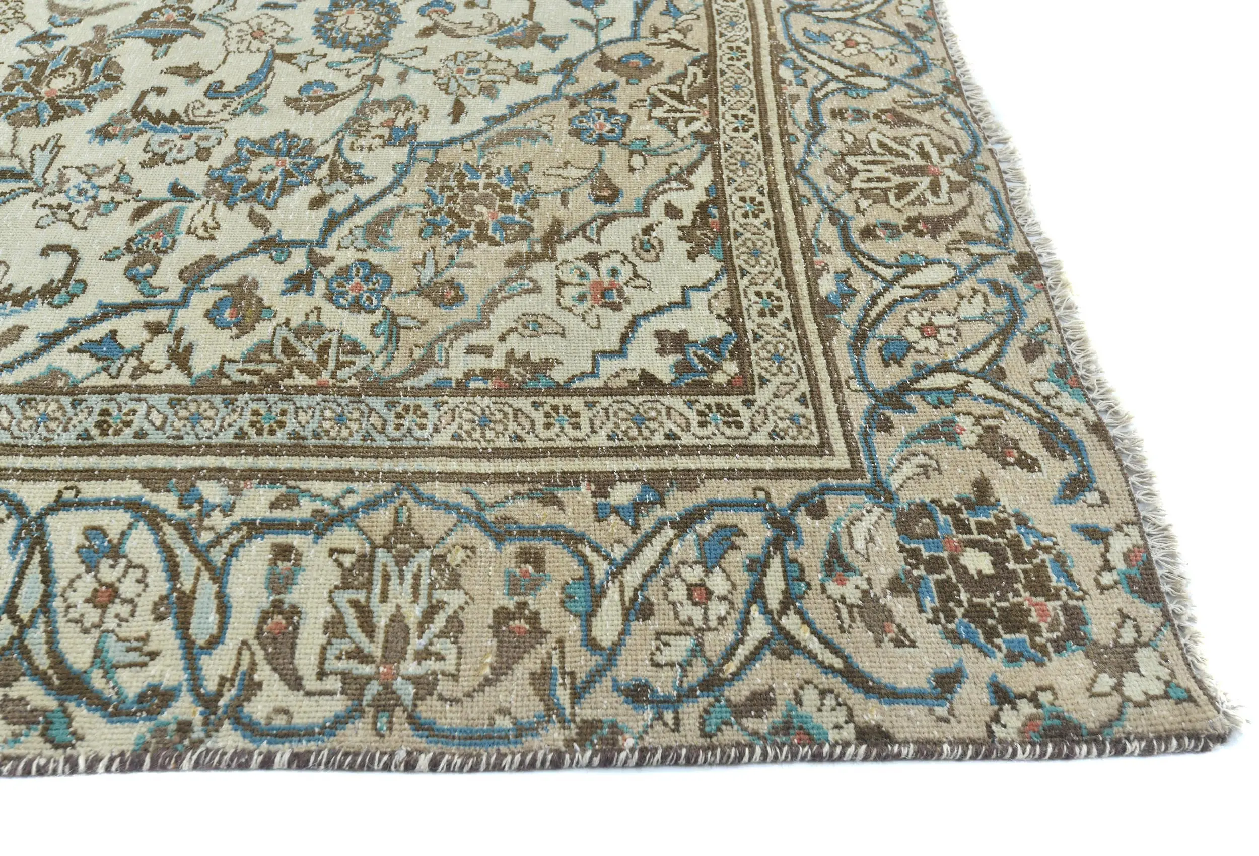 Semi Antique Muted Cream Floral 6X9 Distressed Vintage Oriental Rug