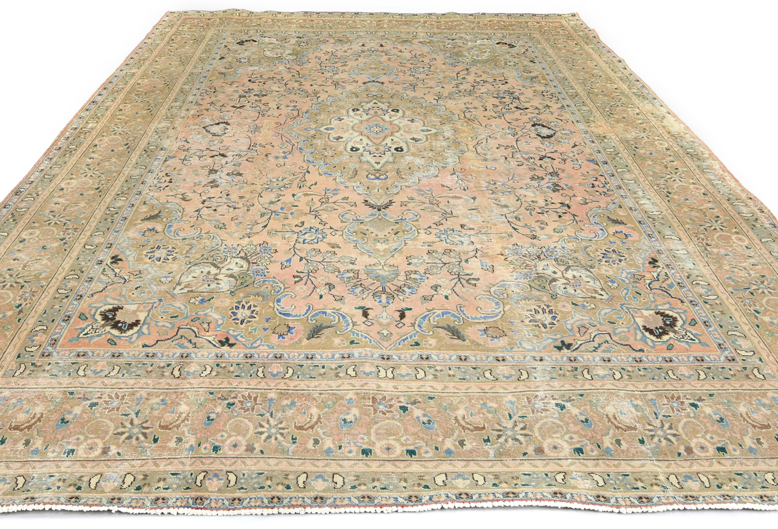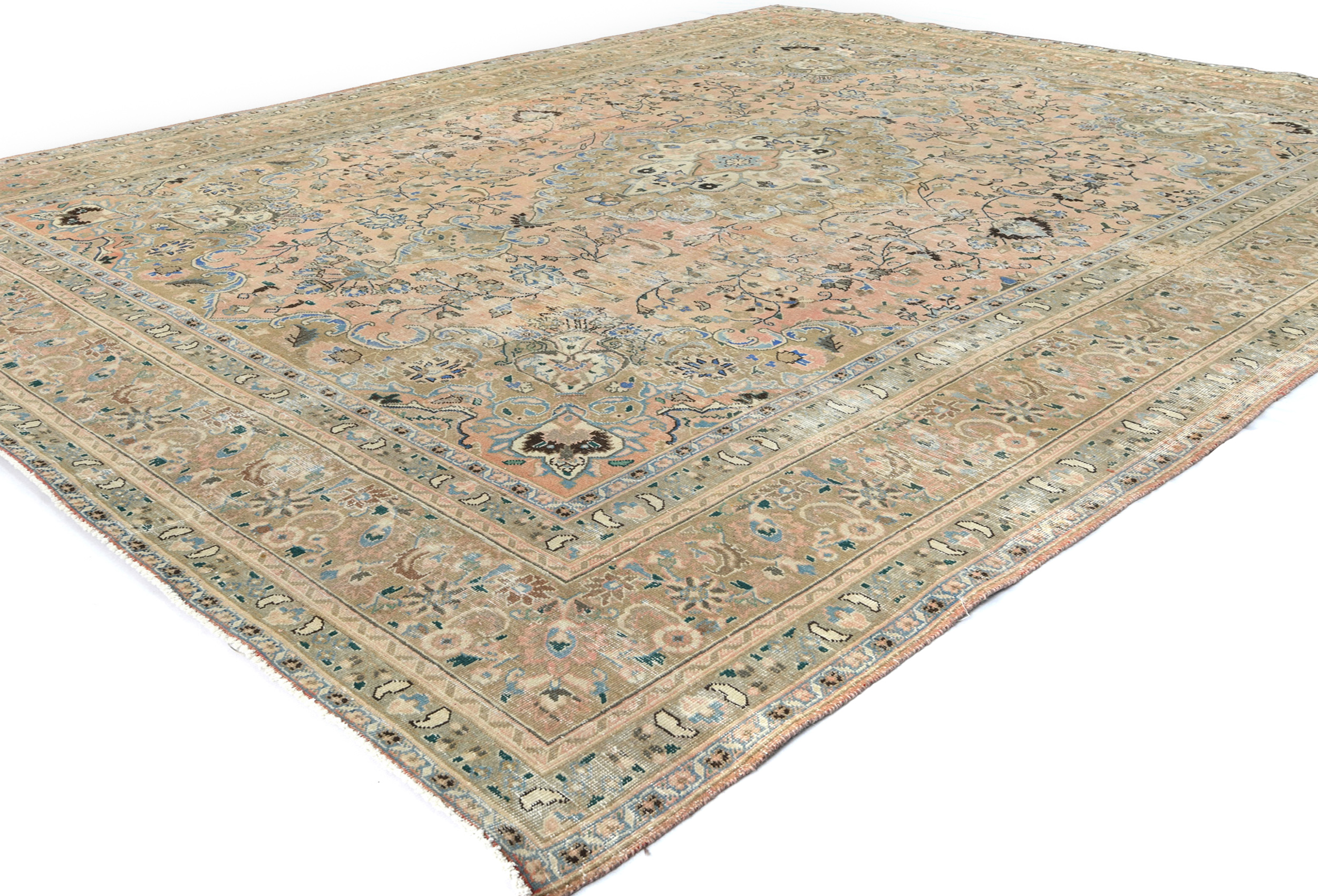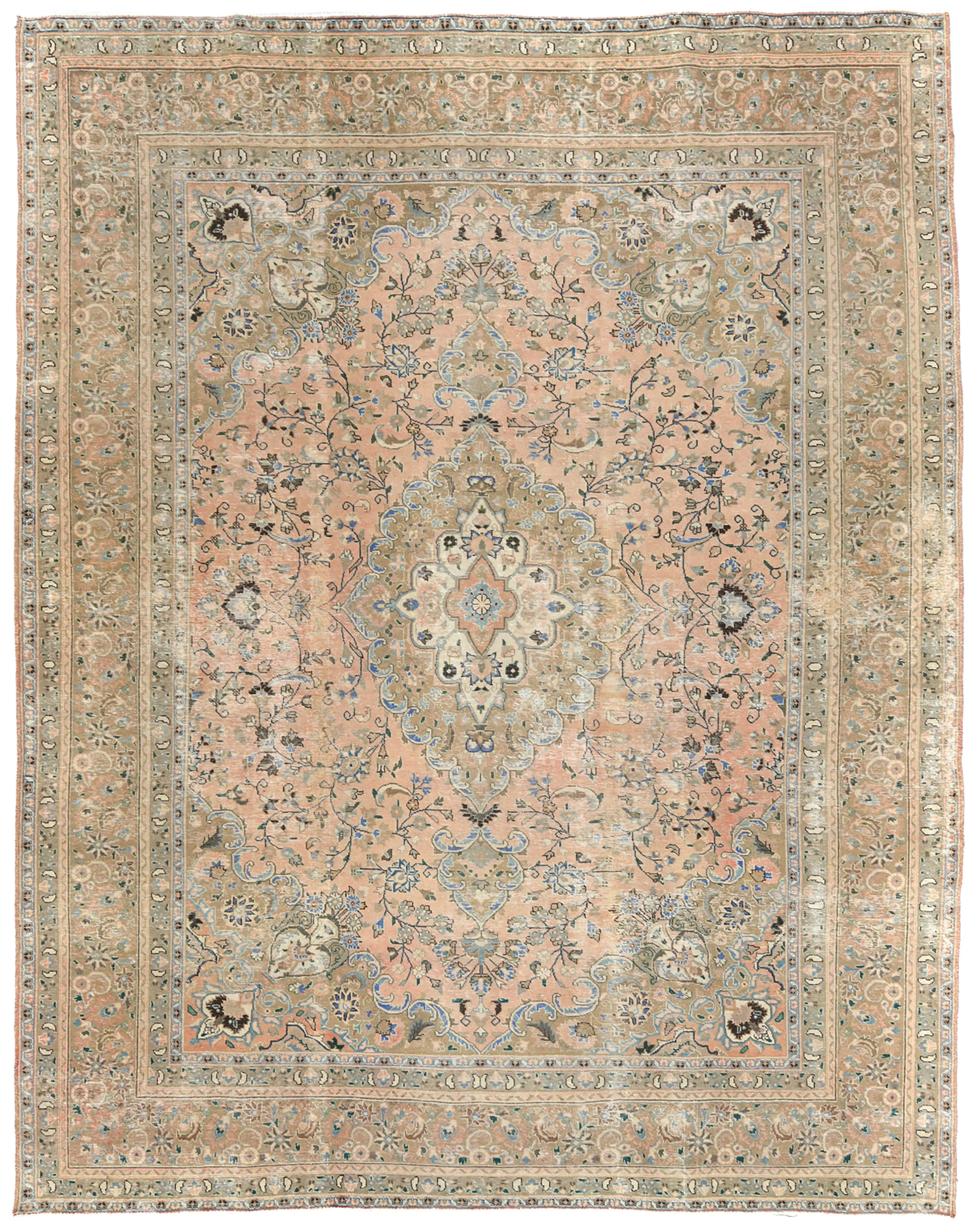 Semi Antique Muted Beige Floral 10X12 Distressed Vintage Oriental Rug