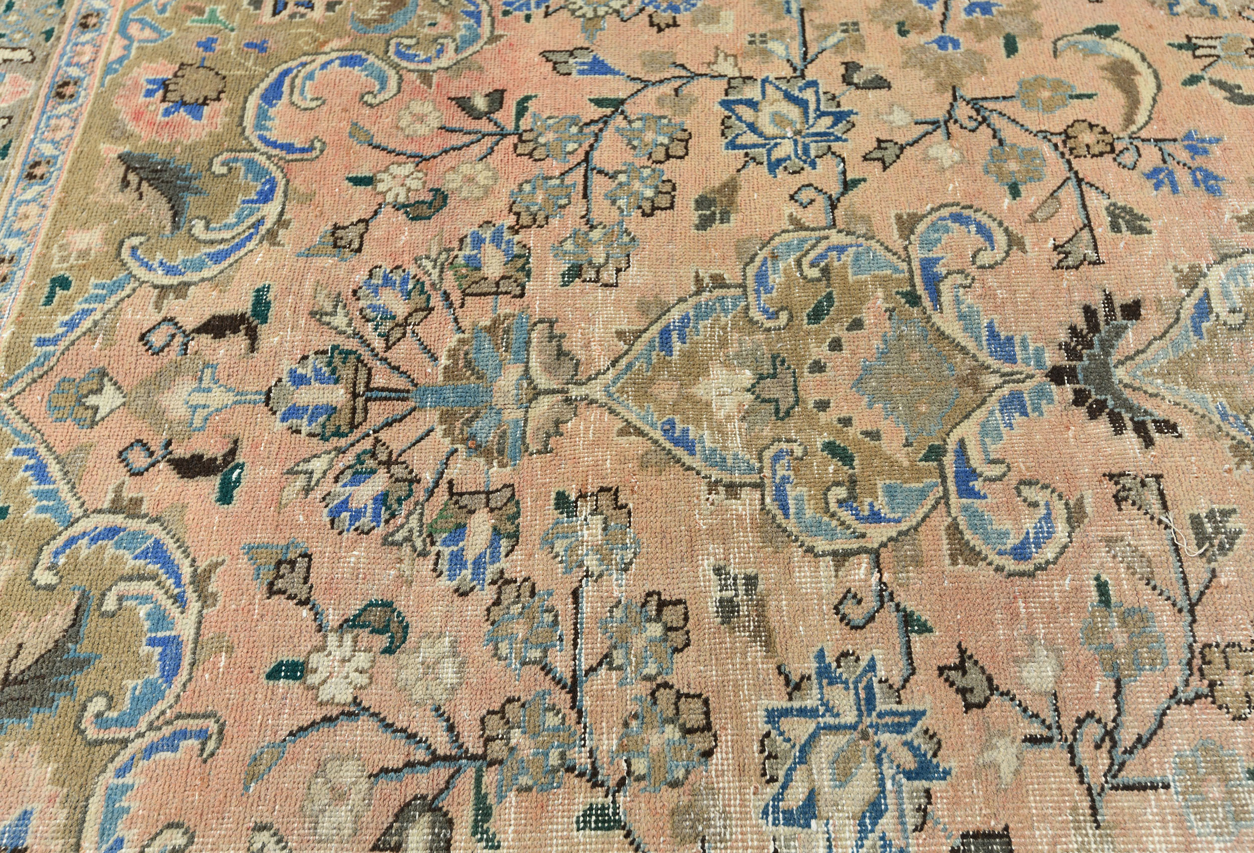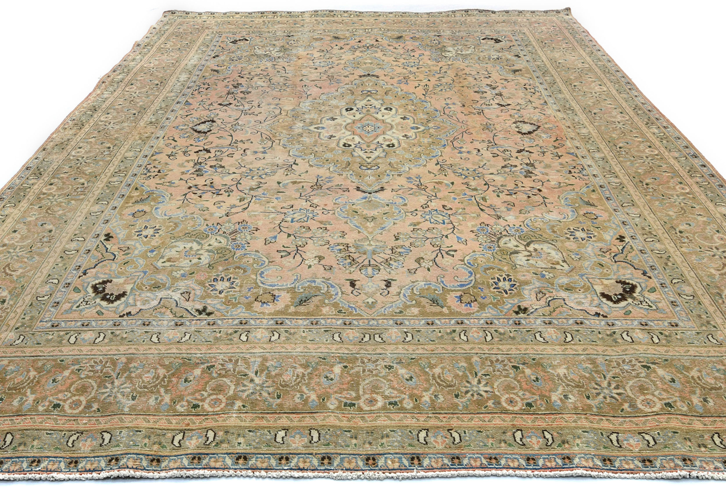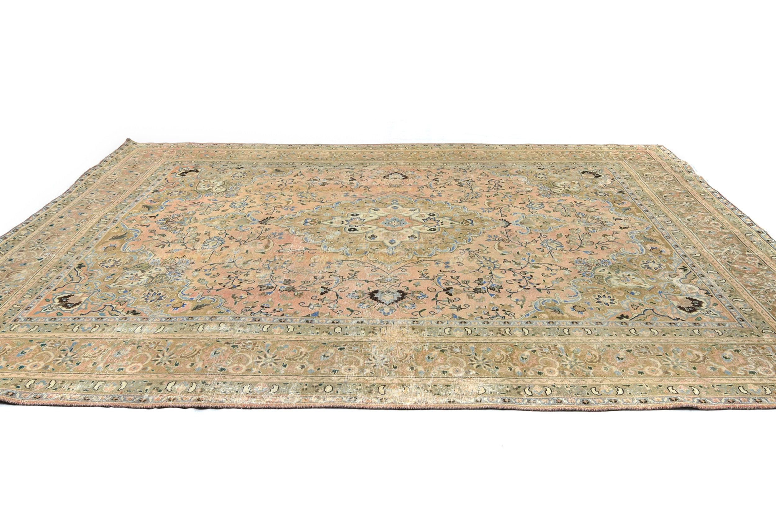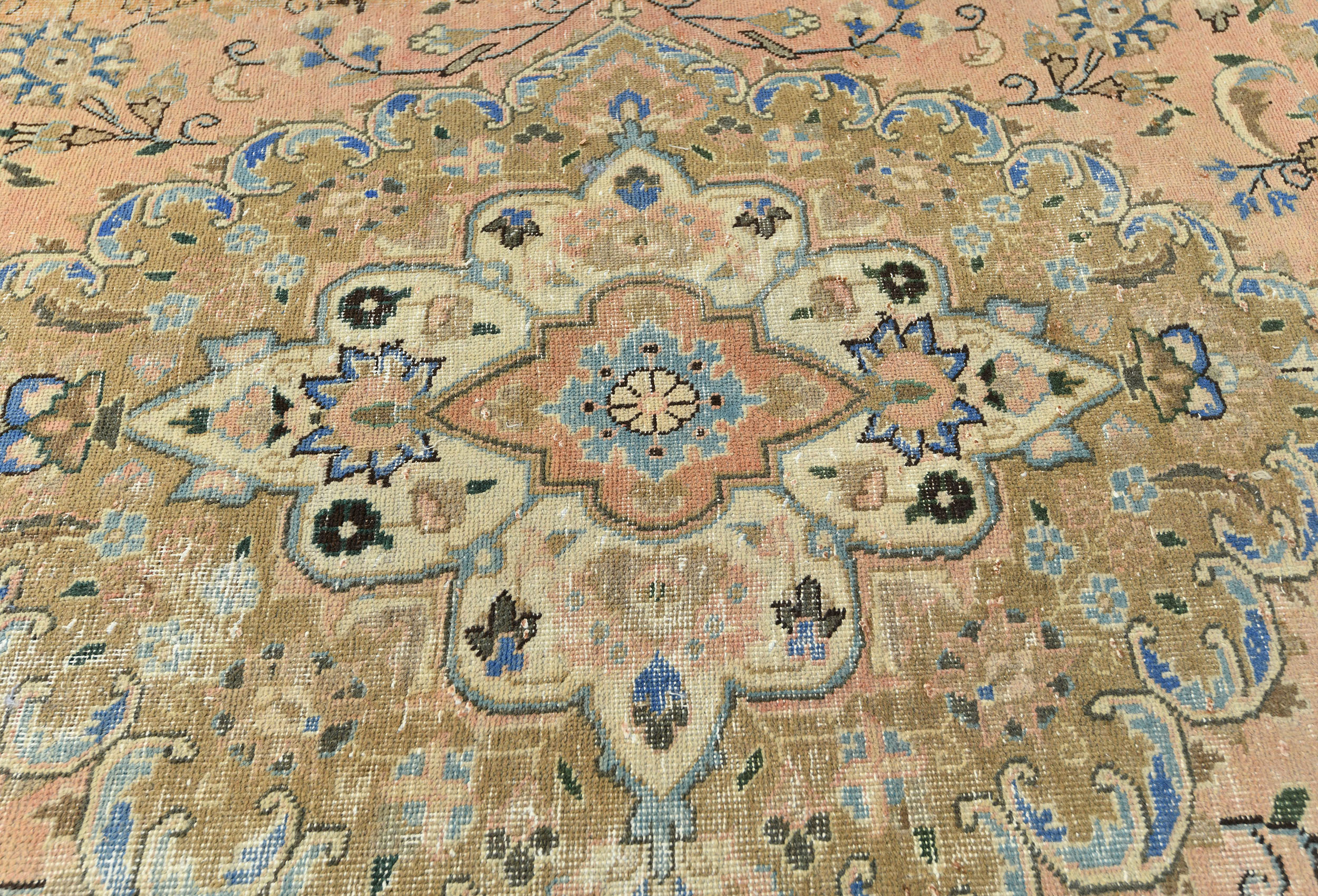 Semi Antique Muted Beige Floral 10X12 Distressed Vintage Oriental Rug