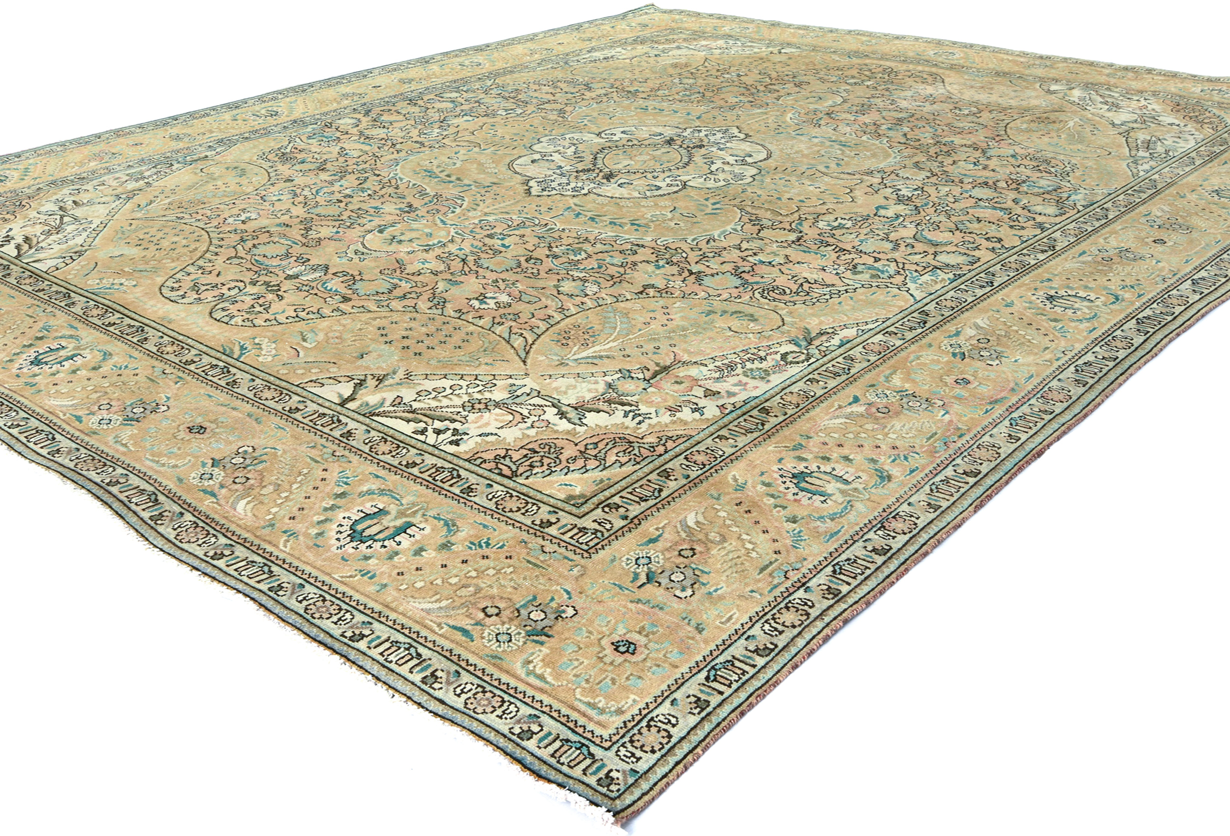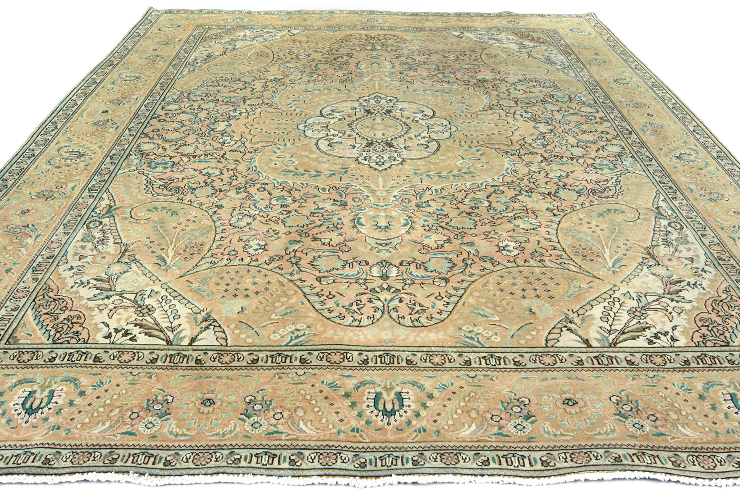 Semi Antique Muted Floral 10X12 Distressed Vintage Oriental Rug