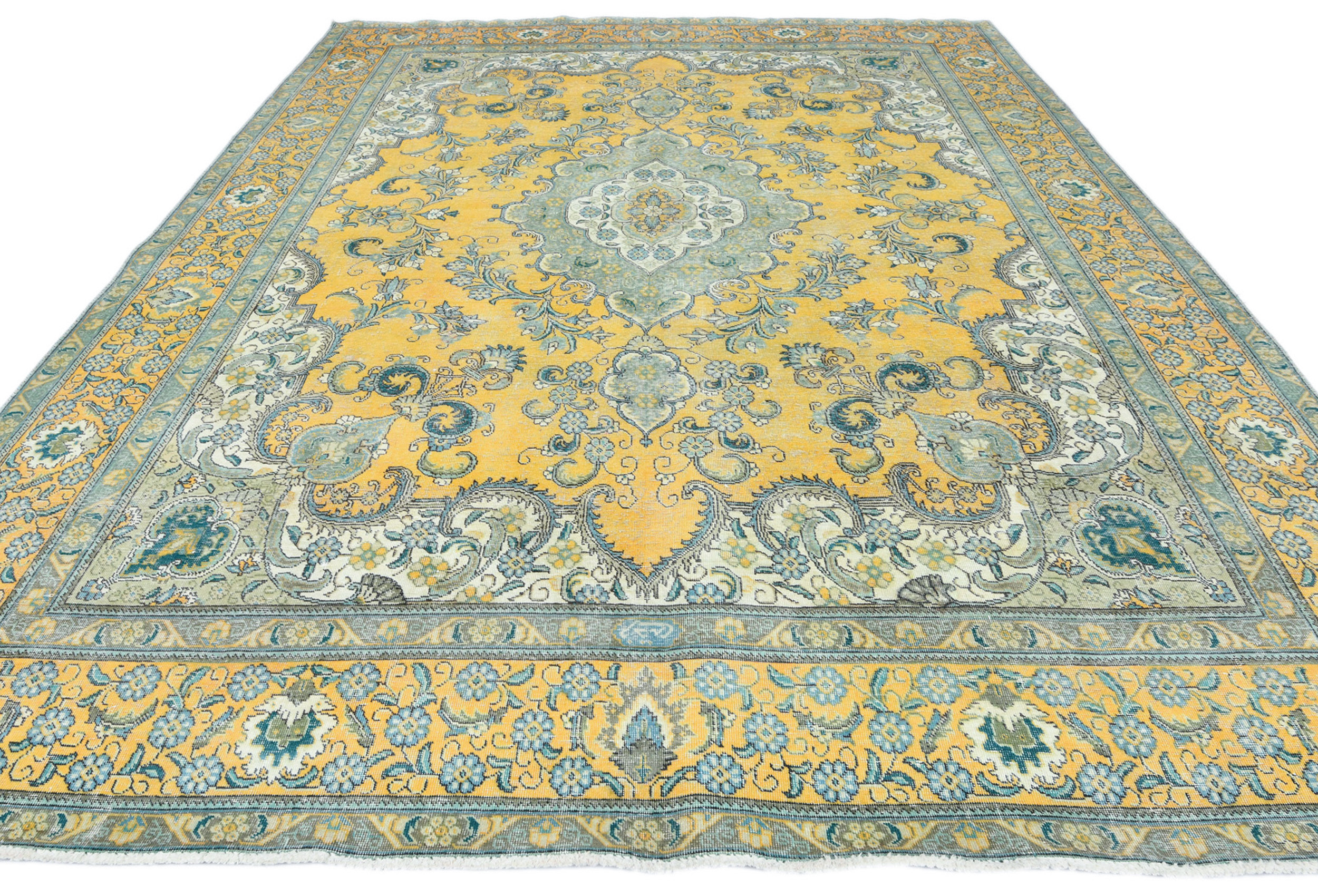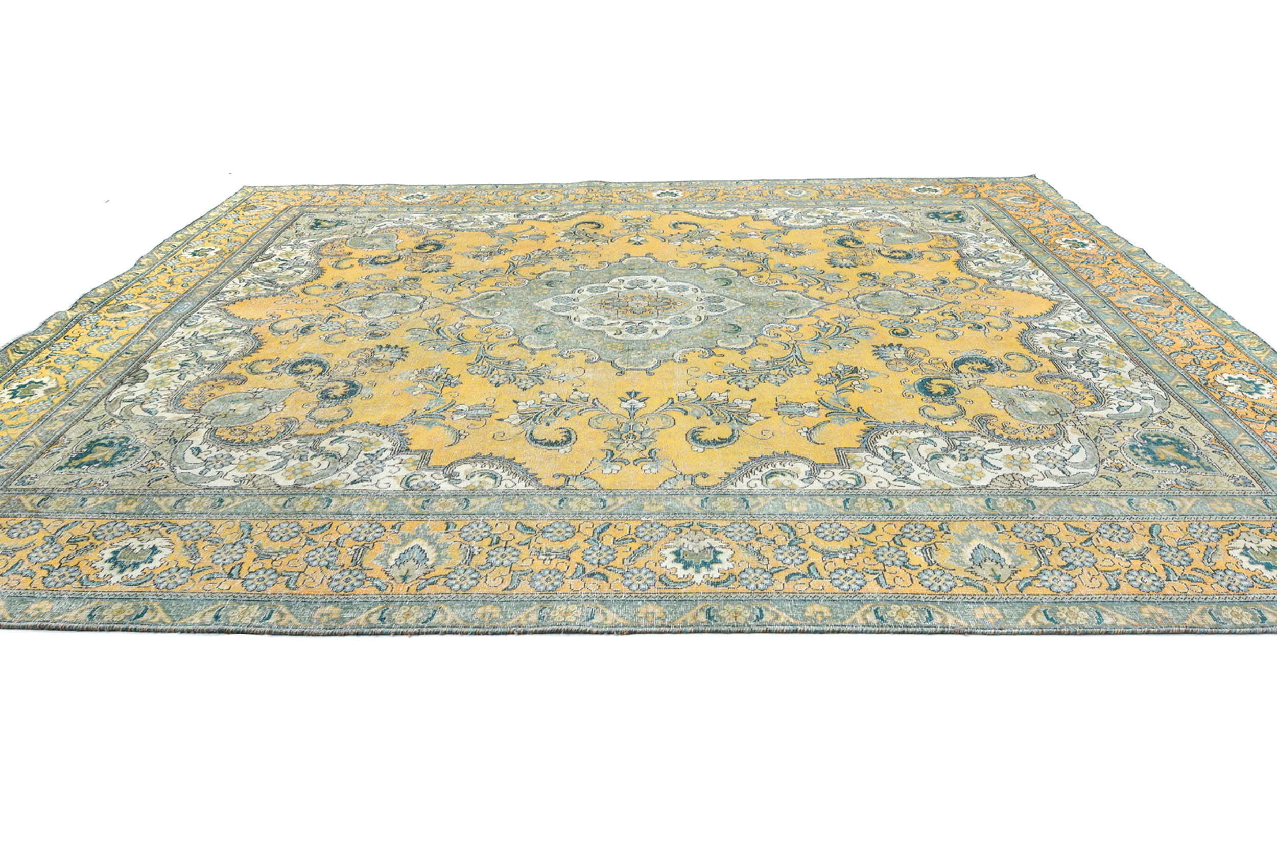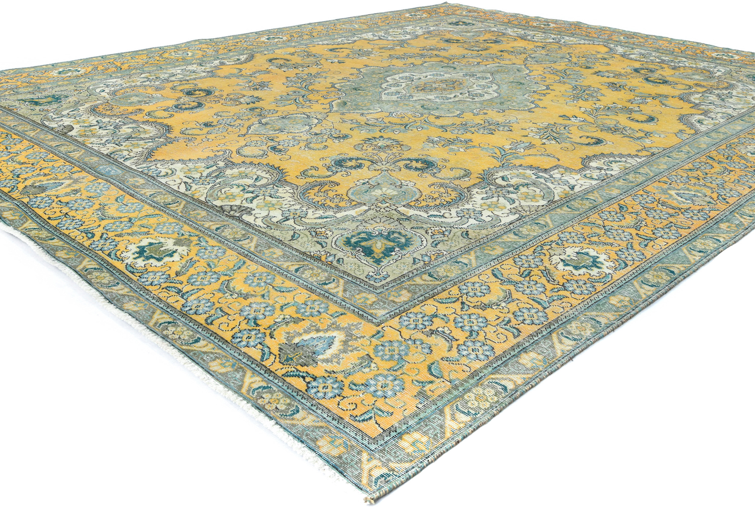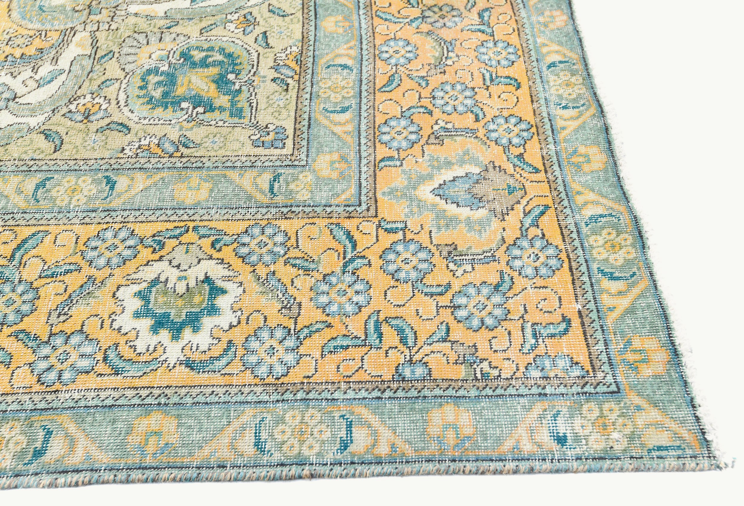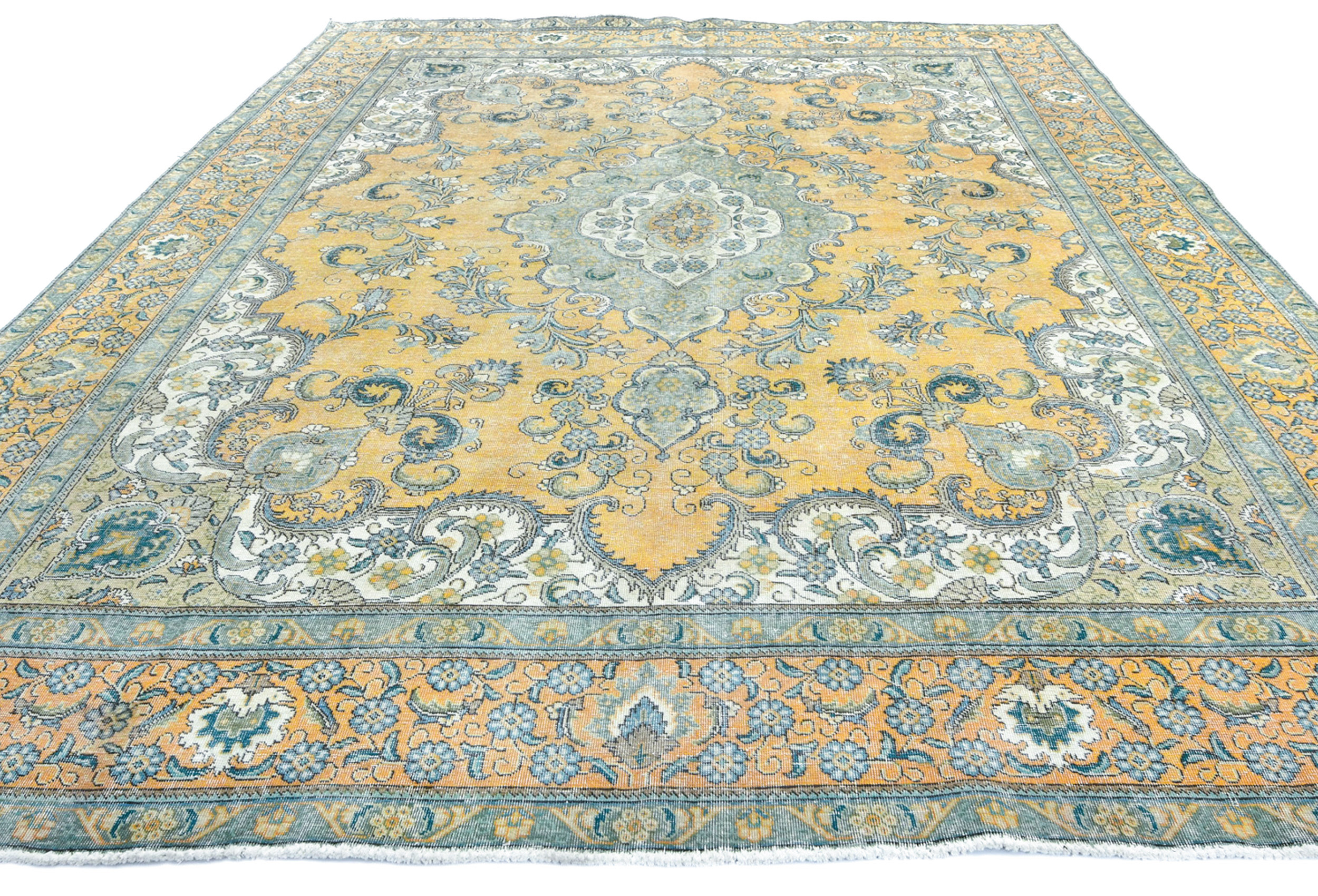 This authentic 10X12 gold vintage Oriental rug was finely knotted by the hands of weavers influenced by a variety of amazing artistic designs, to recreate the aged look of the exceptional piece with a richness of color and embellished background field. What set this tribal Oriental area rug from the others are the material and dye used (wool pile and cotton foundation), knot count, antique designs, fantastic grades, and its regional historical connection: it has deep roots, from the story of the people who produced it to the meaning of the symbols and colors displayed across its canvas that have been praised for centuries. This home décor carpet will be completely cozy and inviting that never will go out of style! Also, this Oriental rug would be among your most valuable treasures, it is a great investment that increase in value over time, and it will last a lifetime because was woven with high-quality, all-natural wool; it won’t rip, tear, or shed. Eco-friendly, opulent yet affordable; this Persian rug will give you an extra pop of character to help define your home environment with luxury and warmth that will capture the eyes and attention of your audience (homeowners, designers, decorators, family and friends).