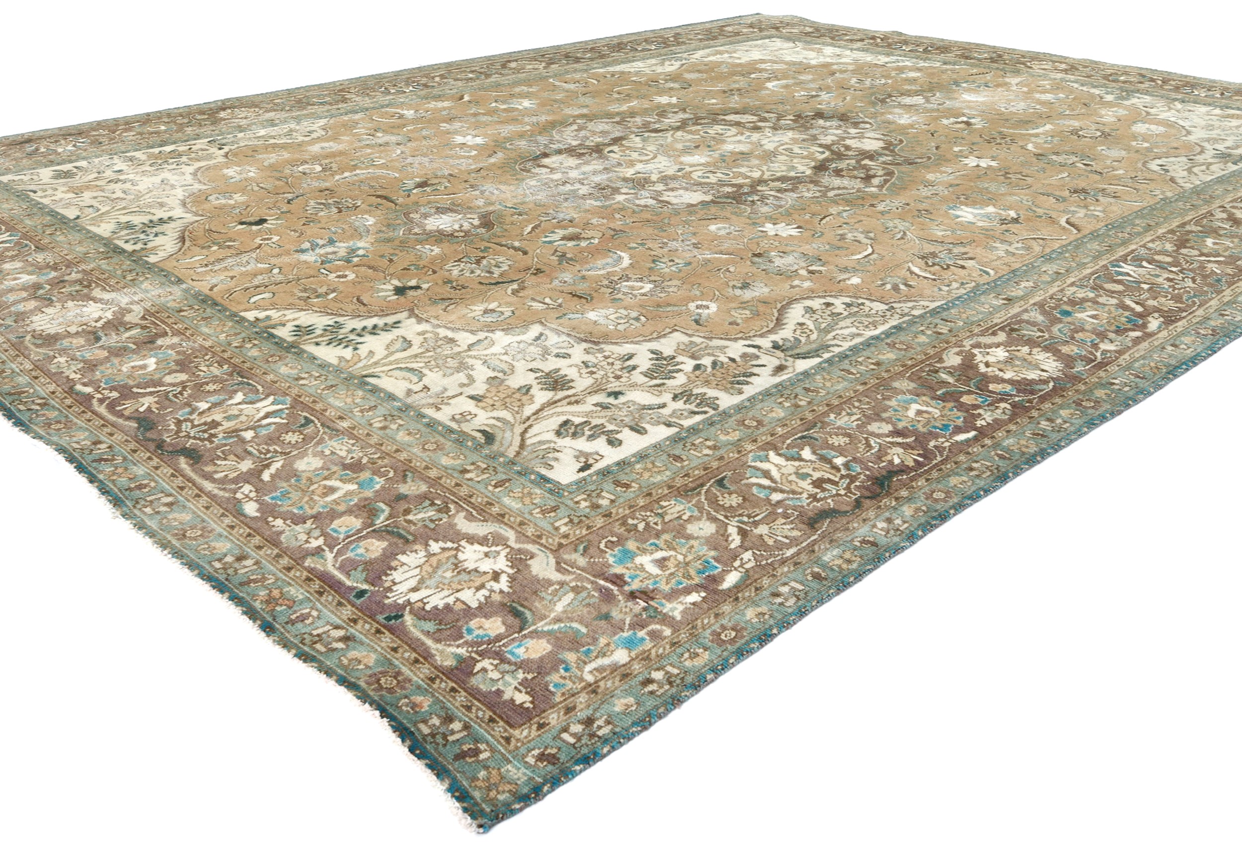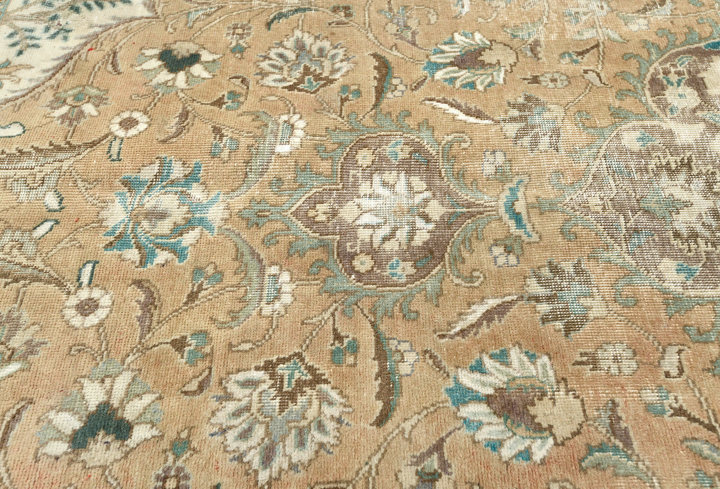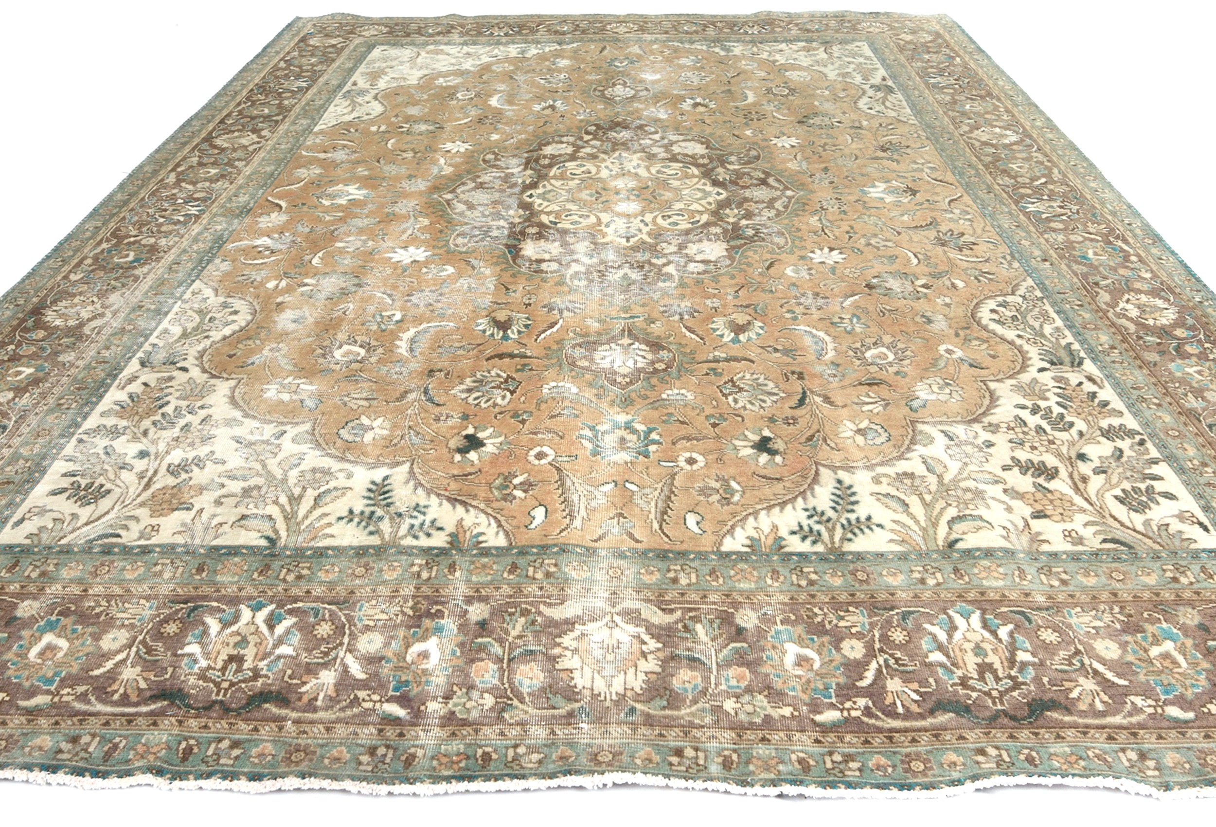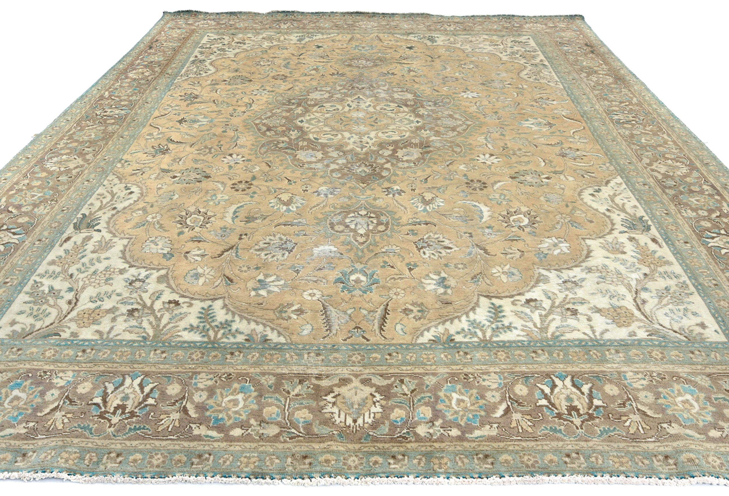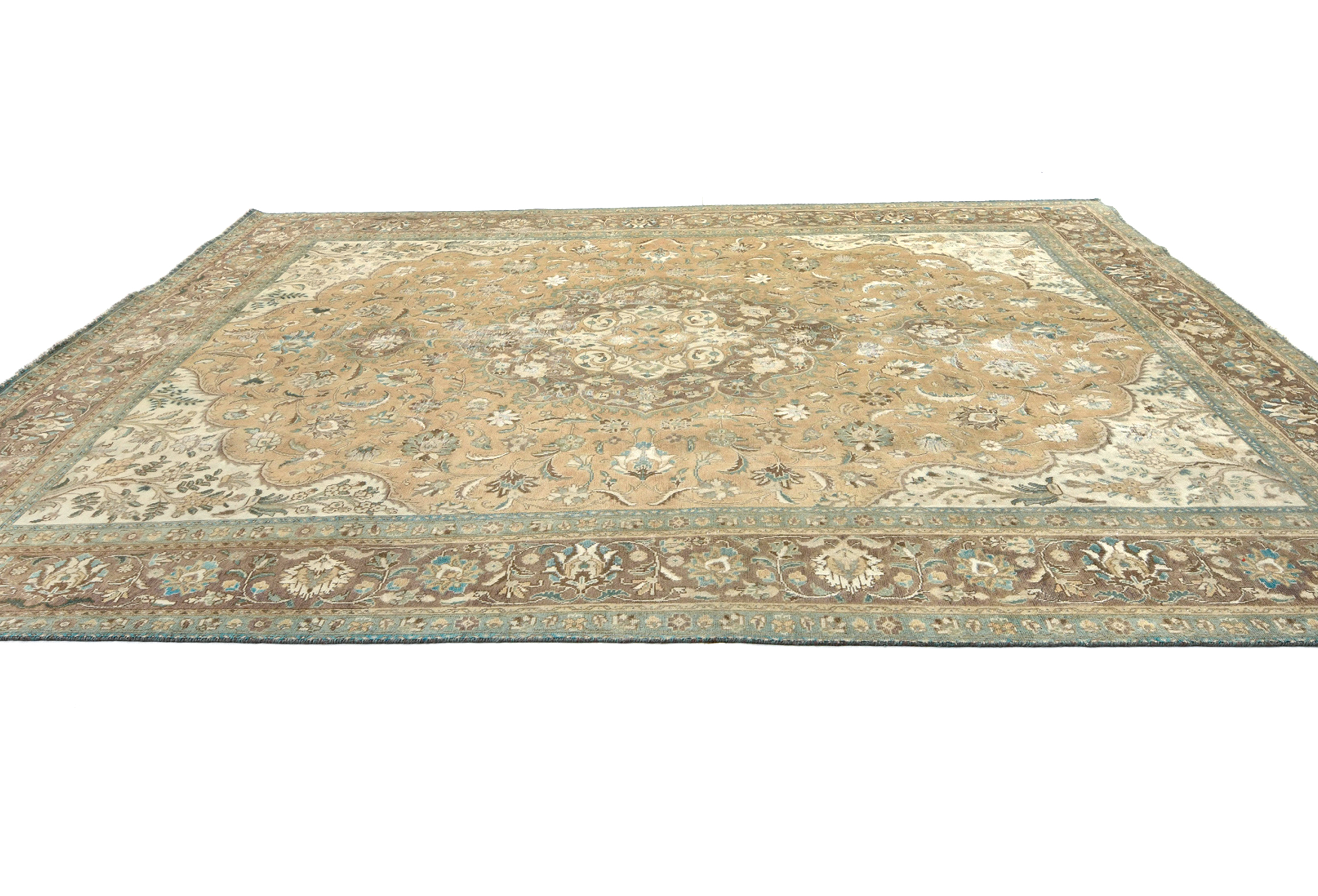 This authentic 10X13 beige vintage Persian rug was finely knotted by the hands of weavers influenced by a variety of amazing artistic designs, to recreate the aged look of the exceptional piece with a richness of color and embellished floral background field. What set this traditional Oriental area rug from the others are the material and dye used (wool pile and cotton foundation), knot count, antique designs, fantastic grades, and its regional historical connection: it has deep roots, from the story of the people who produced it to the meaning of the symbols and colors displayed across its canvas that have been praised for centuries. This classic home décor carpet will be completely cozy and inviting that never will go out of style! Also, this Oriental rug would be among your most valuable treasures, it is a great investment that increase in value over time, and it will last a lifetime because was woven with high-quality, all-natural wool; it won’t rip, tear, or shed. Eco-friendly, opulent yet affordable; this Persian rug will give you an extra pop of character to help define your home environment with luxury and warmth that will capture the eyes and attention of your audience (homeowners, designers, decorators, family and friends). RT-6212