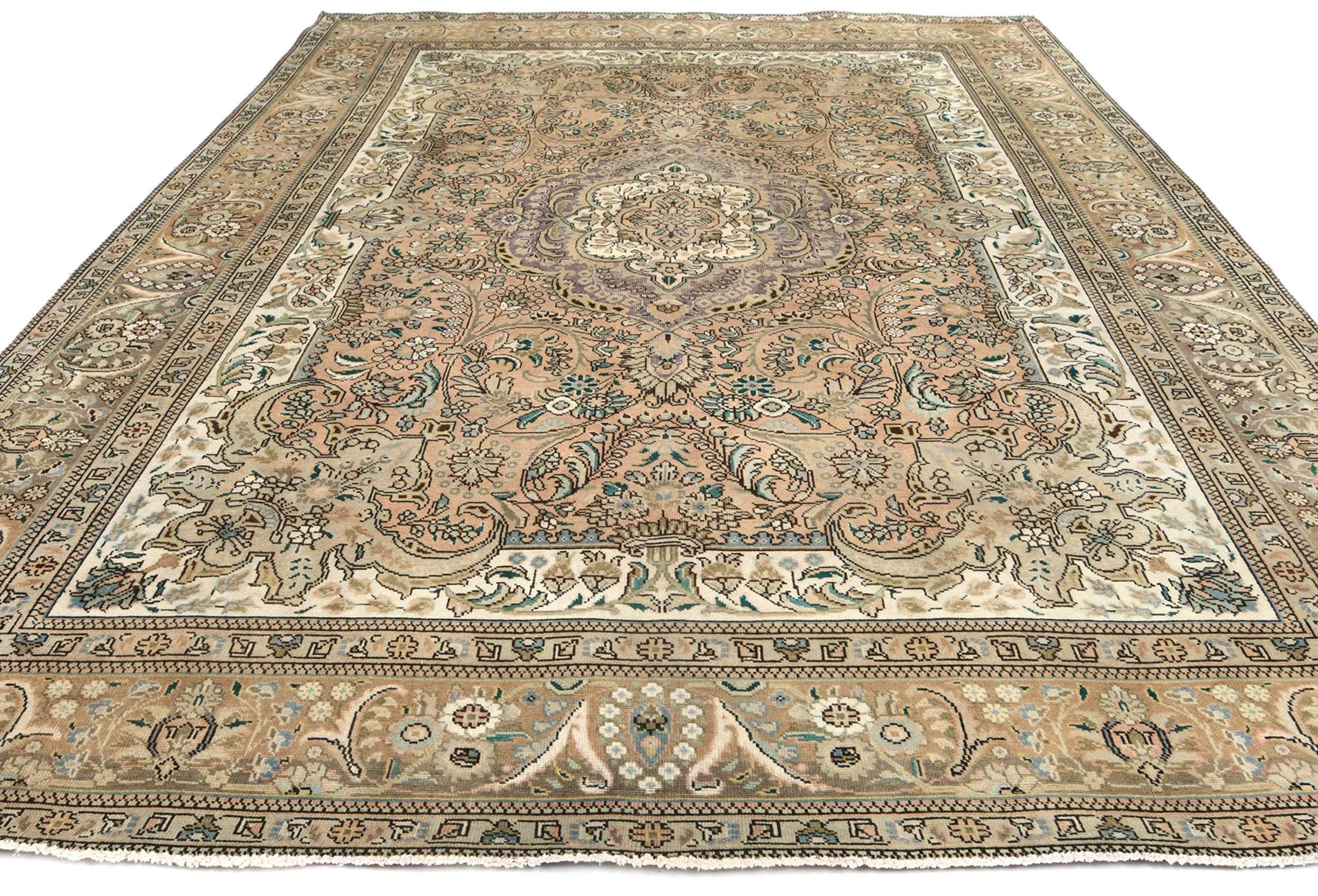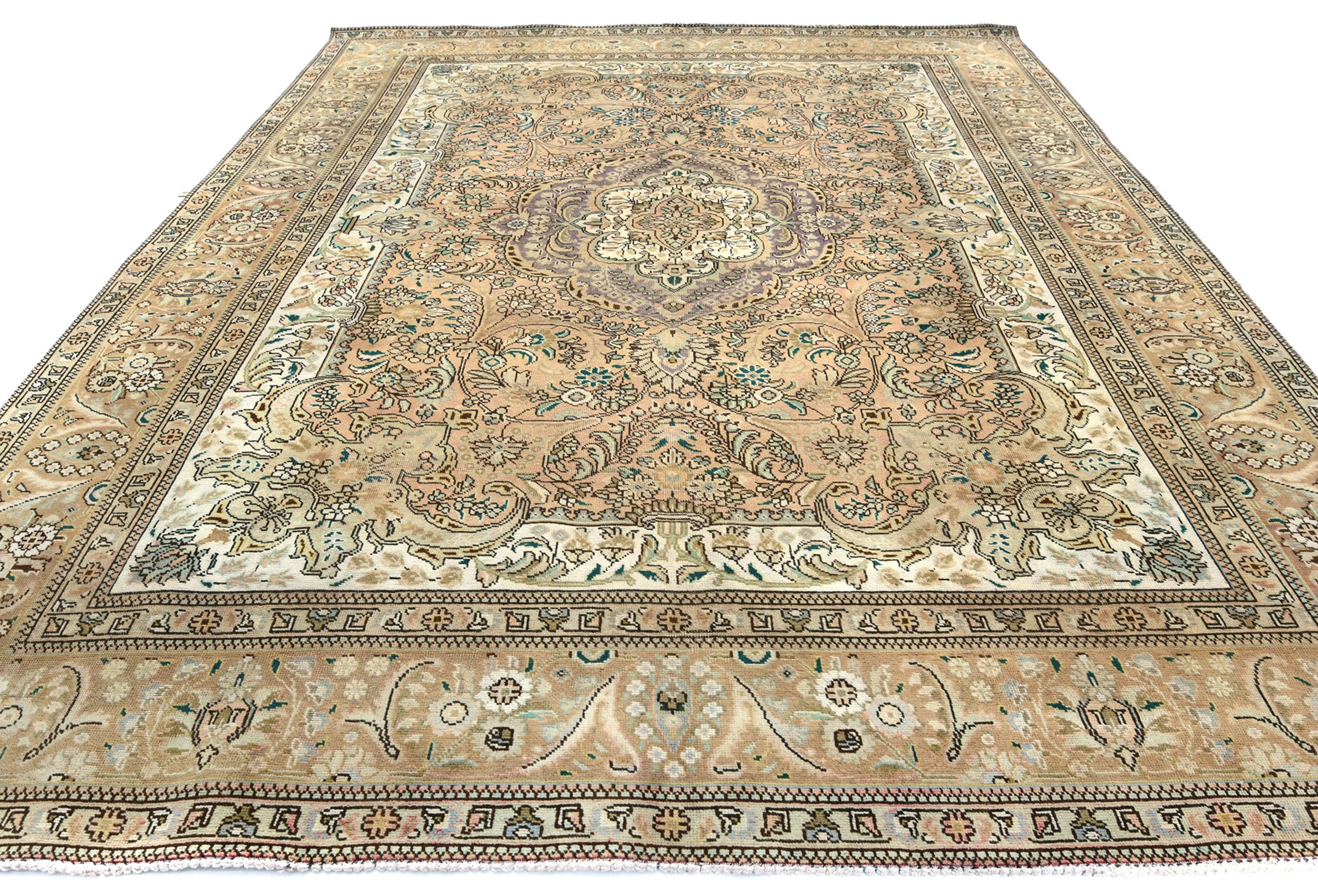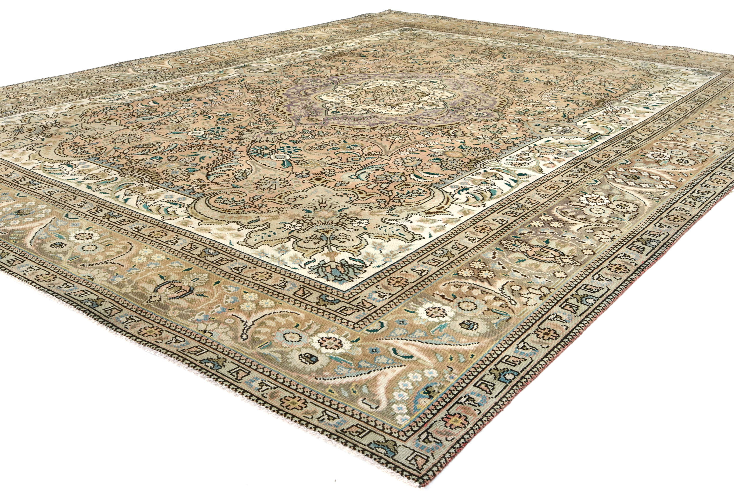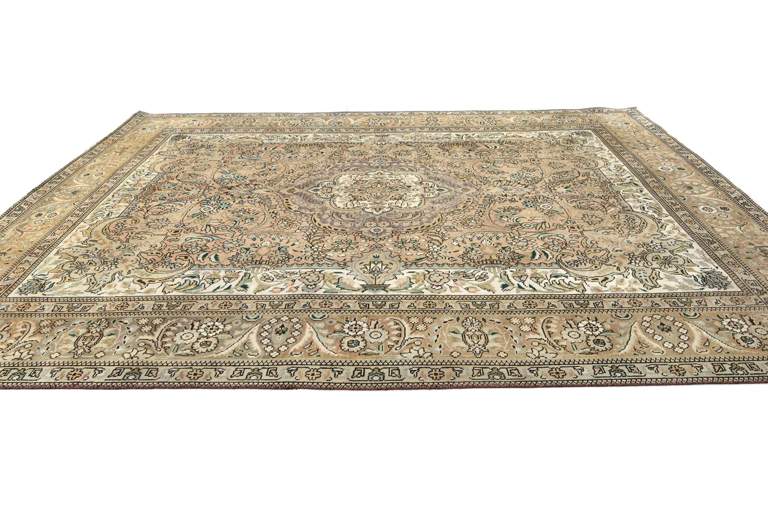 Semi Antique Muted Floral 10X13 Distressed Vintage Oriental Rug