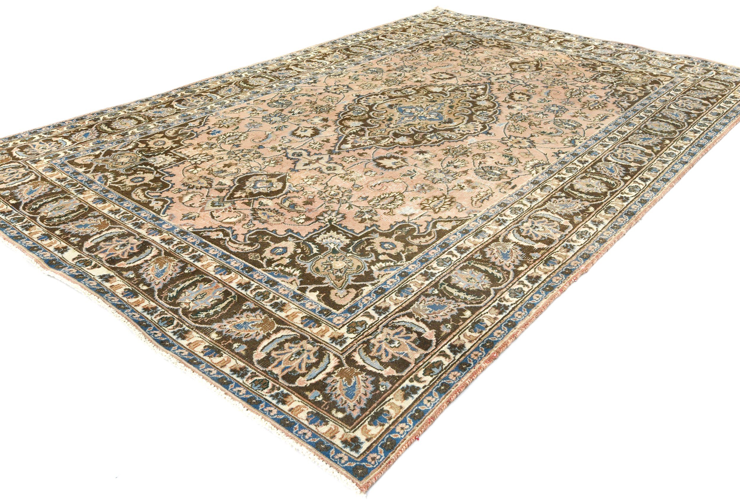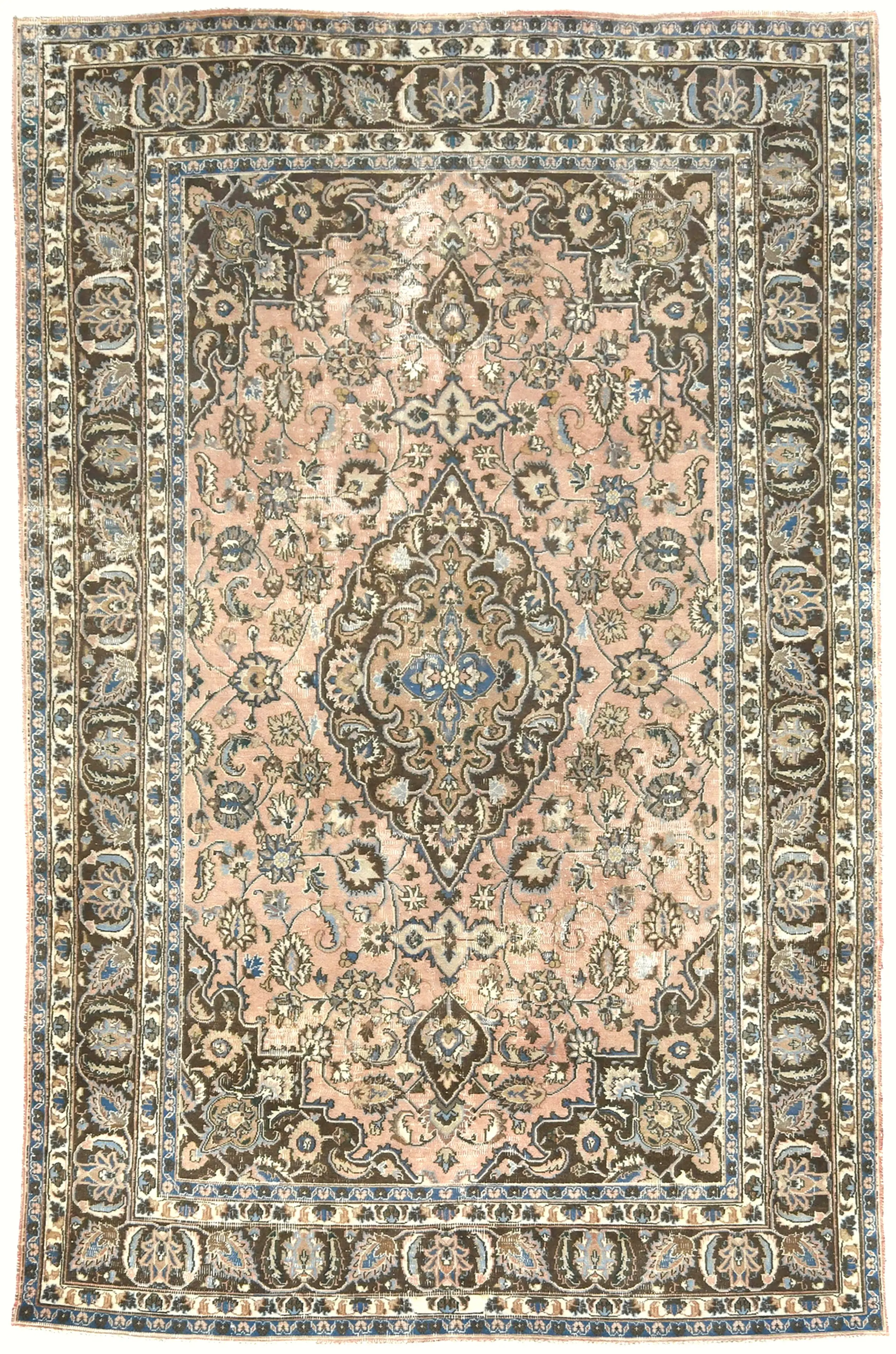 Semi Antique Muted Floral 6X9'5 Distressed Vintage Oriental Rug