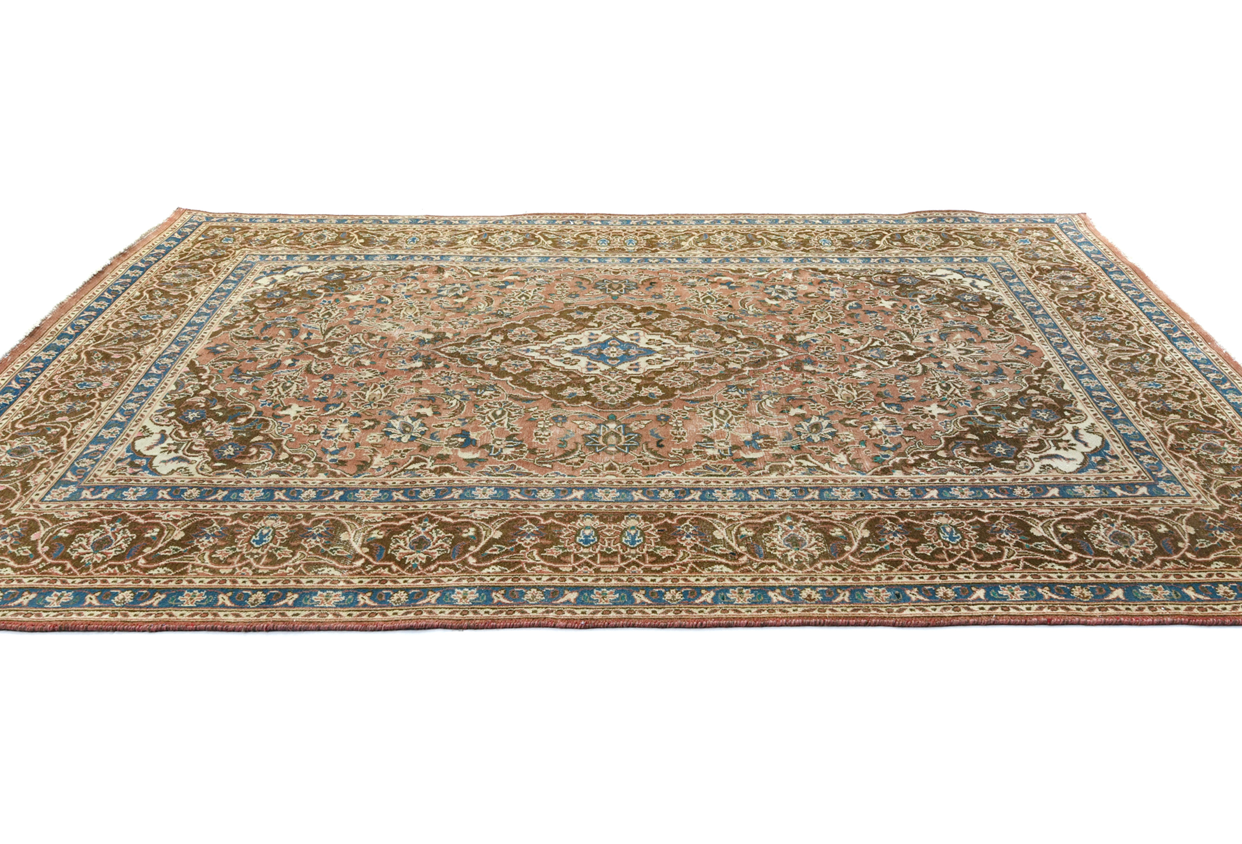 Muted Rusty Red Semi Antique Floral 6X9 Distressed Vintage Oriental Rug