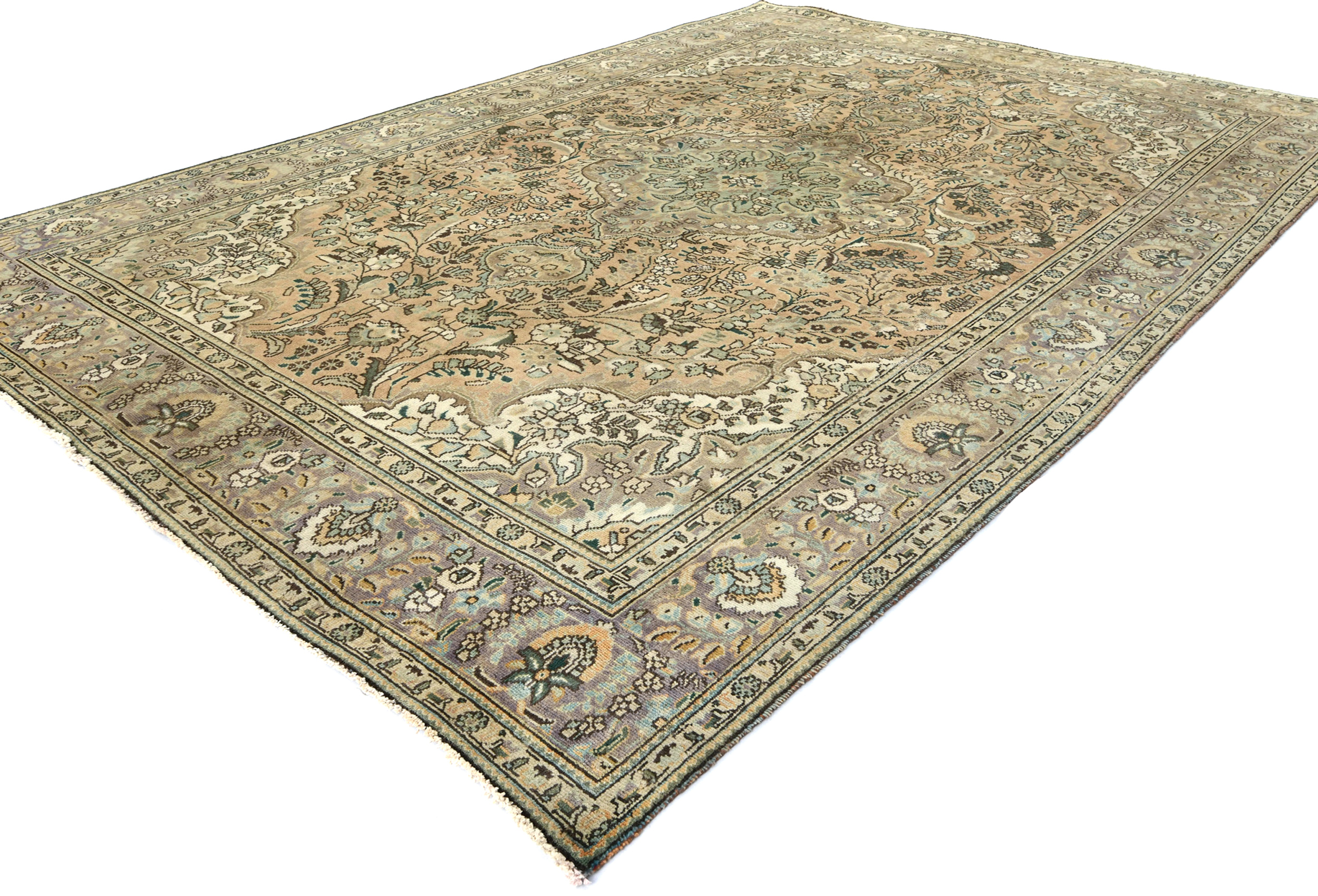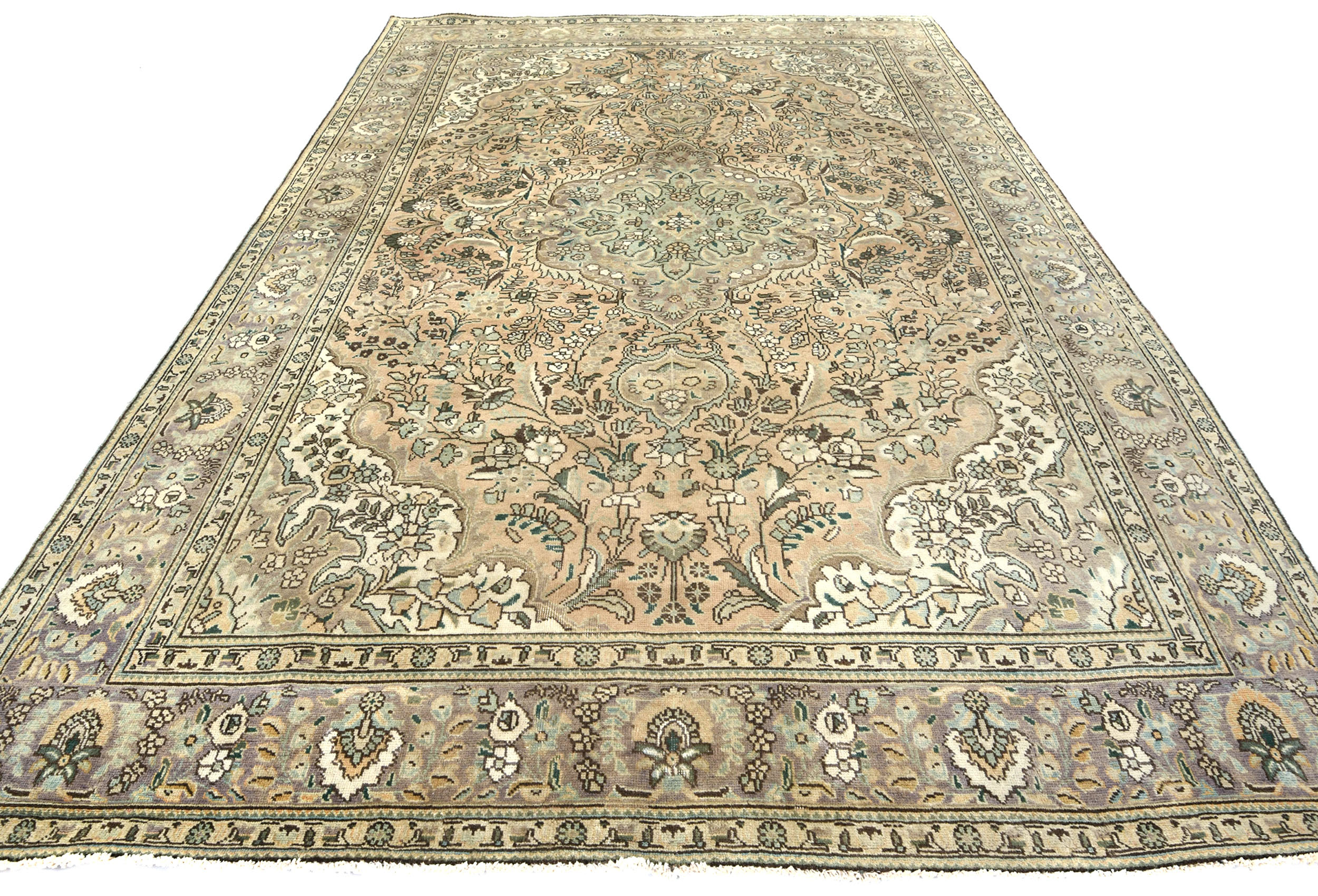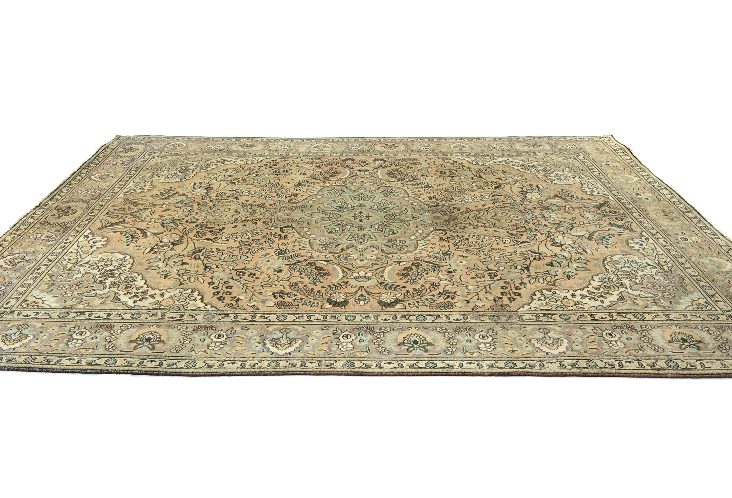 Semi Antique Muted Floral 7'5X11 Distressed Vintage Oriental Rug