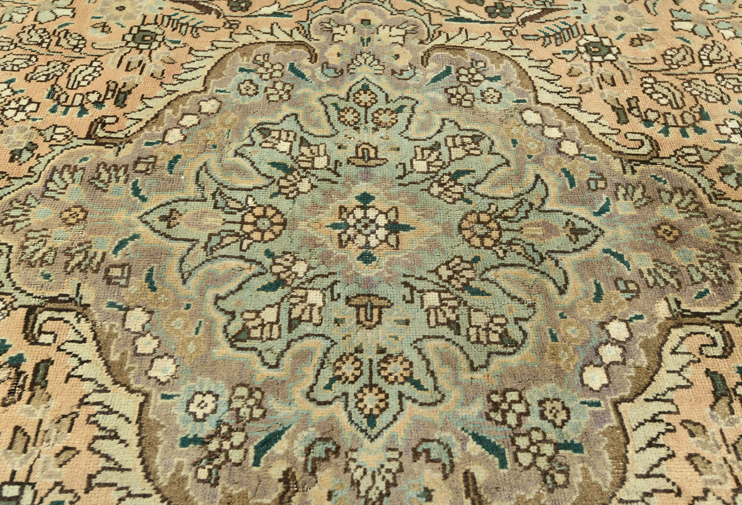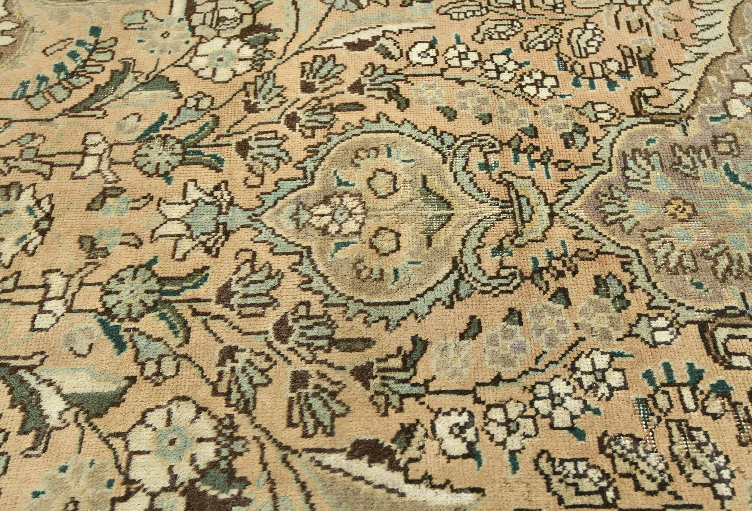 Handmade semi antique 7'5X11 orange Oriental rug made with vegetable dyes (fine wool pile and cotton foundation), superior knot count, and alluring ancient designs. This Oriental rug never will go out of style and would be among your most valuable treasures.