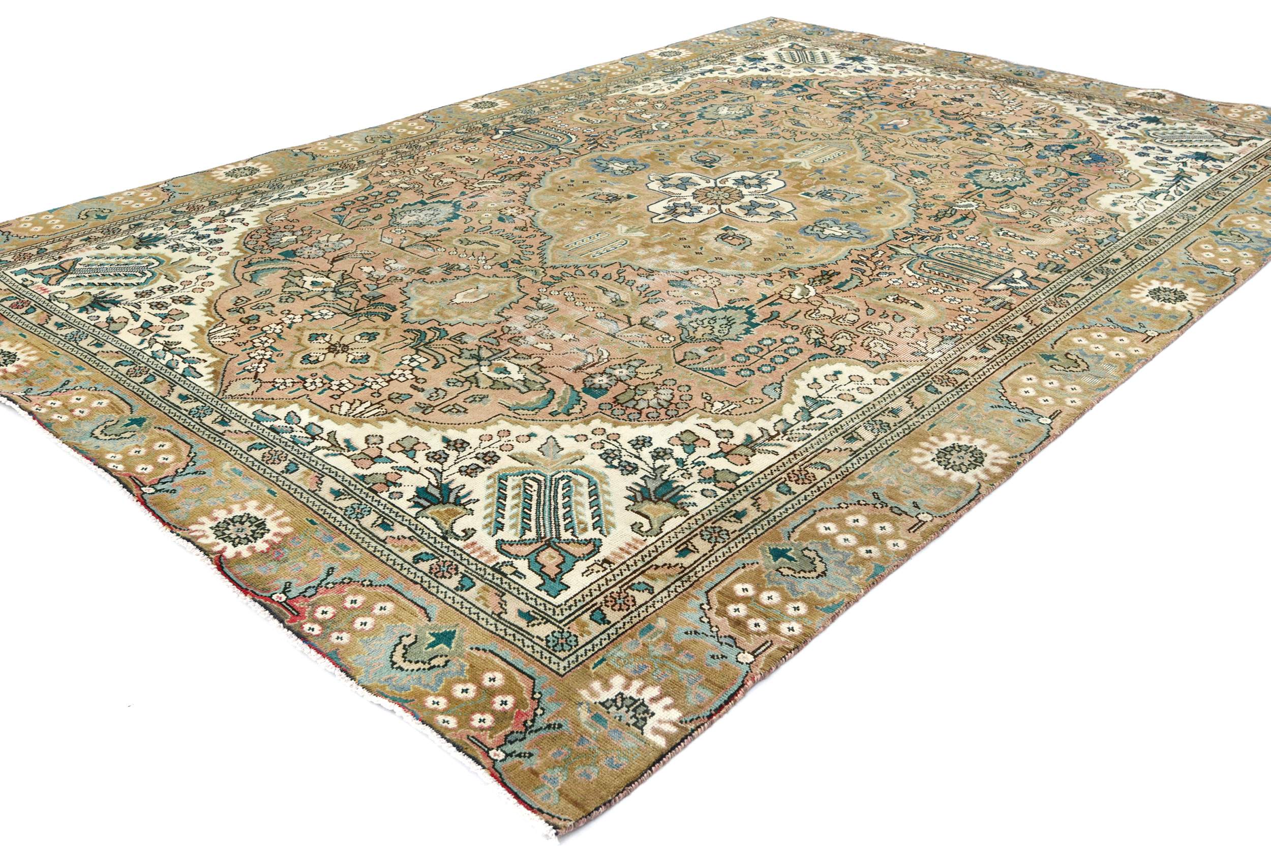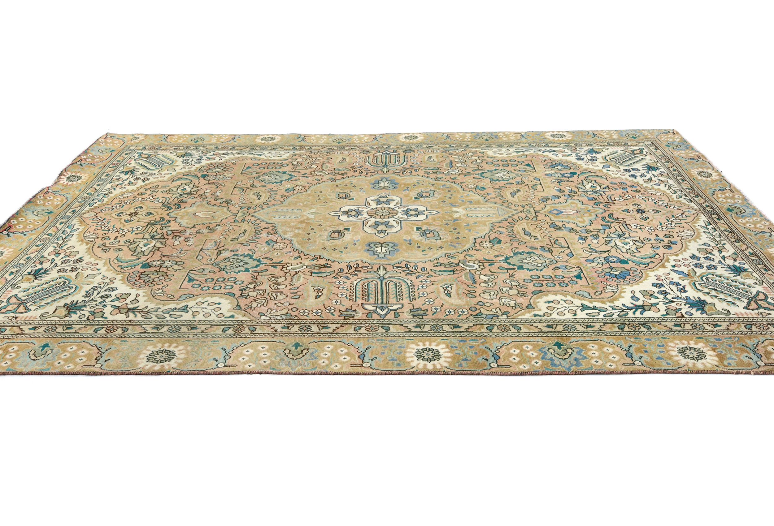 Semi Antique Muted Floral 7X10'5 Distressed Vintage Oriental Rug
