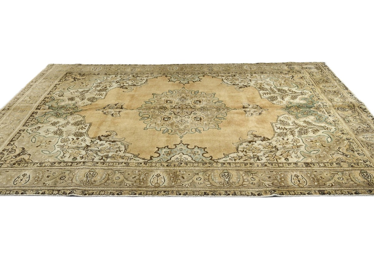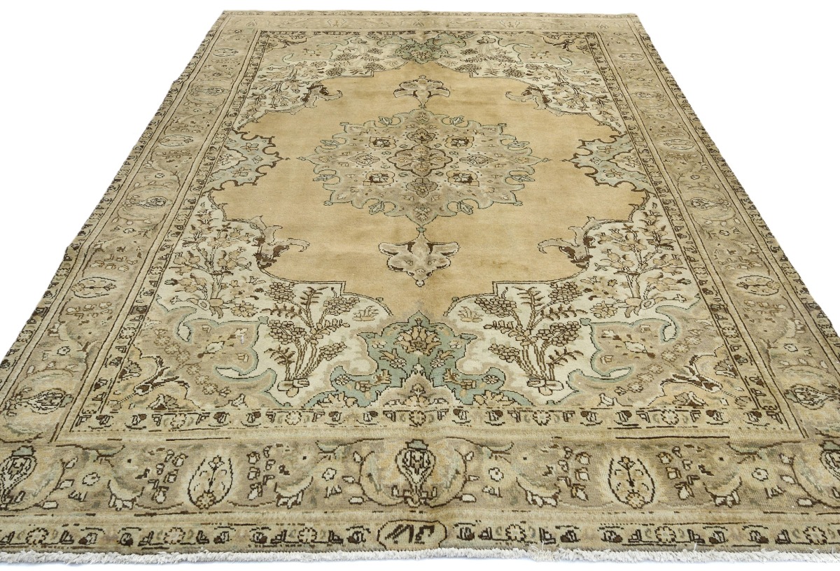Semi Antique Muted Floral 7X10 Distressed Vintage Oriental Rug