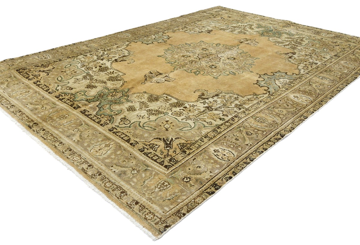 This authentic 7X10 orange vintage Persian rug was finely knotted by the hands of weavers influenced by a variety of amazing artistic designs, to recreate the aged look of the exceptional piece with a richness of color and embellished floral background field. What set this traditional Oriental area rug from the others are the material and dye used (wool pile and cotton foundation), knot count, antique designs, fantastic grades, and its regional historical connection: it has deep roots, from the story of the people who produced it to the meaning of the symbols and colors displayed across its canvas that have been praised for centuries. This classic home décor carpet will be completely cozy and inviting that never will go out of style! Also, this Oriental rug would be among your most valuable treasures, it is a great investment that increase in value over time, and it will last a lifetime because was woven with high-quality, all-natural wool; it won’t rip, tear, or shed. Eco-friendly, opulent yet affordable; this Persian rug will give you an extra pop of character to help define your home environment with luxury and warmth that will capture the eyes and attention of your audience (homeowners, designers, decorators, family and friends). RT-5731