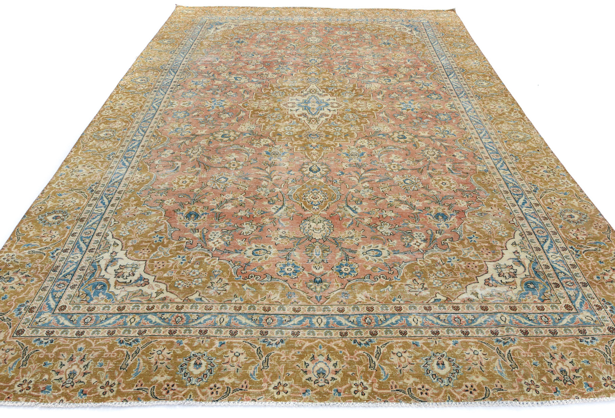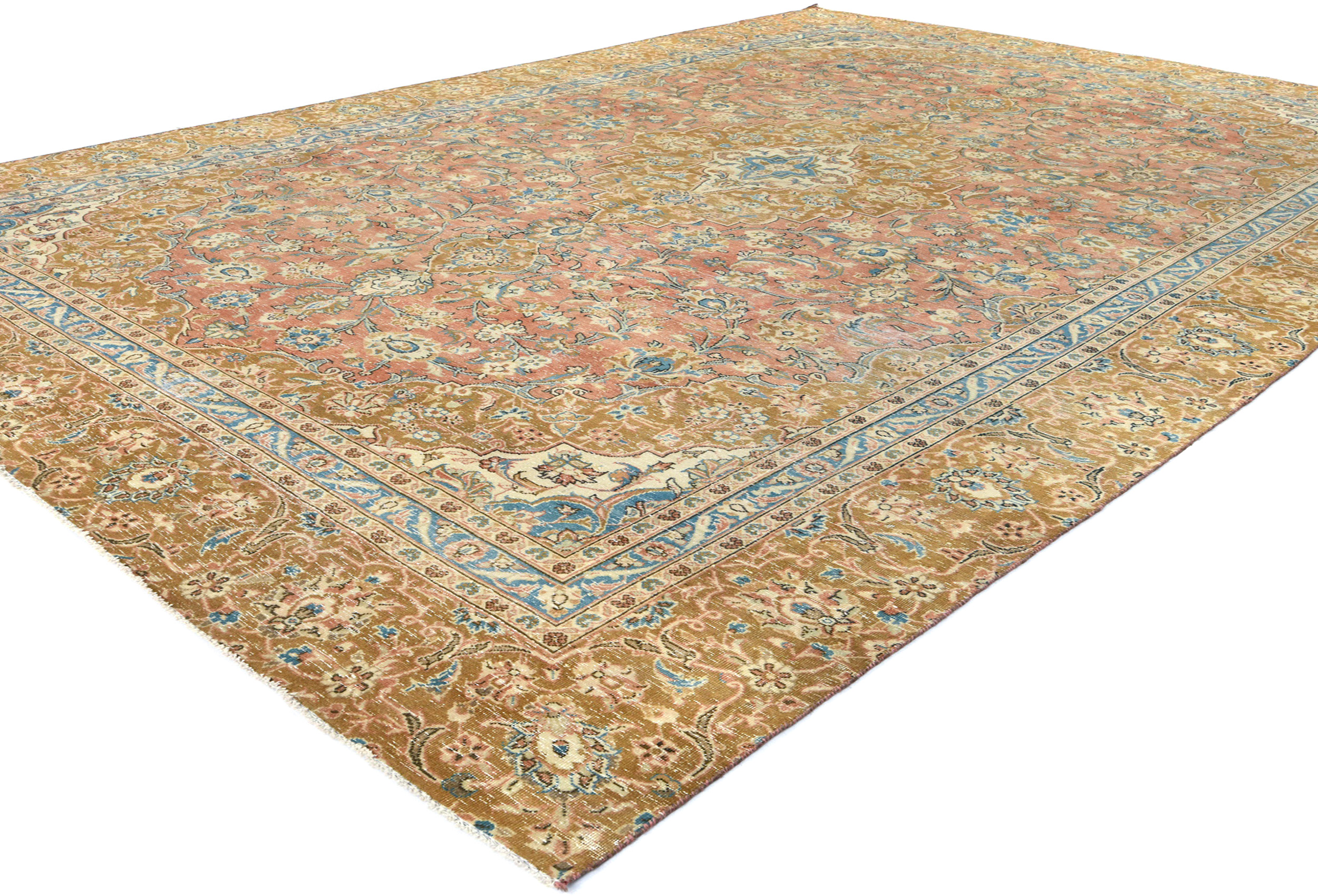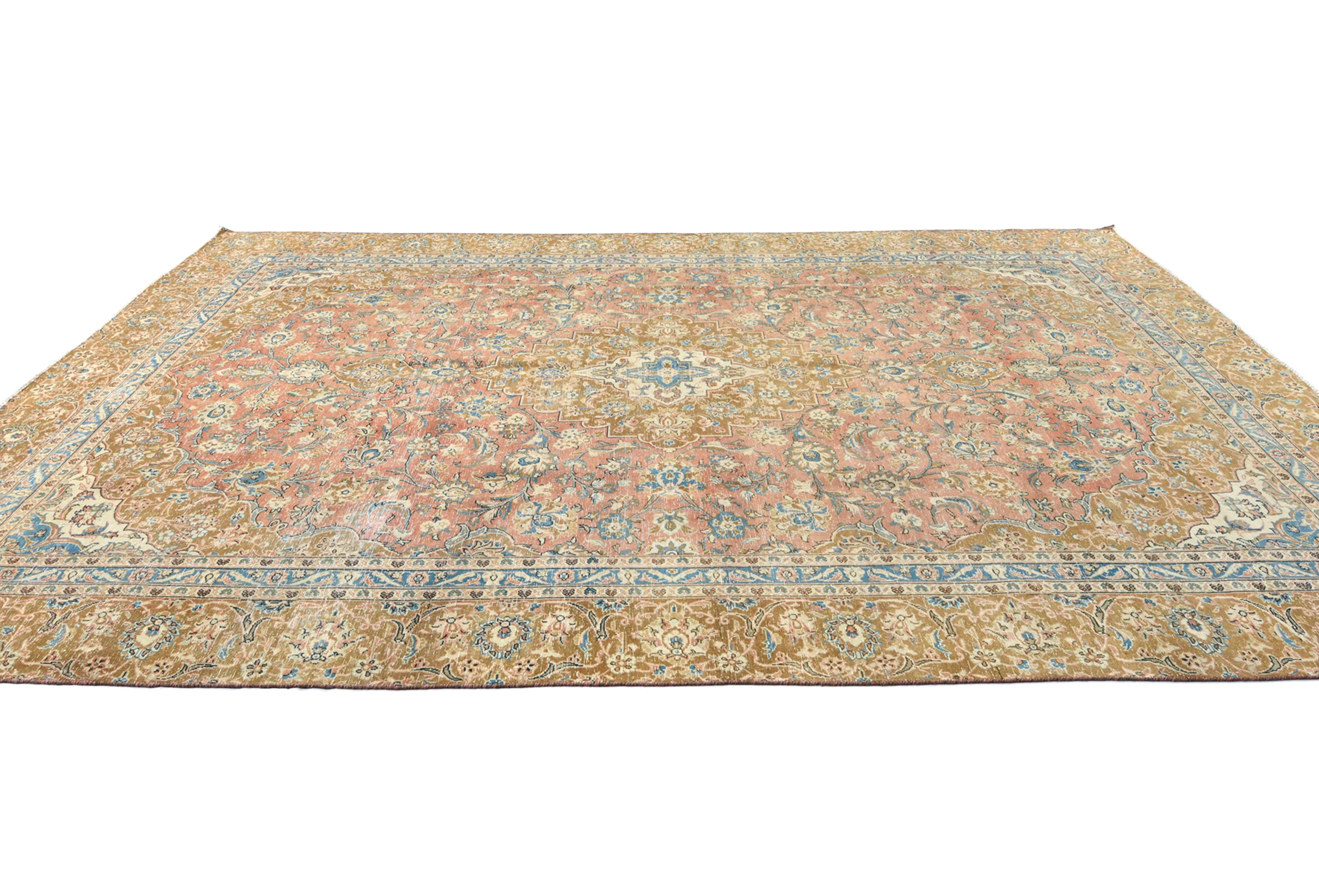 Semi Antique Muted Floral 8'5X12'6 Distressed Vintage Oriental Rug