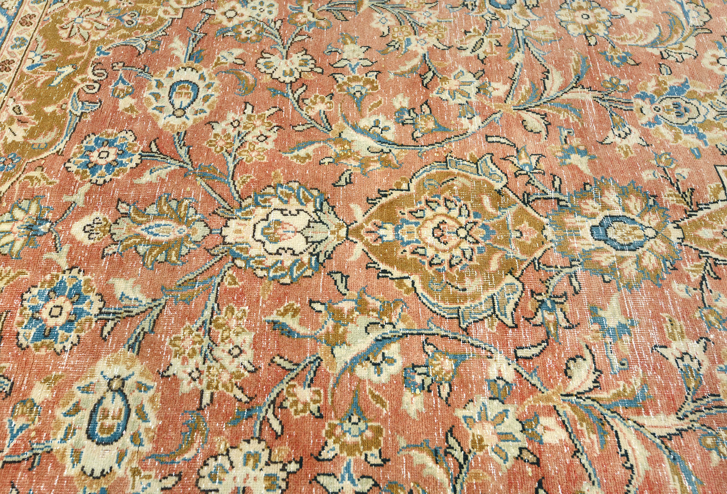 This authentic new 8'5X12'6 rusty red Oriental rug was crafted by the hands of skilled weavers enthused by a variety of lovely artistic designs, to recreate the aged look of the unique piece with a richness of color and beautifully elaborated background field. What set this vintage style Oriental area rug from the others are the material and dye used (wool pile and cotton foundation), knot count, ancient designs, fantastic grades, and its regional historical connection: it has deep roots, from the story of the people who produced it to the meaning of the symbols and colors displayed across its canvas that have been praised for centuries. This Indian home décor carpet will be completely cozy and inviting that never will go out of style!