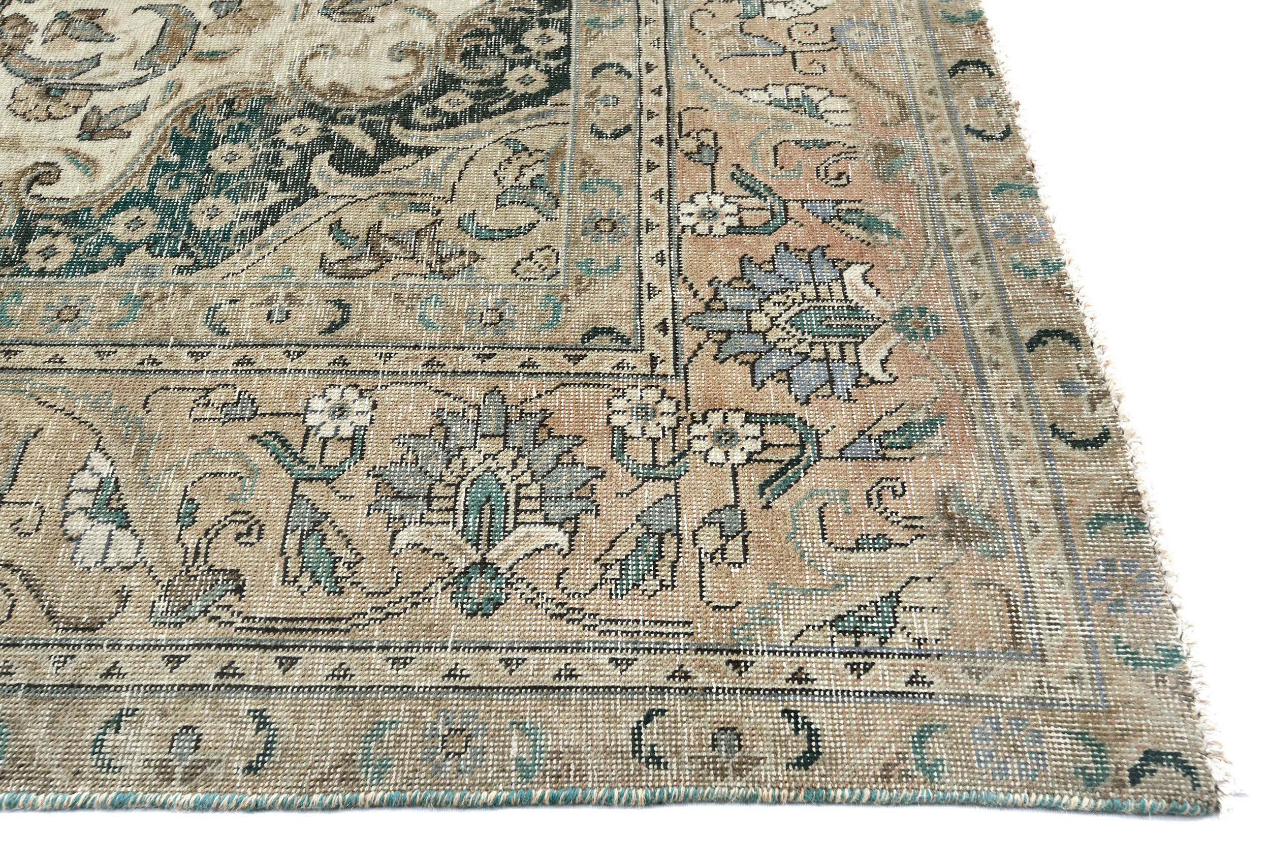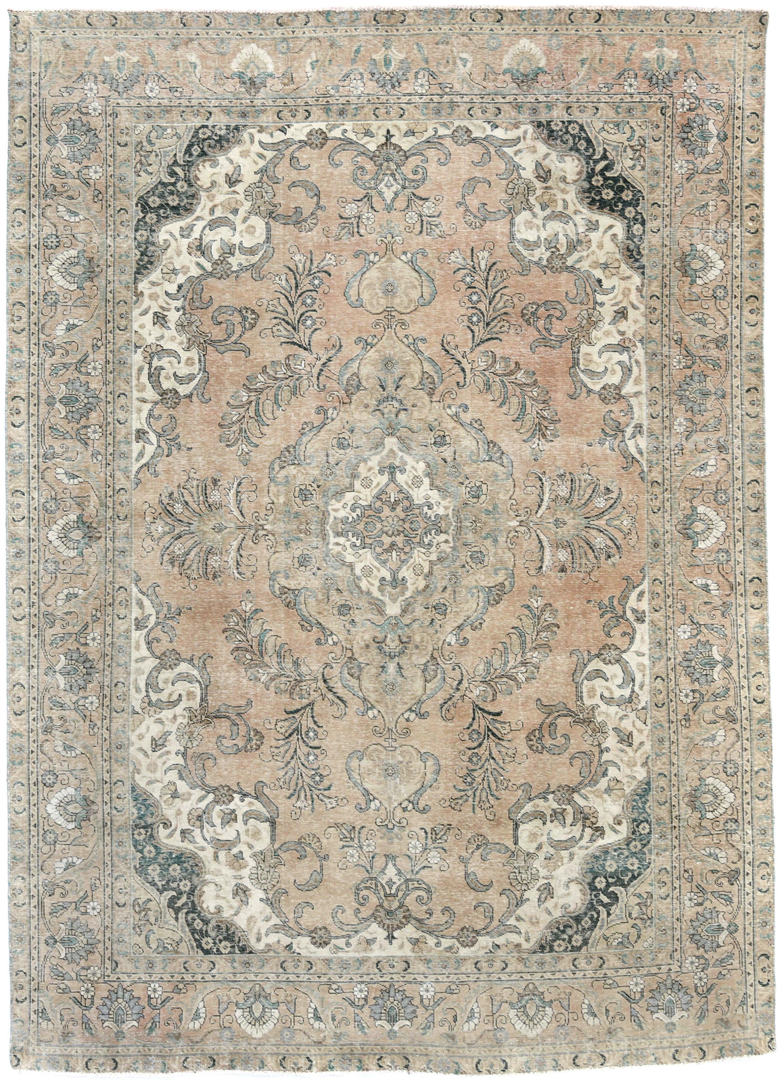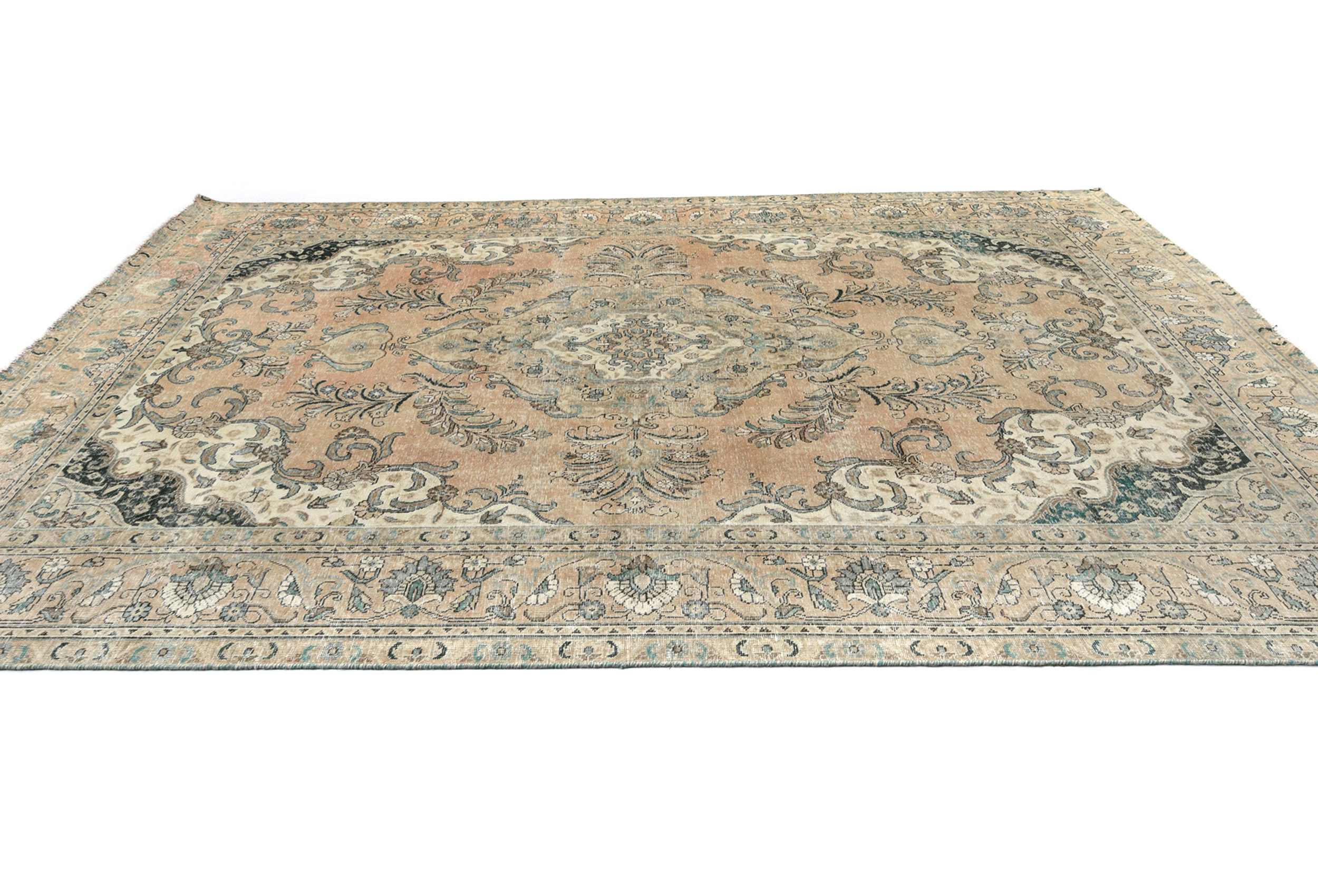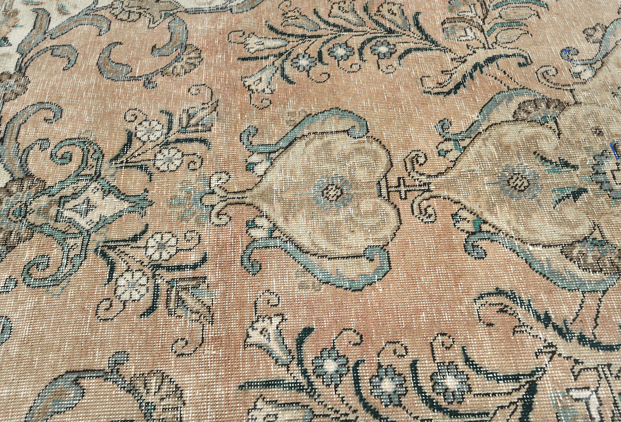 Semi Antique Muted Floral 8X11 Distressed Vintage Oriental Rug