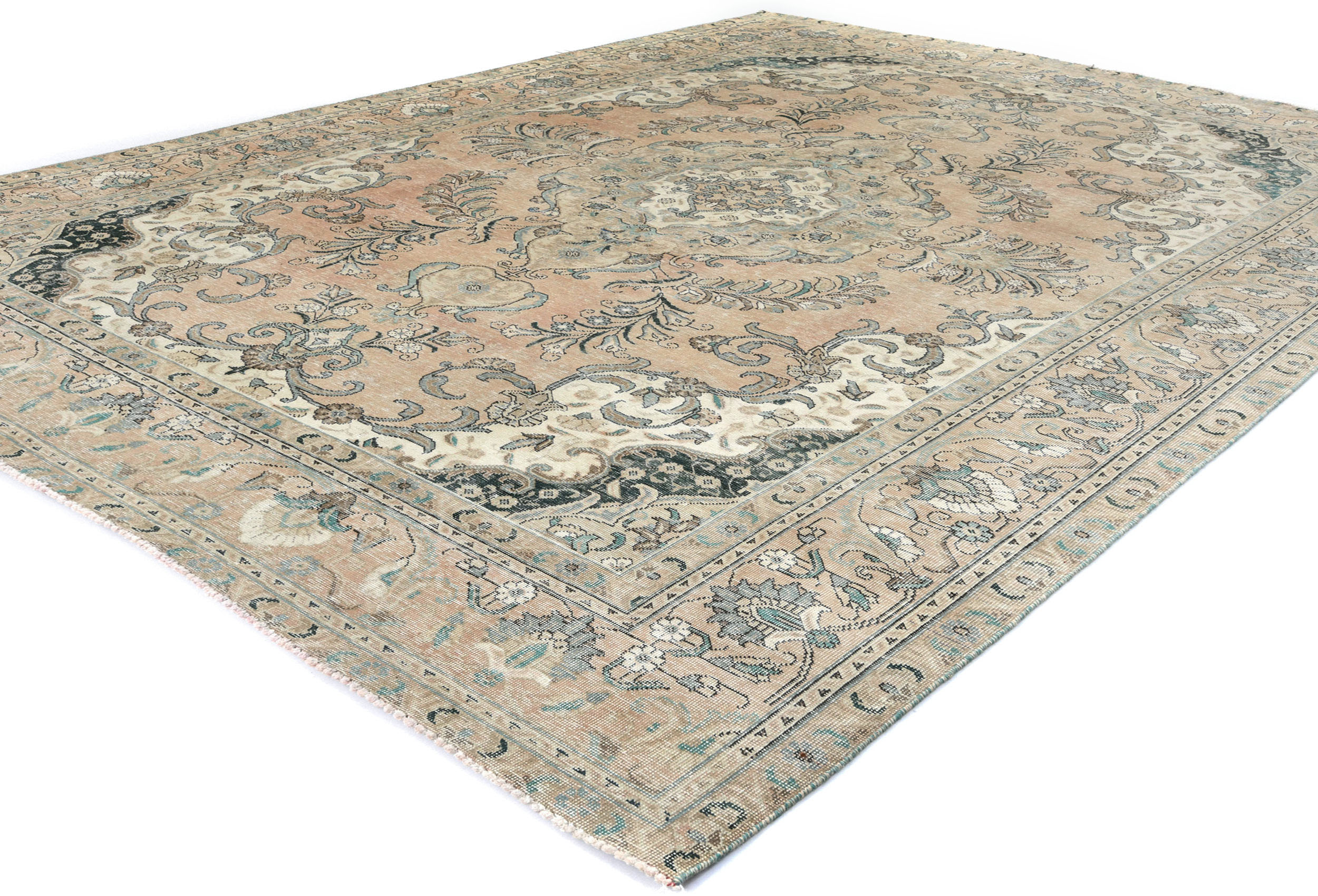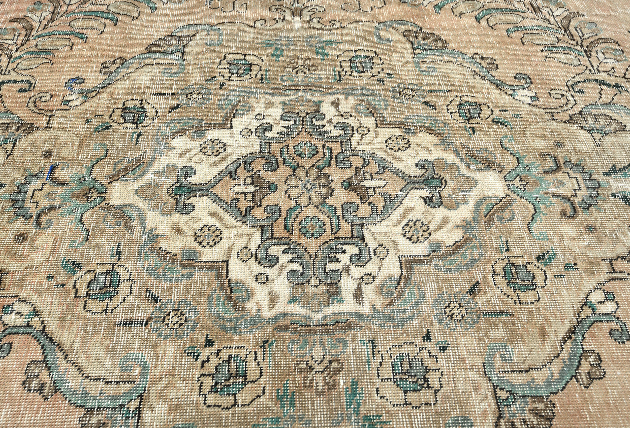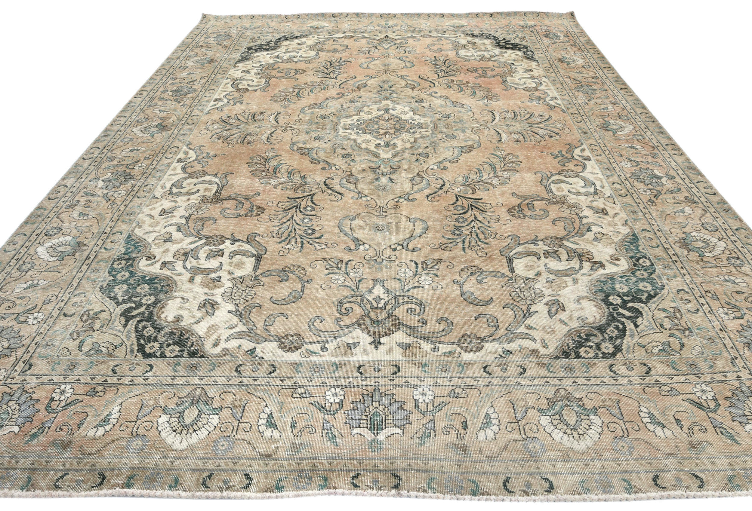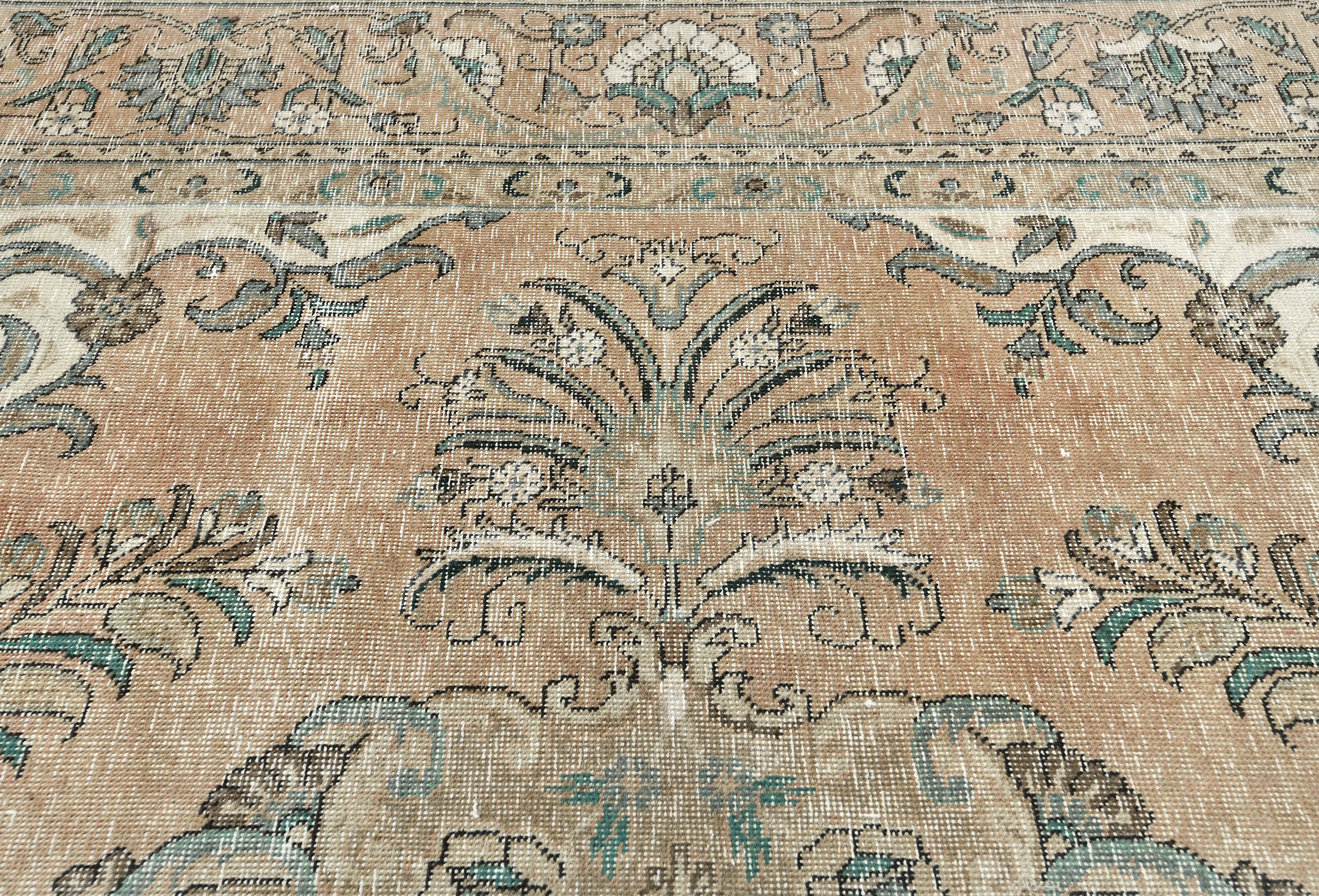 Semi Antique Muted Floral 8X11 Distressed Vintage Oriental Rug