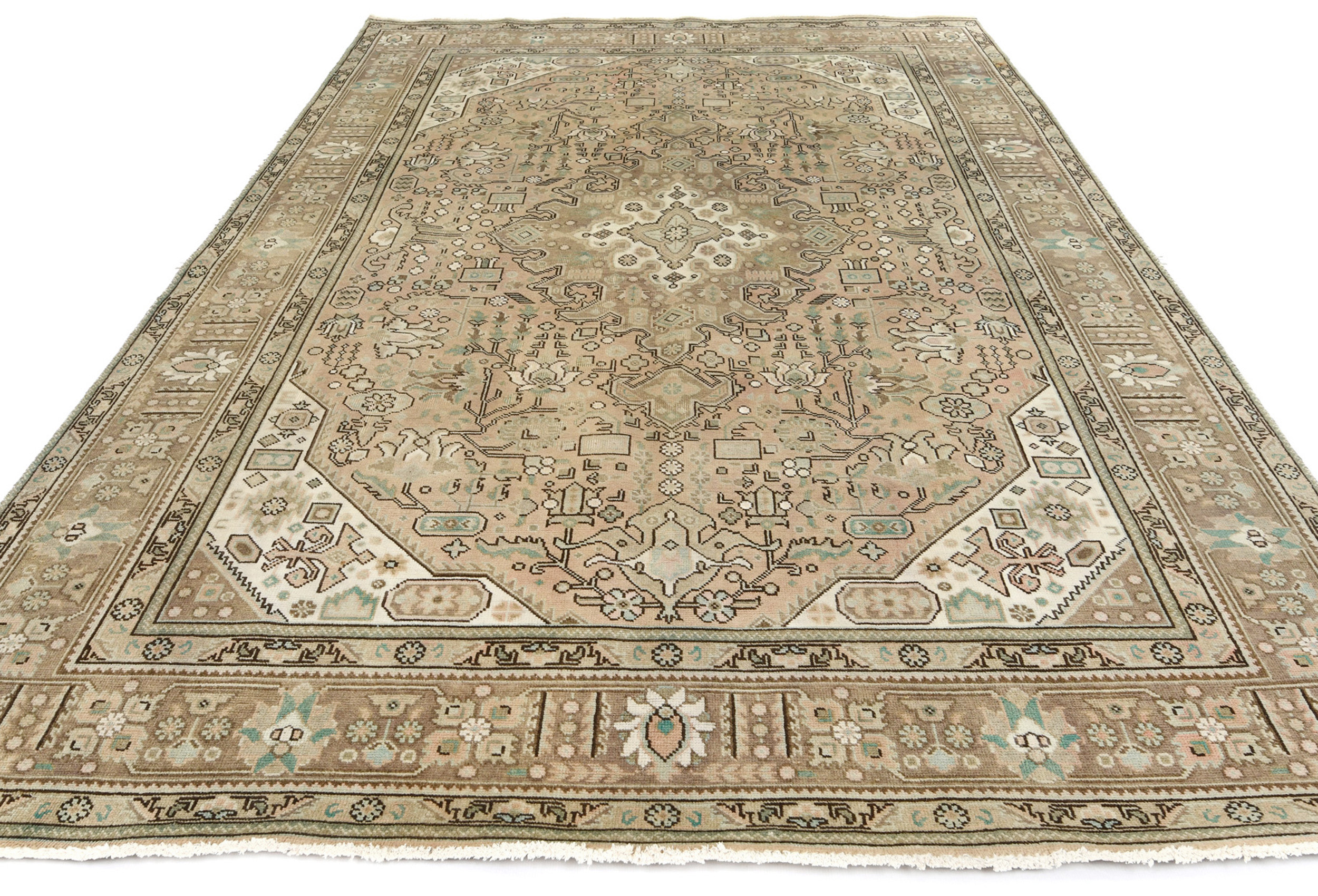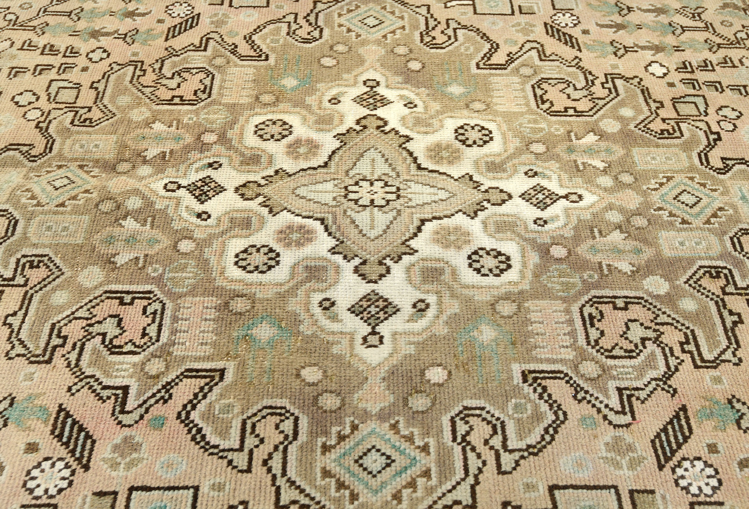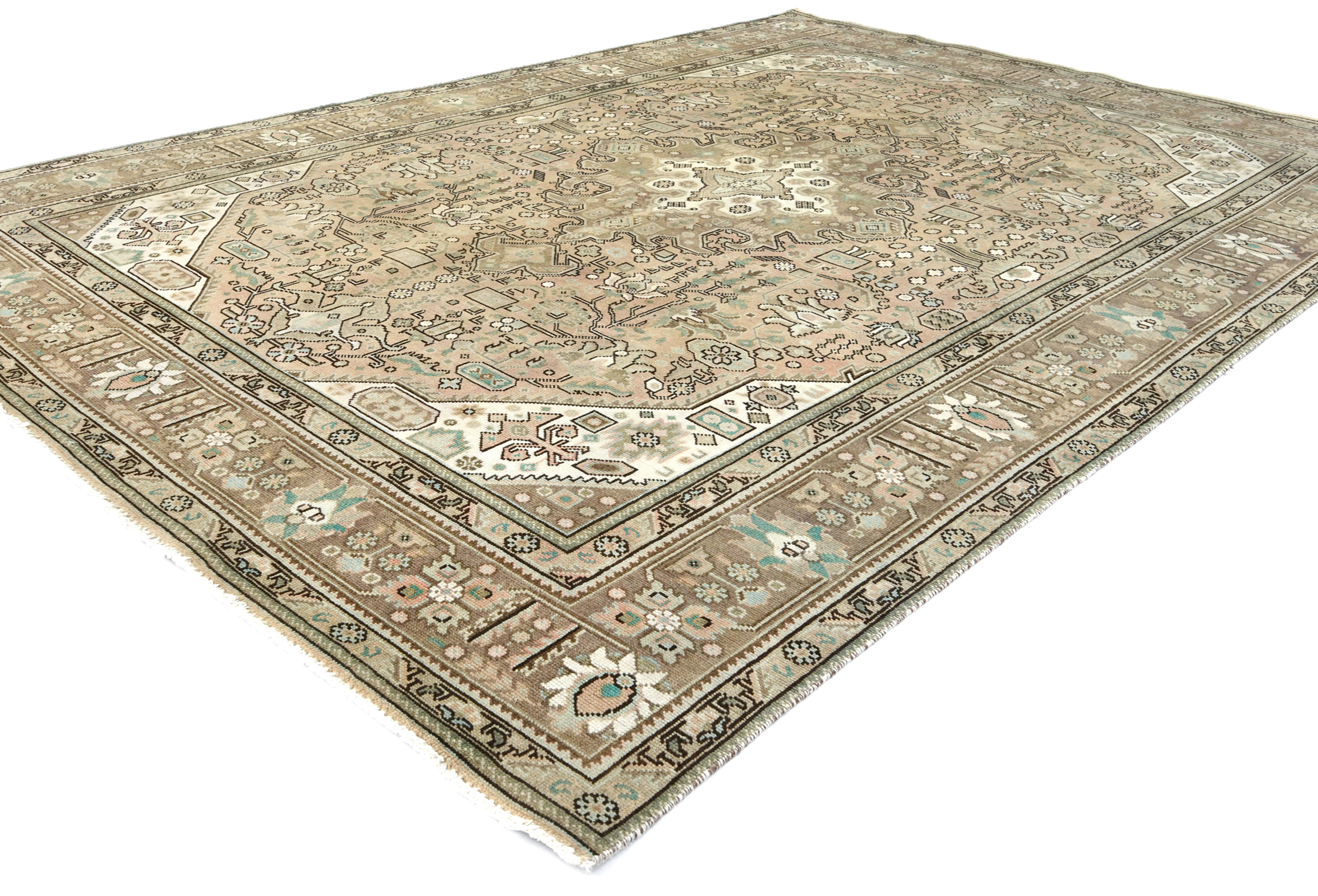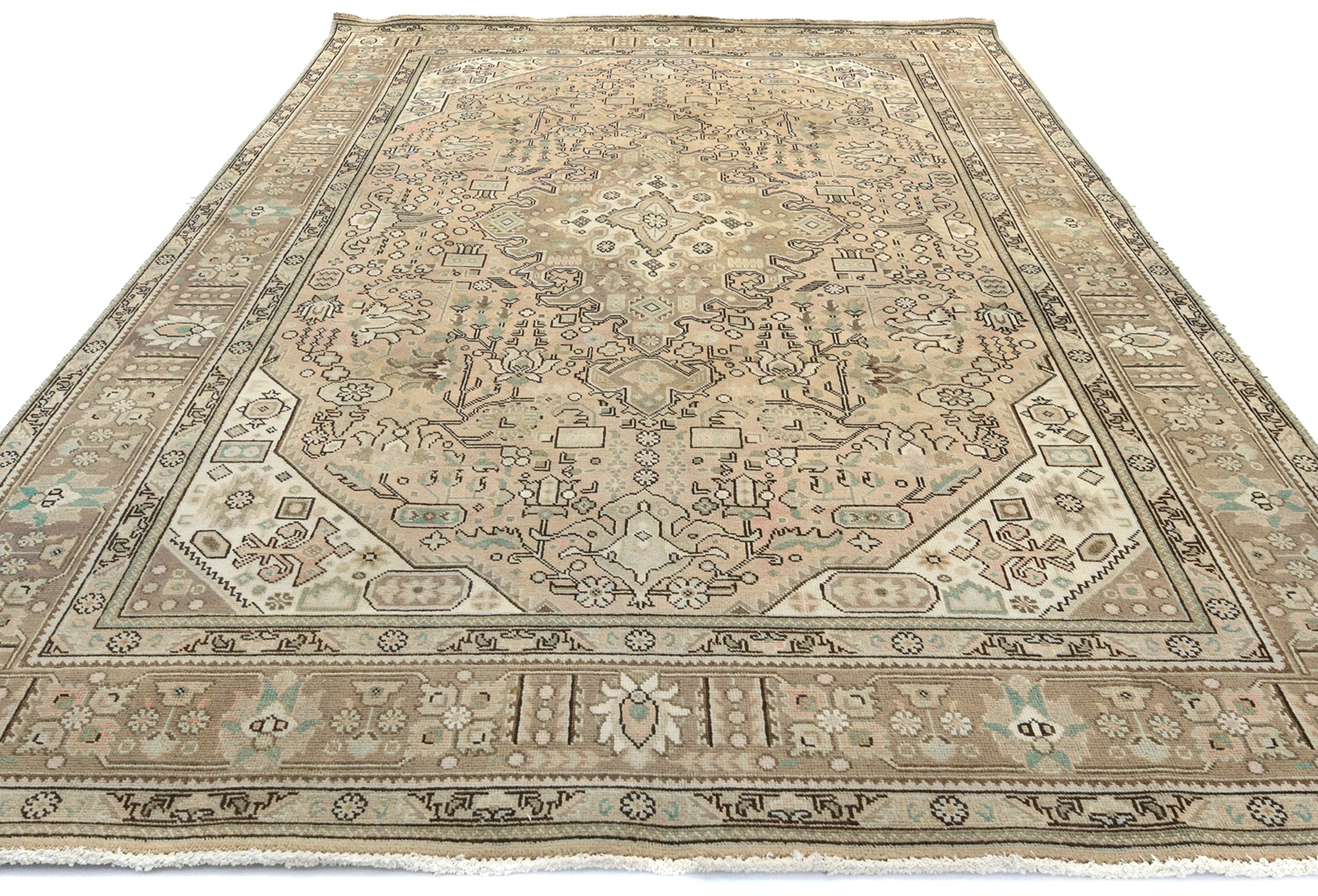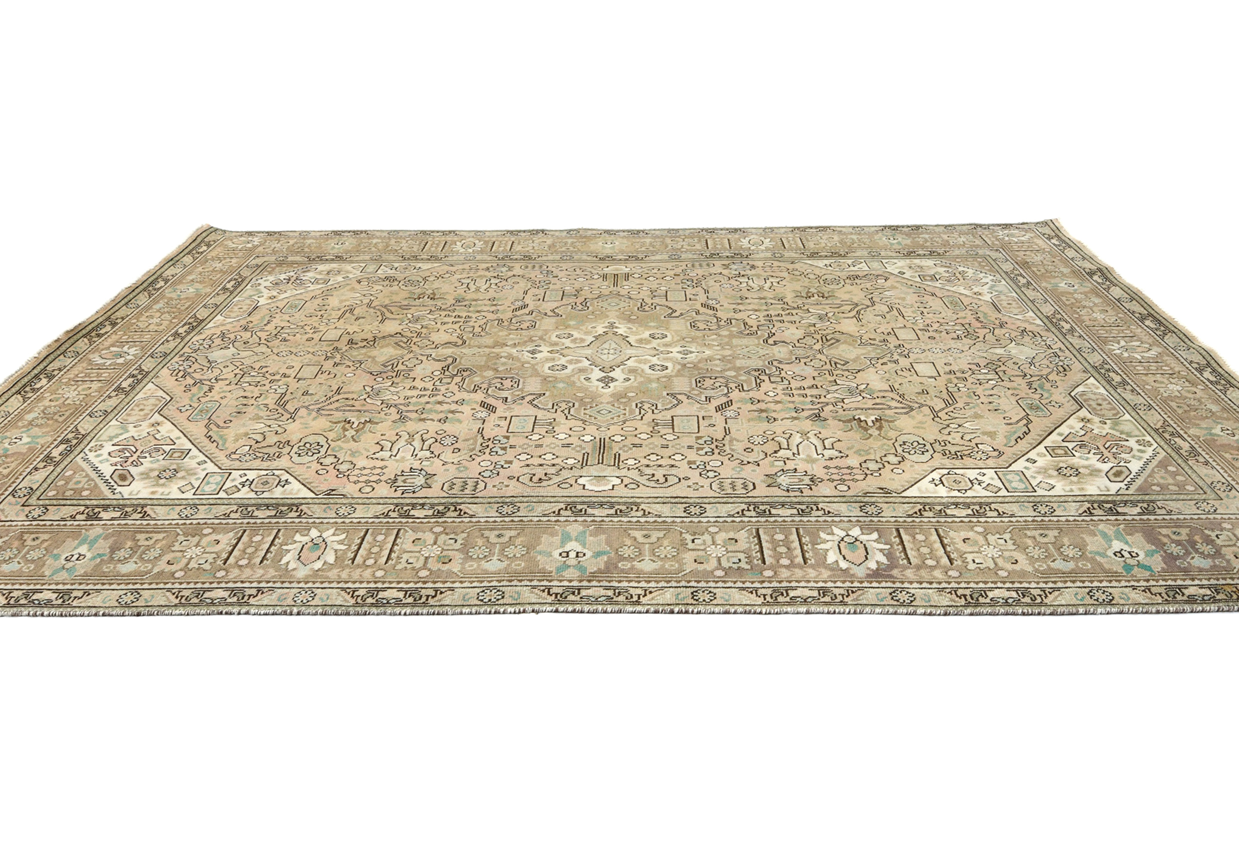 This authentic 8X11 beige vintage Oriental rug was finely knotted by the hands of weavers influenced by a variety of amazing artistic designs, to recreate the aged look of the exceptional piece with a richness of color and embellished background field. What set this tribal Oriental area rug from the others are the material and dye used (wool pile and cotton foundation), knot count, antique designs, fantastic grades, and its regional historical connection: it has deep roots, from the story of the people who produced it to the meaning of the symbols and colors displayed across its canvas that have been praised for centuries. This home décor carpet will be completely cozy and inviting that never will go out of style! Also, this Oriental rug would be among your most valuable treasures, it is a great investment that increase in value over time, and it will last a lifetime because was woven with high-quality, all-natural wool; it won’t rip, tear, or shed. Eco-friendly, opulent yet affordable; this Persian rug will give you an extra pop of character to help define your home environment with luxury and warmth that will capture the eyes and attention of your audience (homeowners, designers, decorators, family and friends).