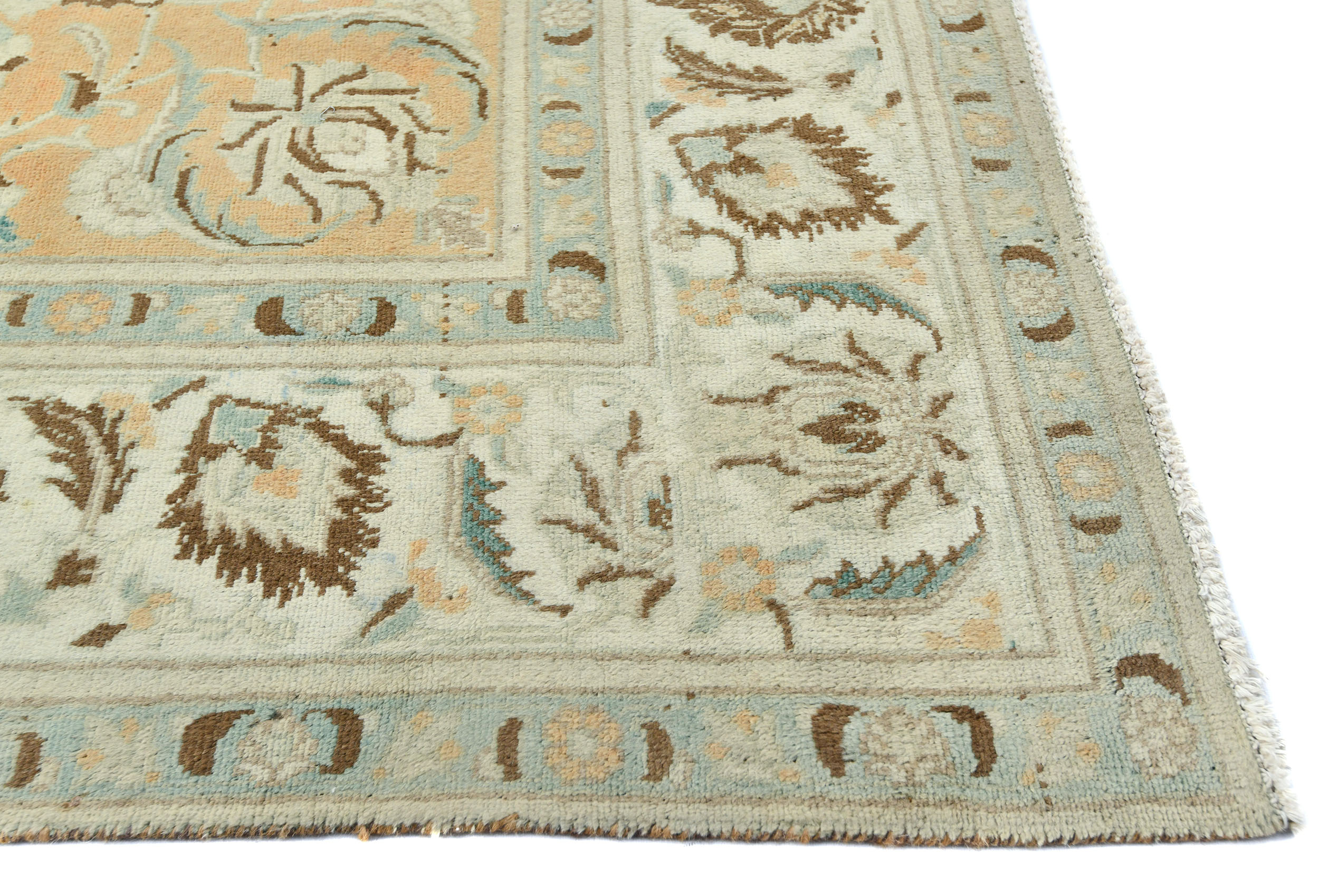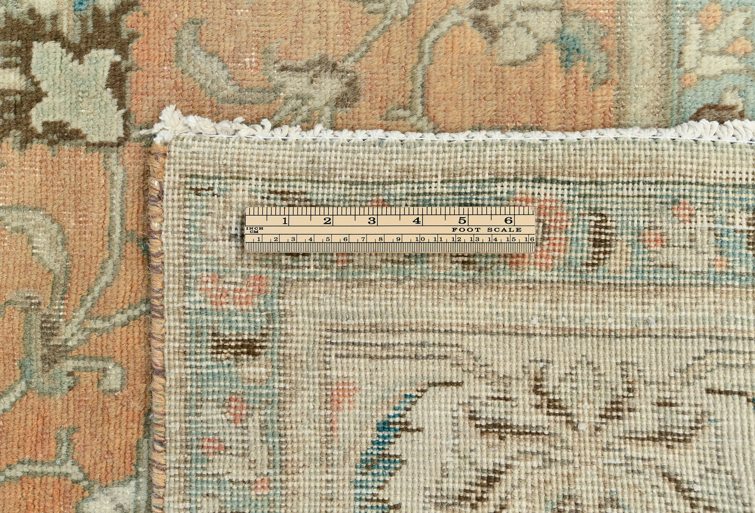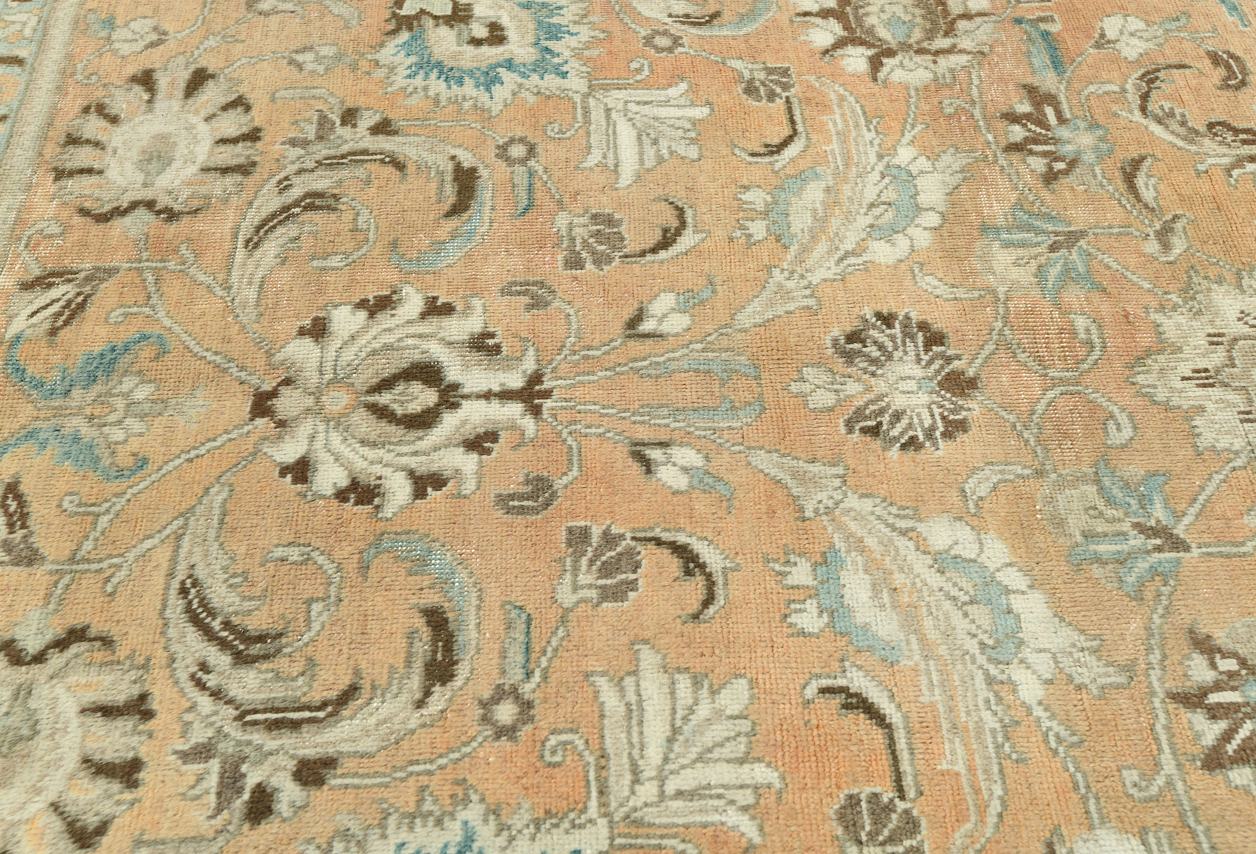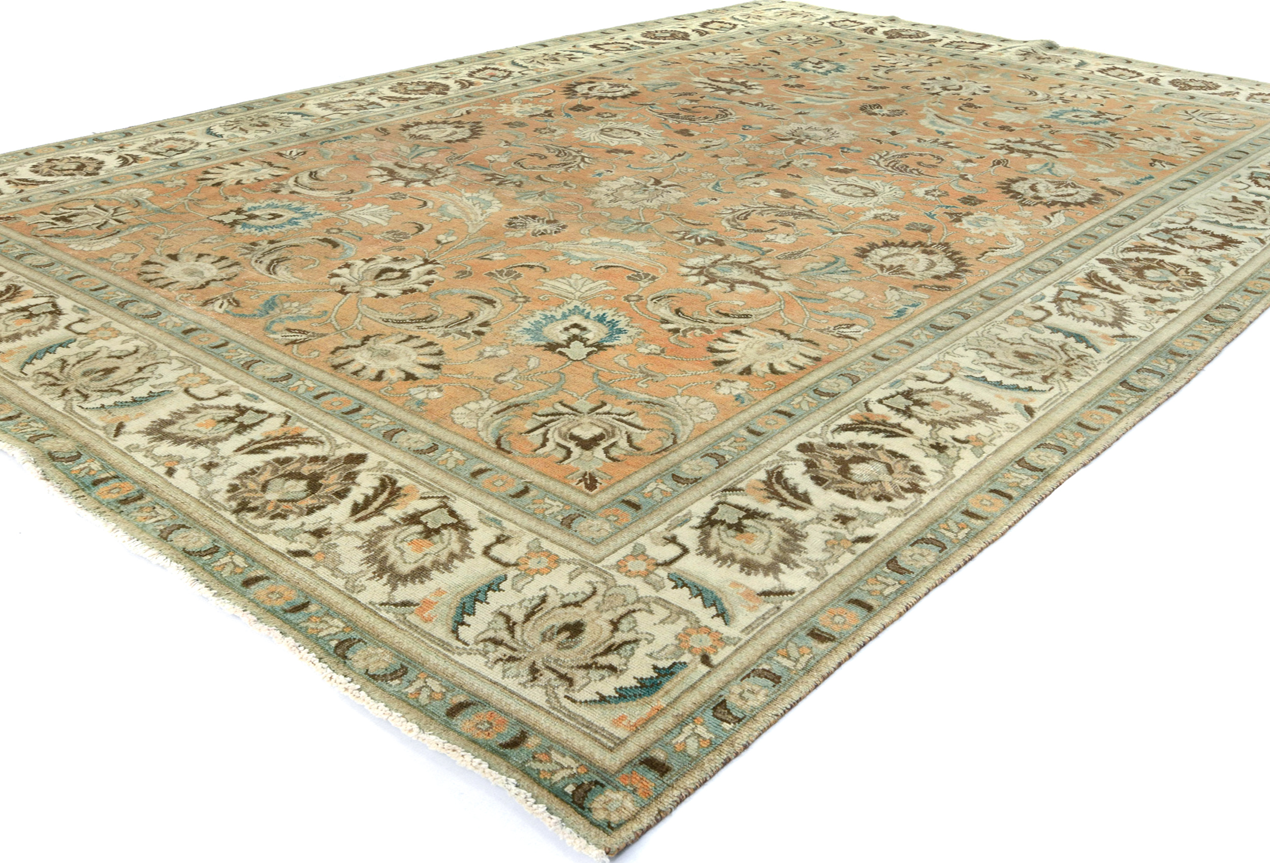This authentic new 8X12 peach Oriental rug was crafted by the hands of skilled weavers enthused by a variety of lovely artistic designs, to recreate the aged look of the unique piece with a richness of color and beautifully elaborated background field. What set this vintage style Oriental area rug from the others are the material and dye used (wool pile and cotton foundation), knot count, ancient designs, fantastic grades, and its regional historical connection: it has deep roots, from the story of the people who produced it to the meaning of the symbols and colors displayed across its canvas that have been praised for centuries. This Indian home décor carpet will be completely cozy and inviting that never will go out of style!