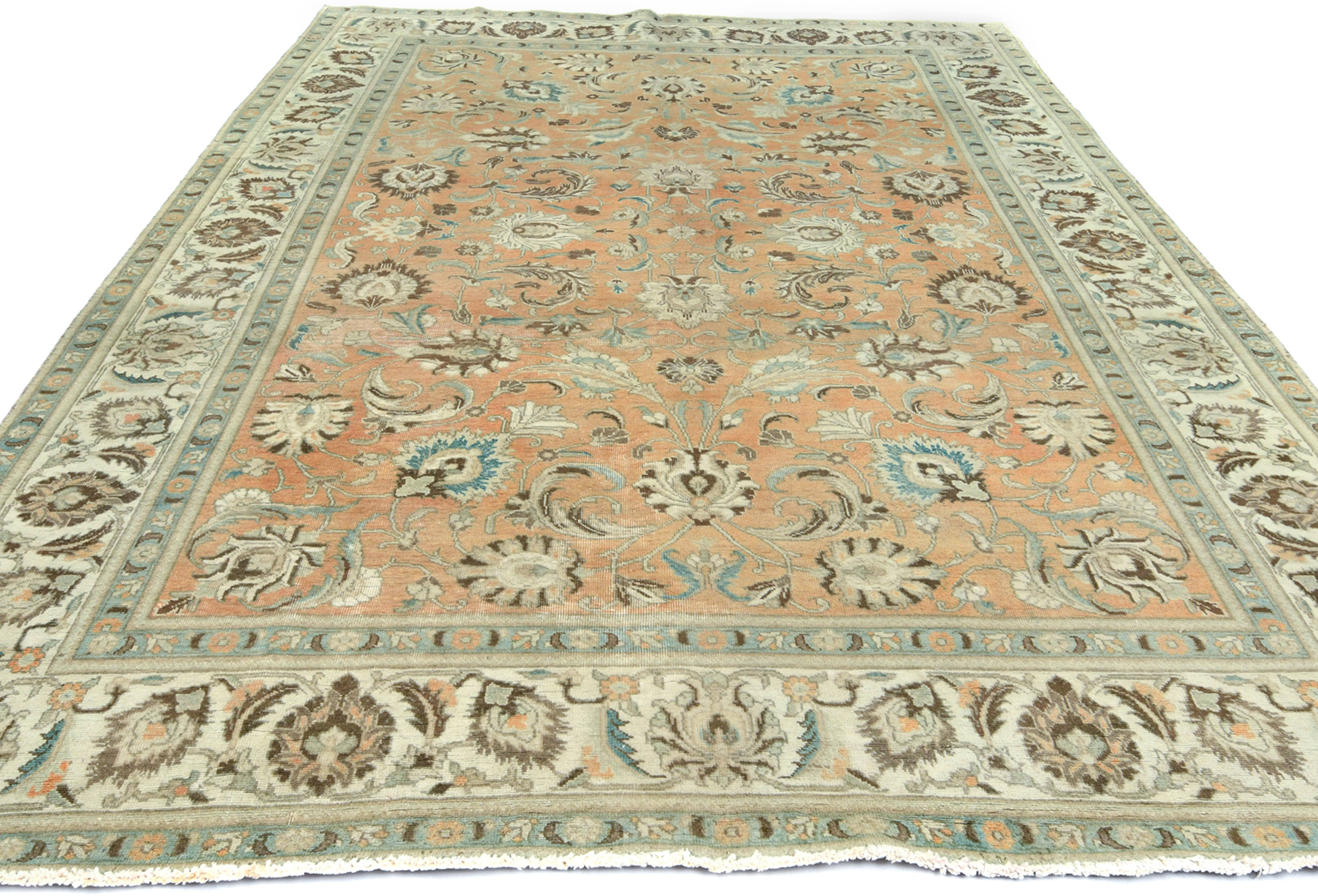 Semi Antique Muted Floral 8X12 Distressed Vintage Oriental Rug