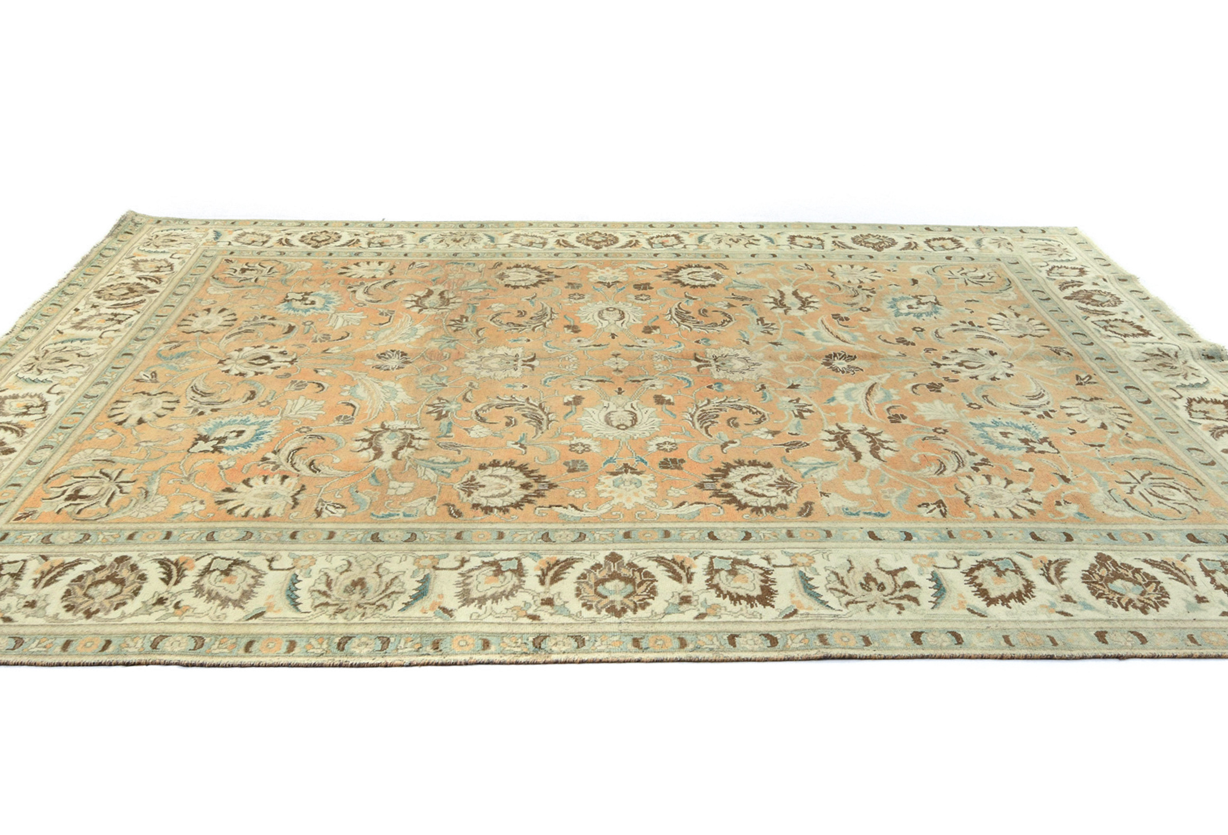 Hand Knotted 8X12 peach oriental rug made with vegetable dyes (fine wool pile and cotton foundation), superior knot count, and appealing ancient designs. This Oriental rug never will go out of style and would be among your most valuable treasures. RT-6167