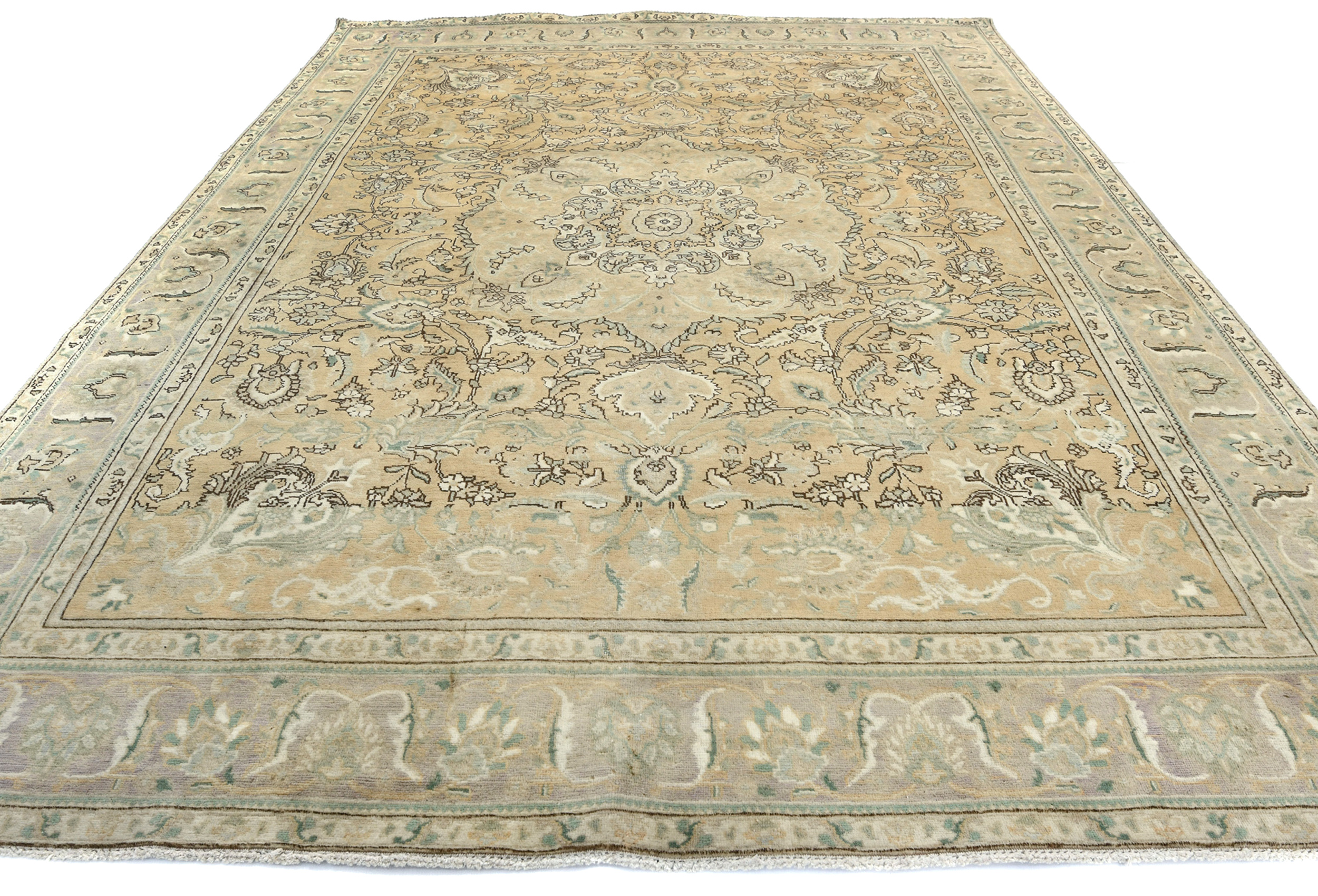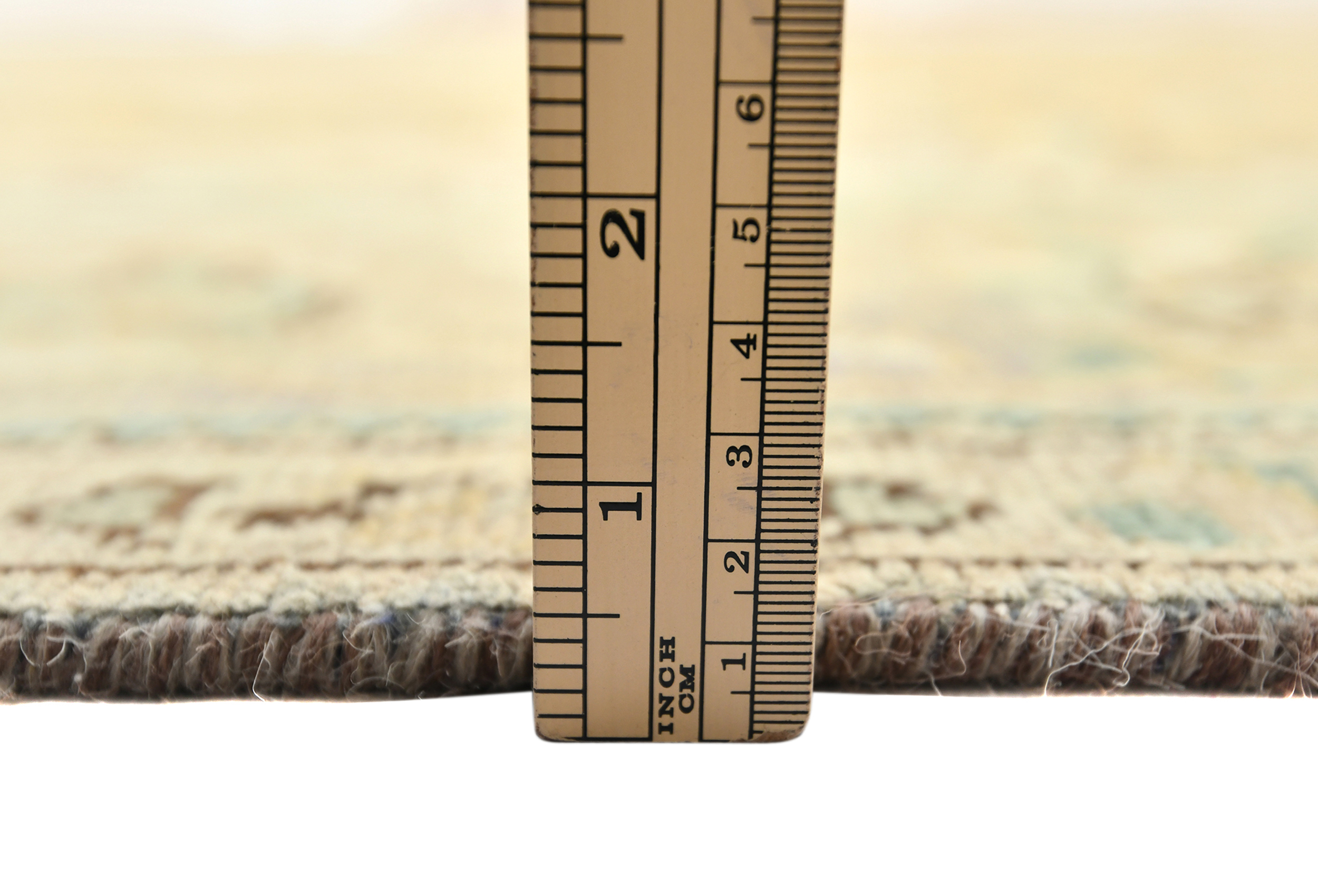 This authentic 9'7X12'5 brown new Oriental rug was crafted by the hands of skilled weavers enthused by a variety of lovely artistic designs, to recreate the aged look of the unique piece with a richness of color and beautifully elaborated background field. What set this vintage style Oriental area rug from the others are the material and dye used (wool pile and cotton foundation), knot count, ancient designs, fantastic grades, and its regional historical connection: it has deep roots, from the story of the people who produced it to the meaning of the symbols and colors displayed across its canvas that have been praised for centuries. This Indian home décor carpet will be completely cozy and inviting that never will go out of style!