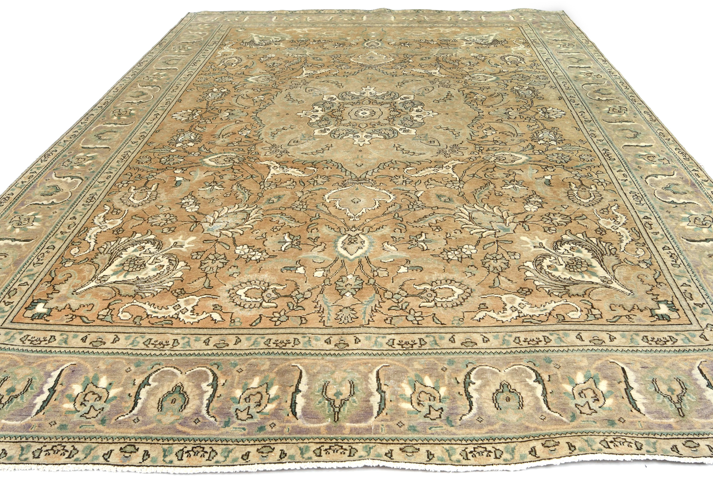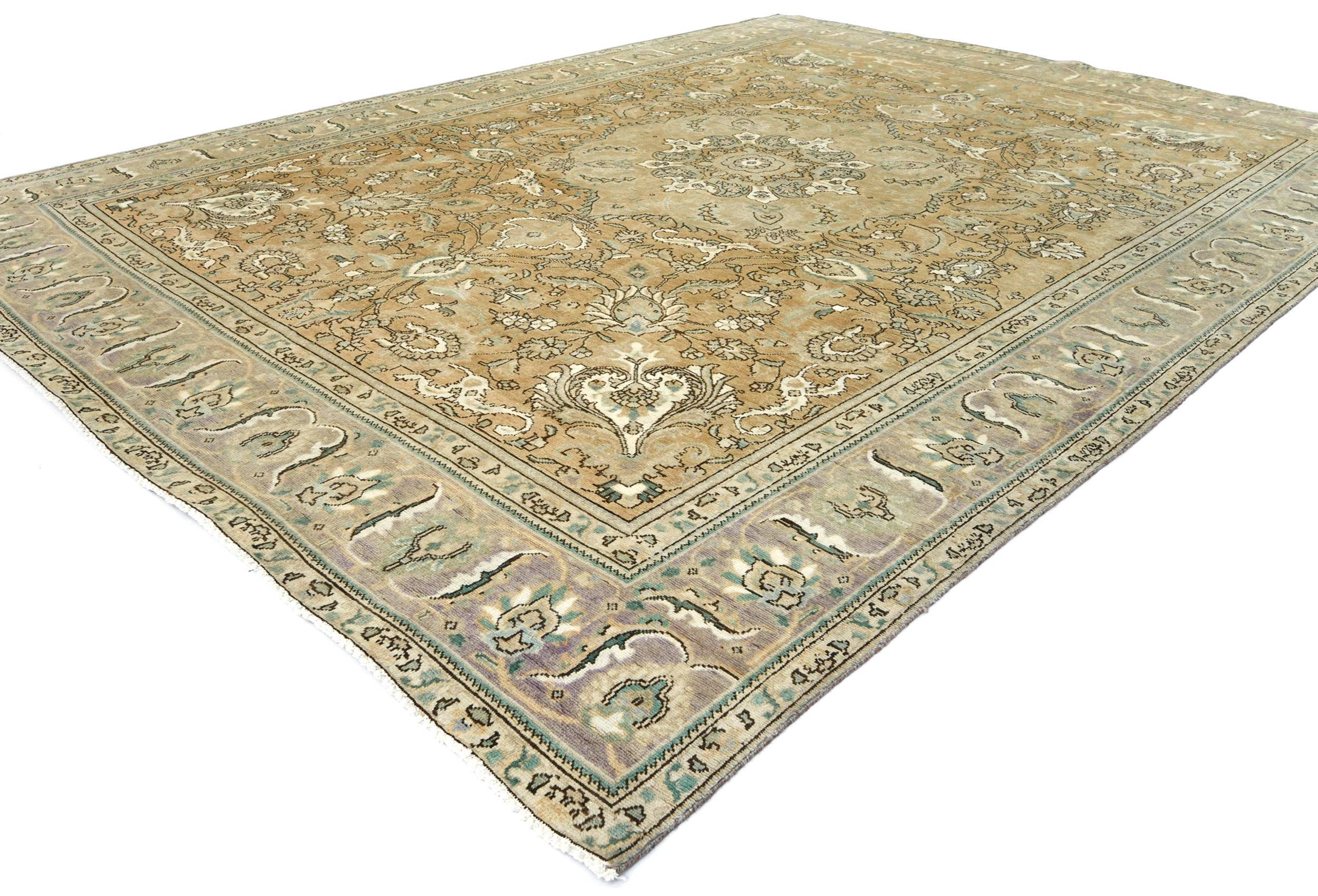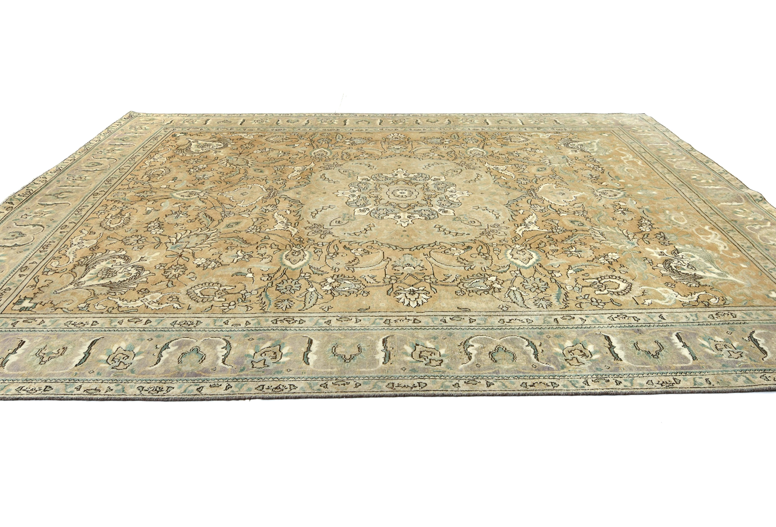 Muted Brown Semi Antique Floral 9'7X12'5 Distressed Vintage Oriental Rug