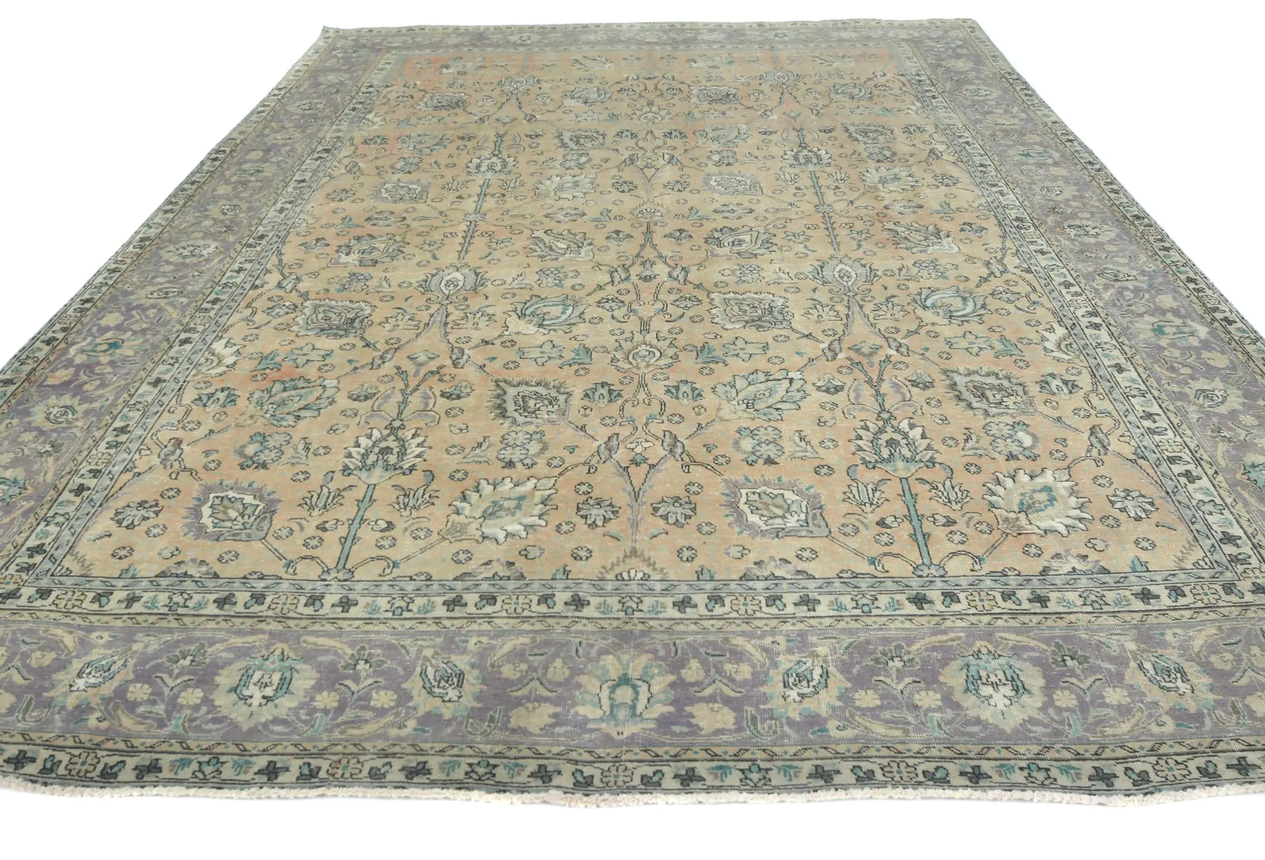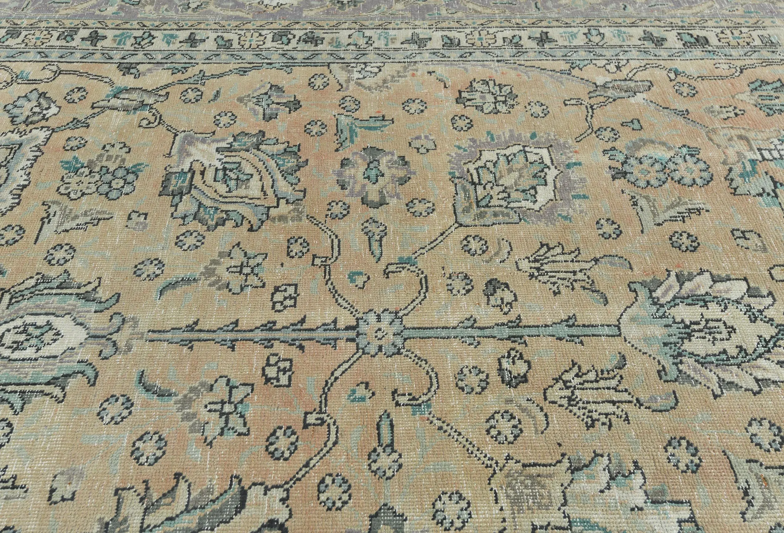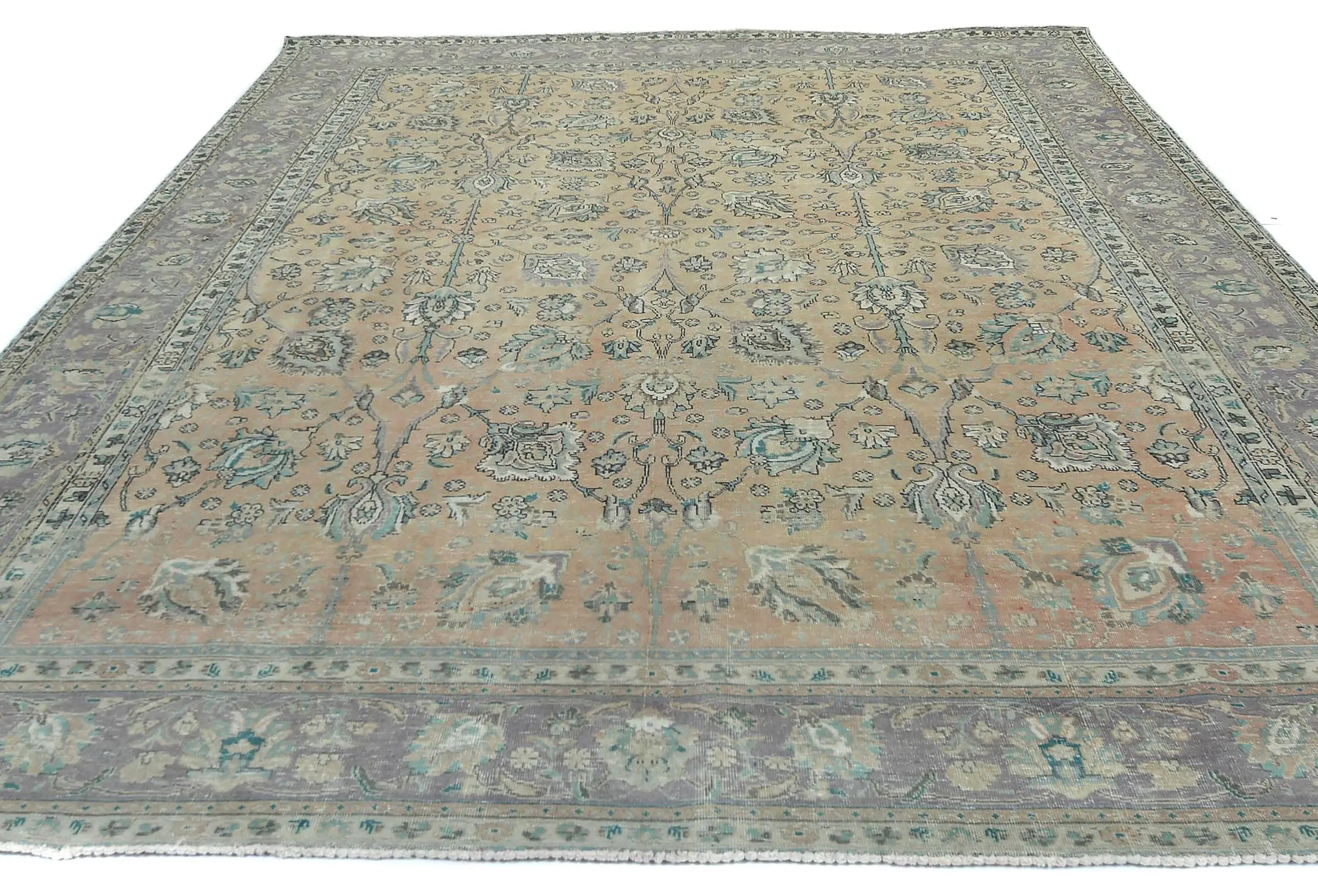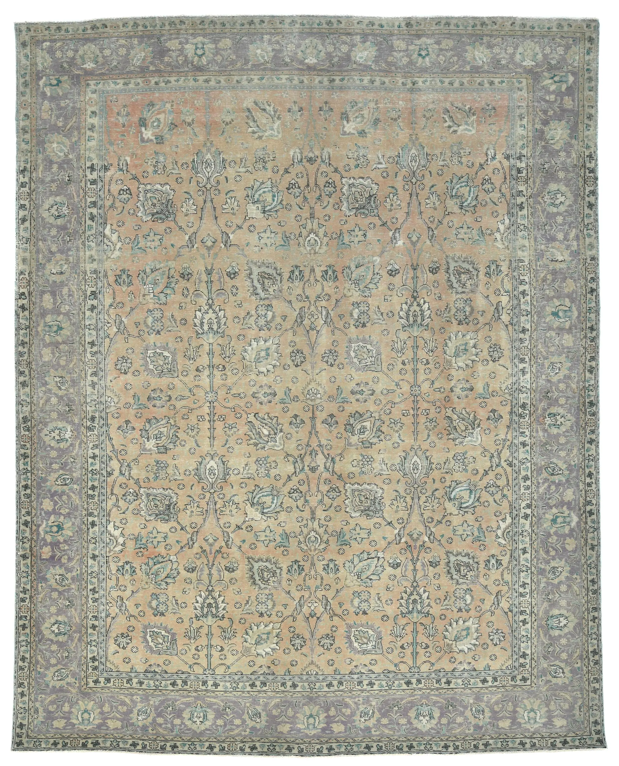 Handmade antique 9'8X12'5 Light Peach Oriental rug made with vegetable dyes (fine wool pile and cotton foundation), superior knot count, and alluring ancient designs. This Oriental rug never will go out of style and would be among your most valuable treasures.