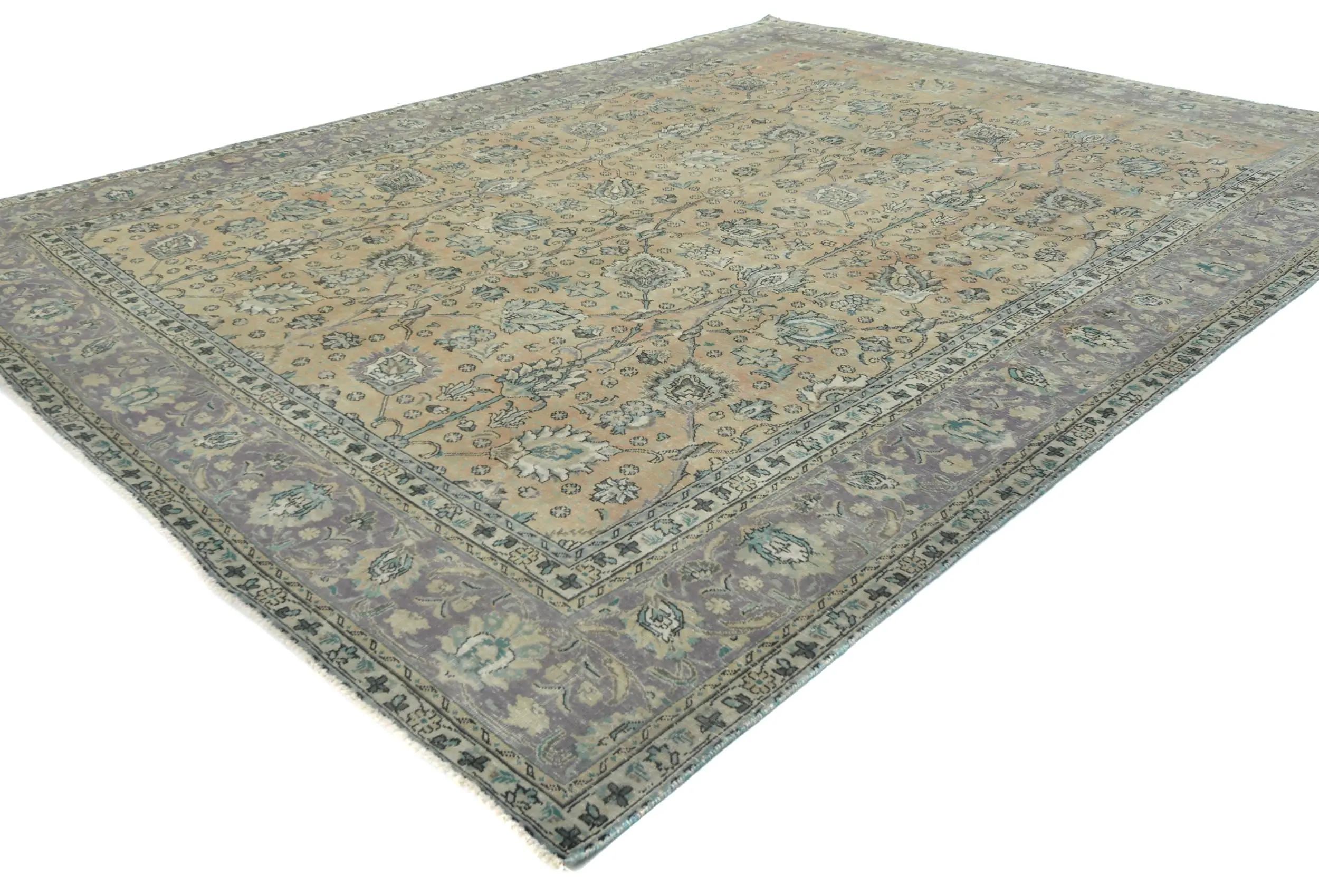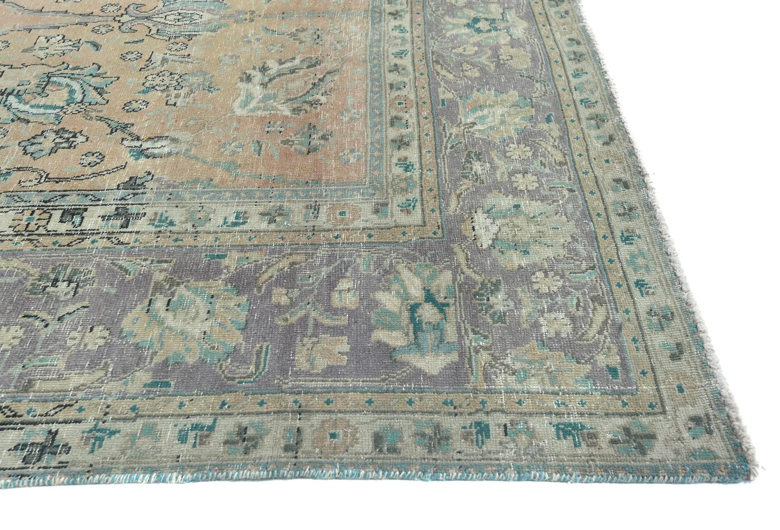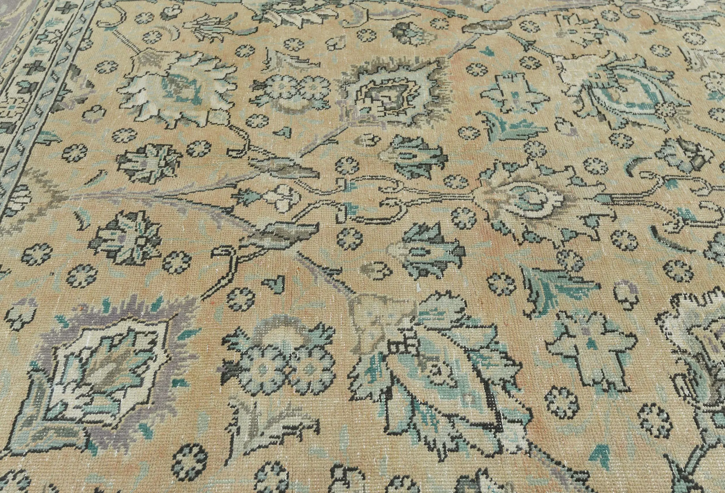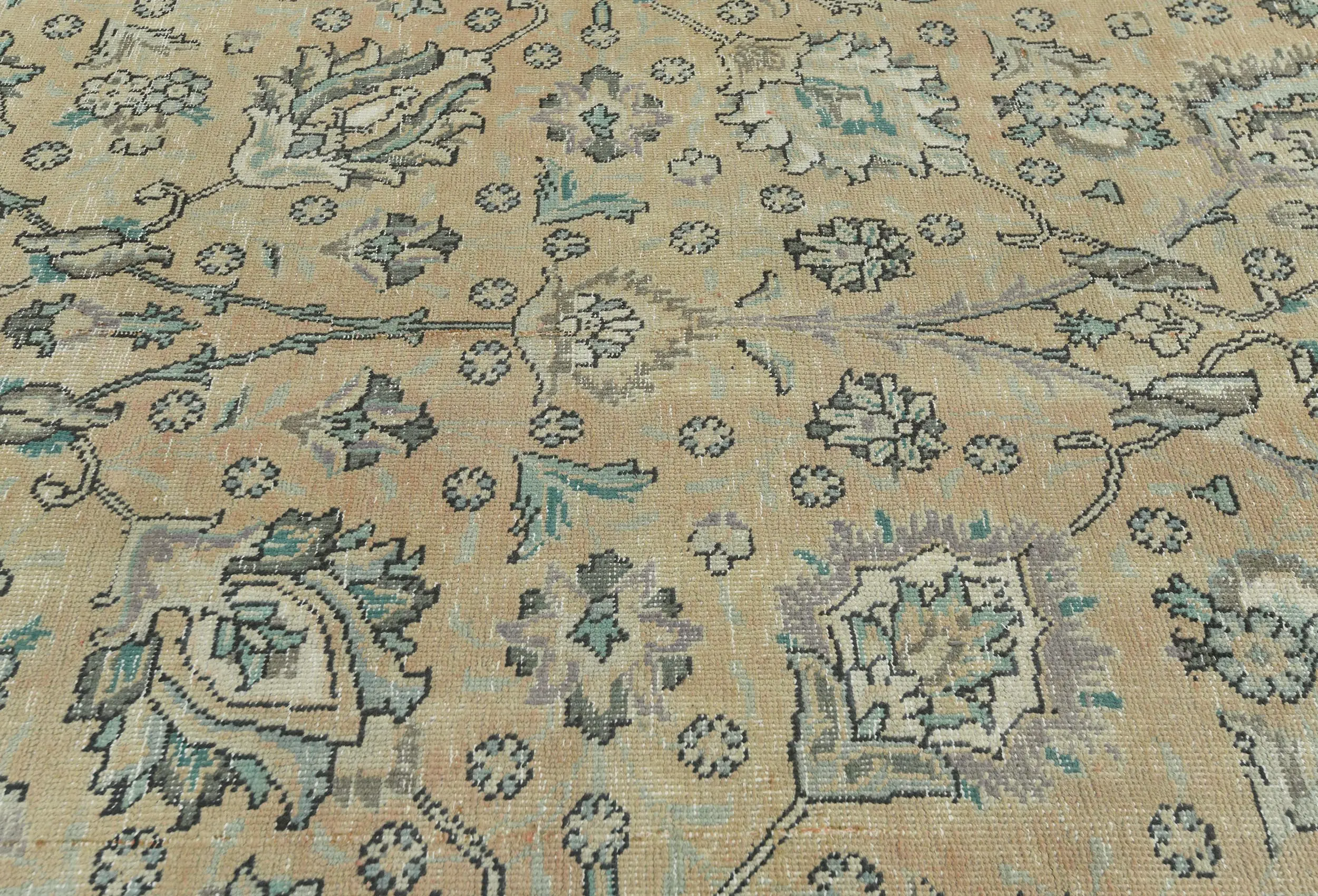 Handmade antique 9'8X12'5 Light Peach Oriental rug made with vegetable dyes (fine wool pile and cotton foundation), superior knot count, and alluring ancient designs. This Oriental rug never will go out of style and would be among your most valuable treasures.