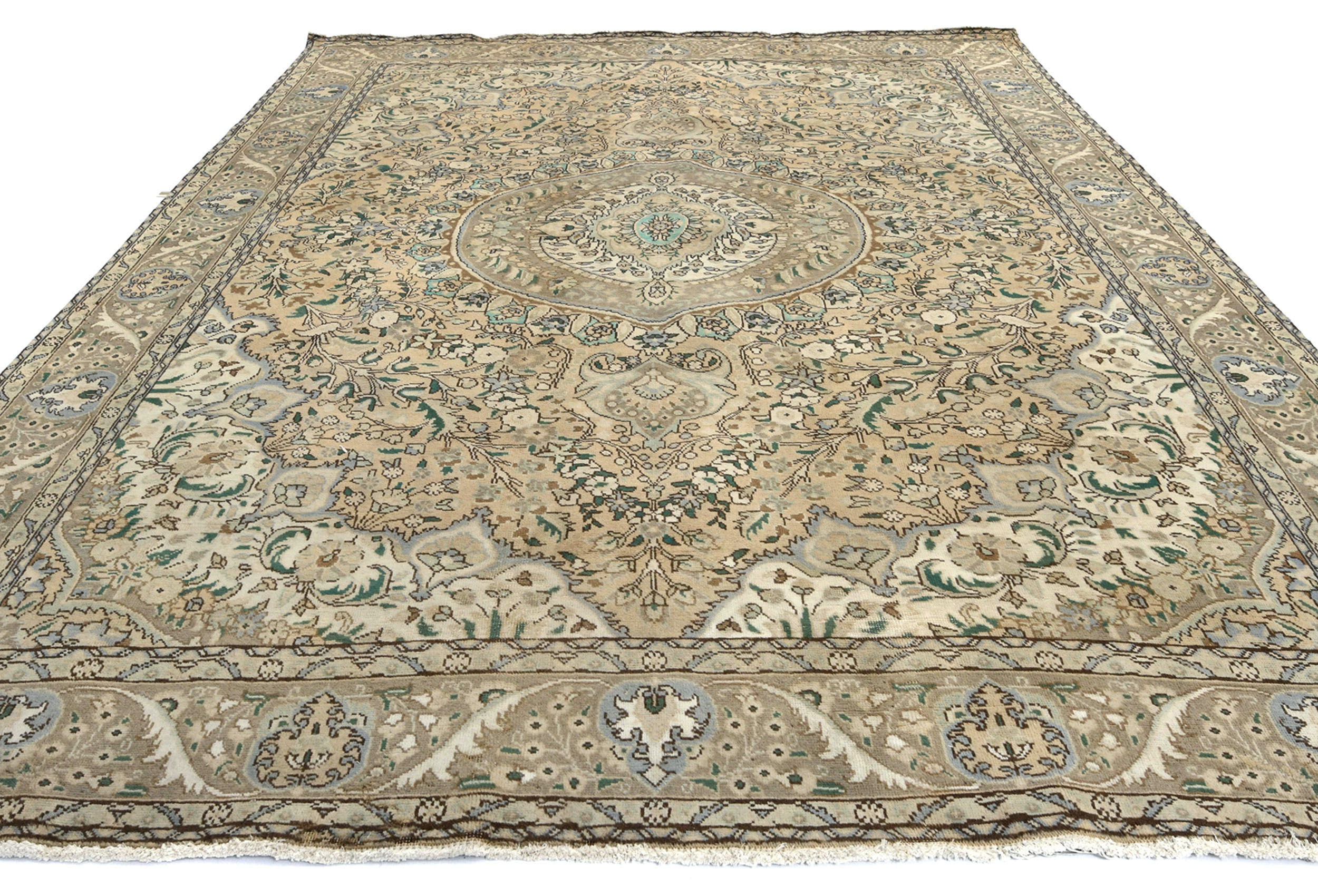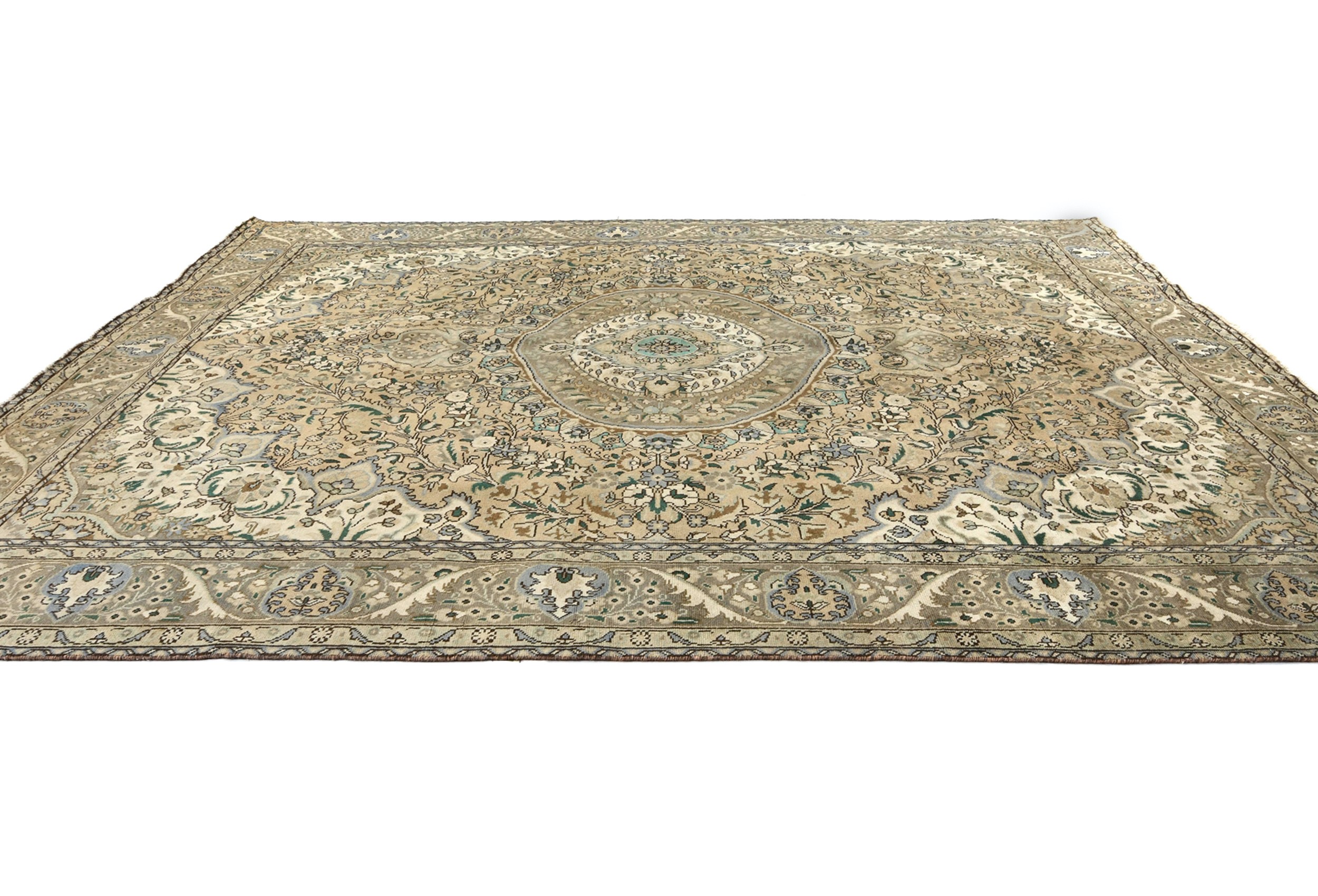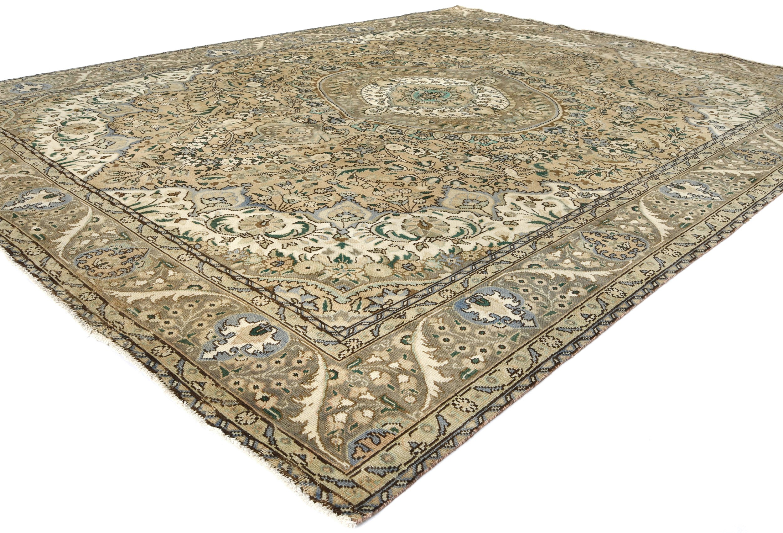 Muted Beige Semi Antique Floral 9'9X12'5 Distressed Vintage Oriental Rug