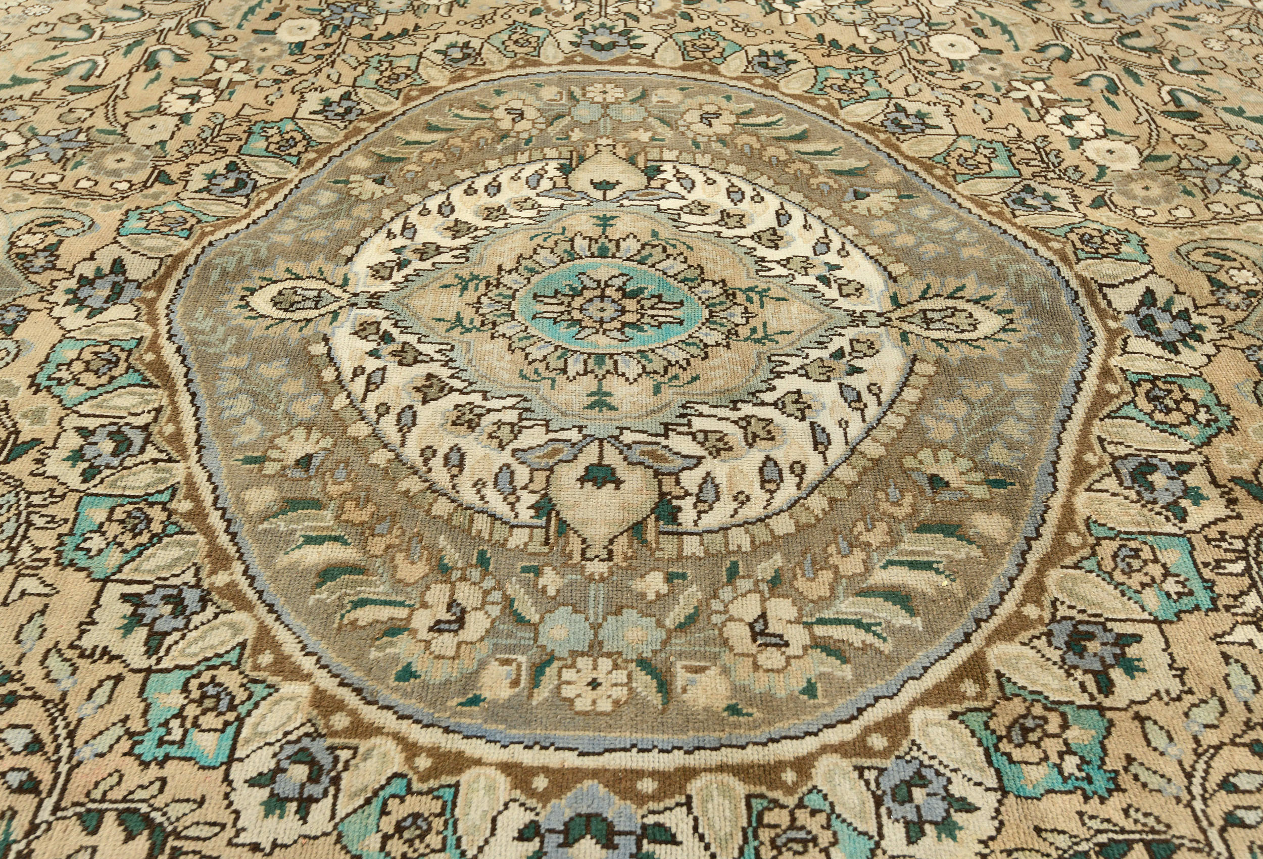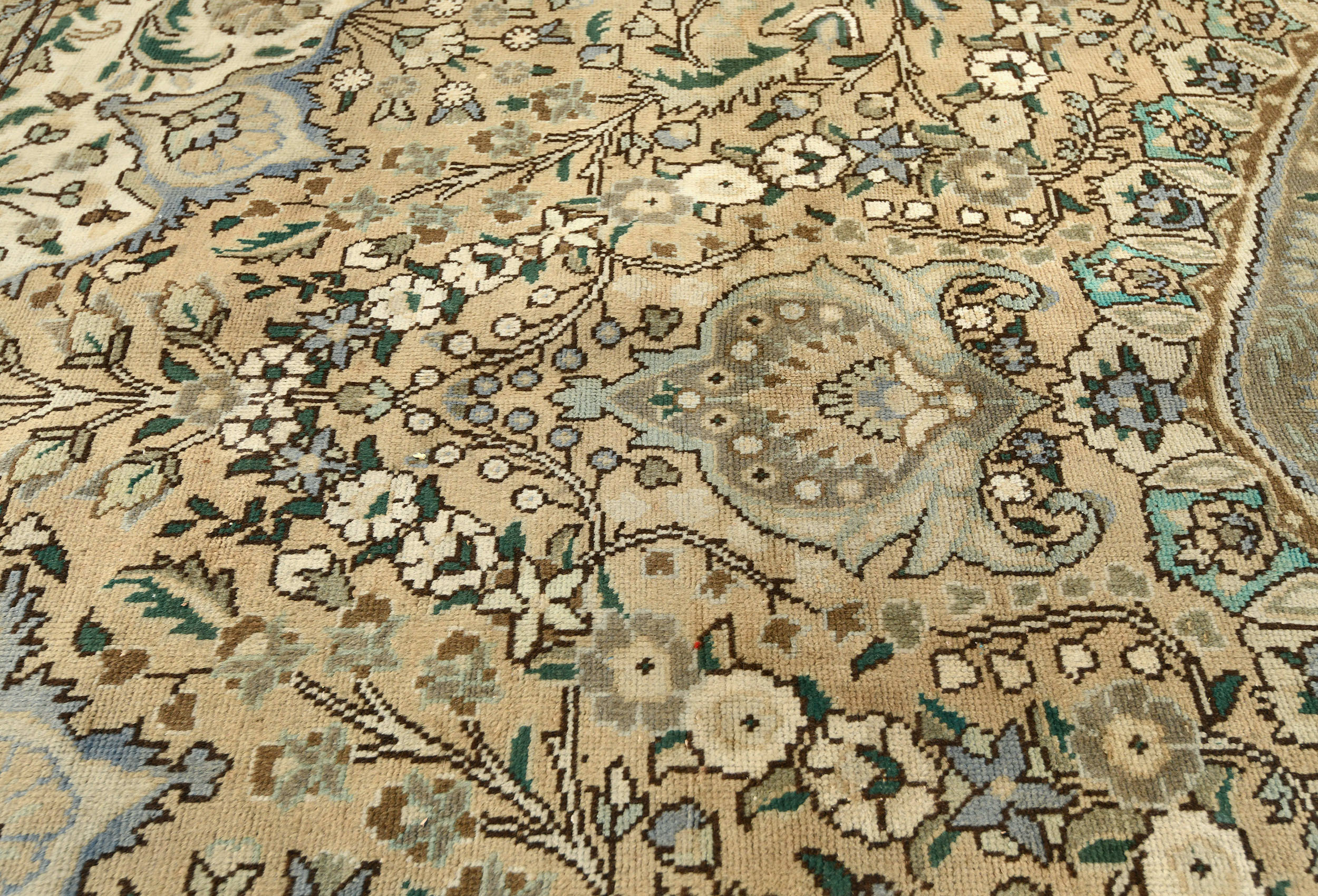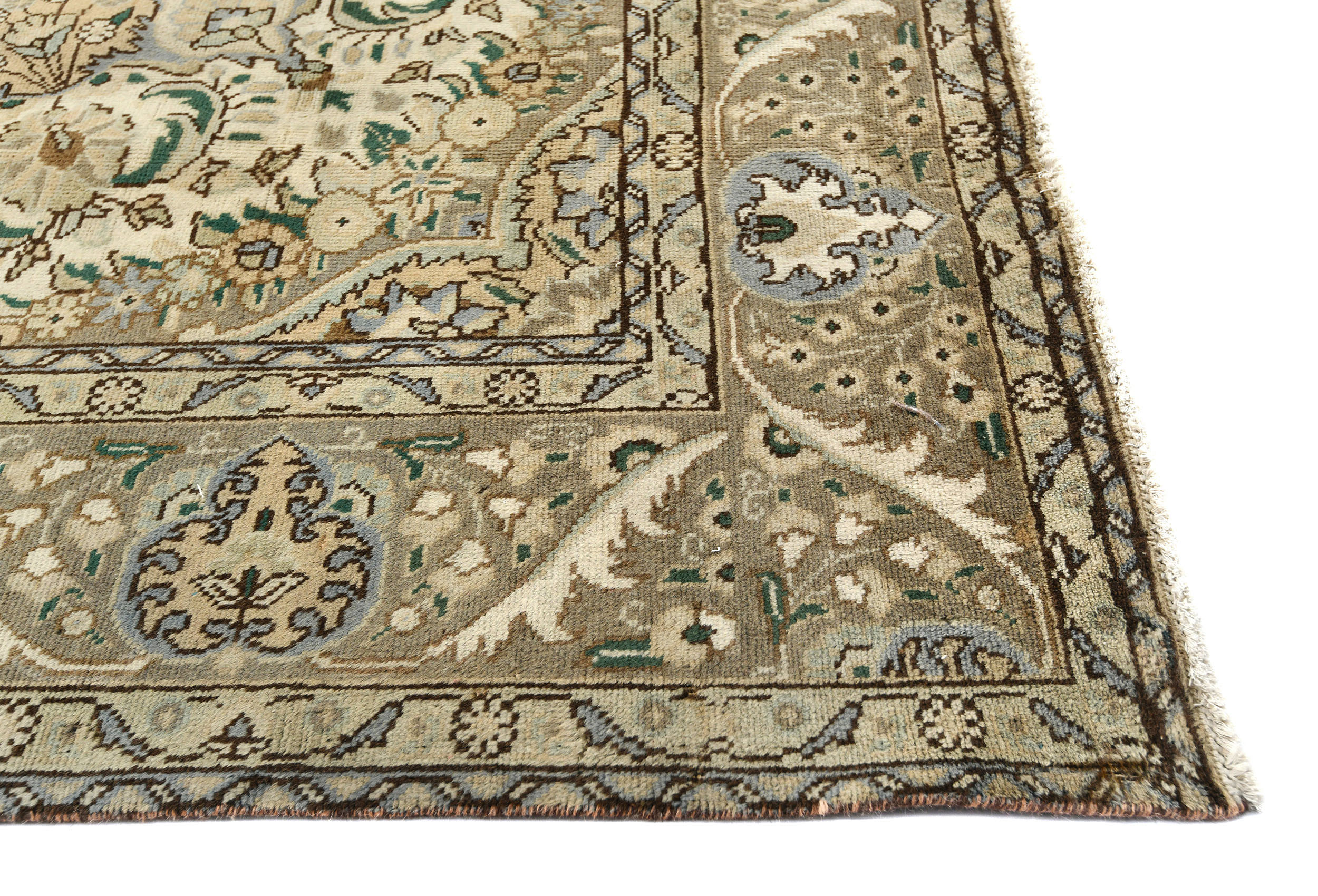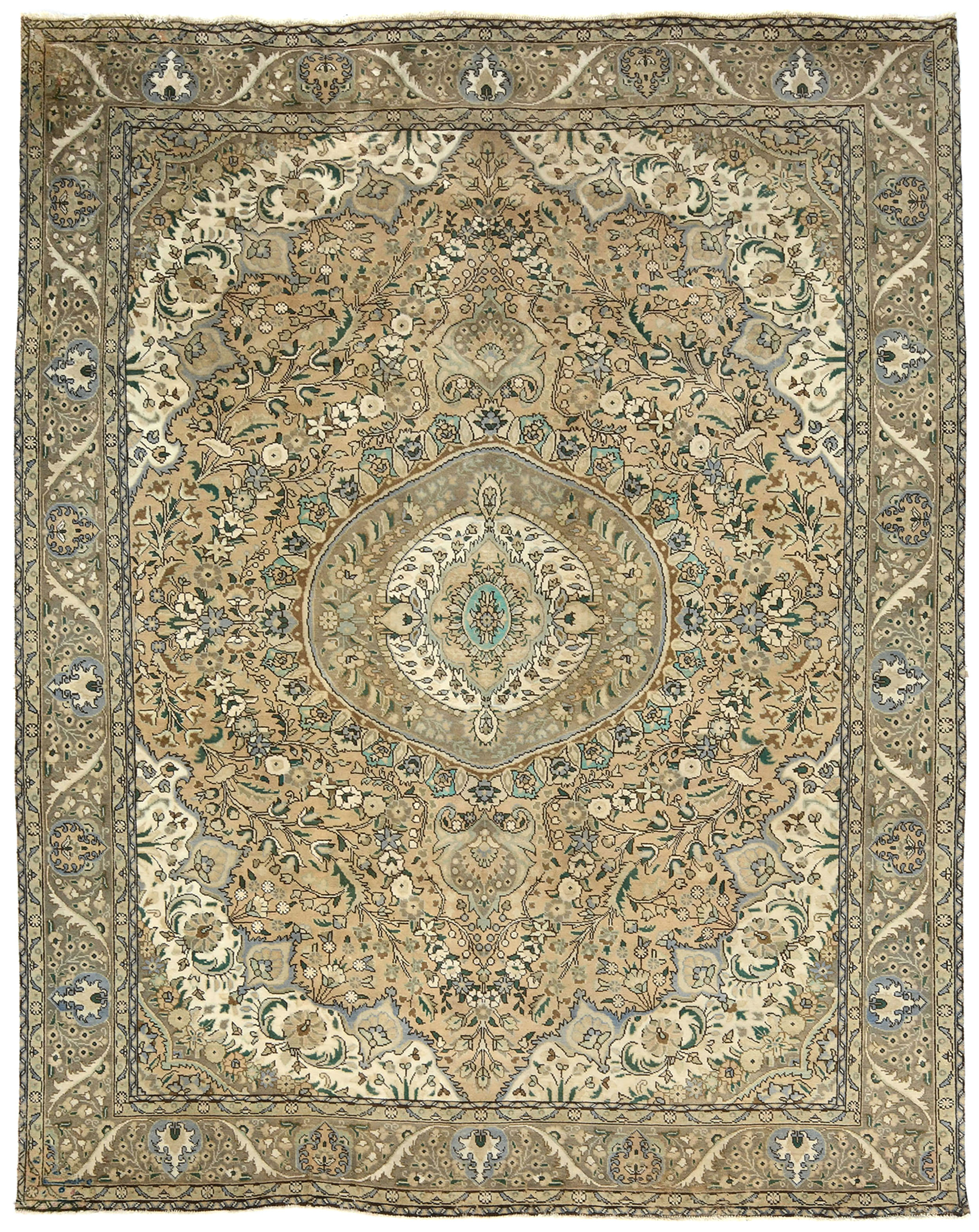Muted Beige Semi Antique Floral 9'9X12'5 Distressed Vintage Oriental Rug