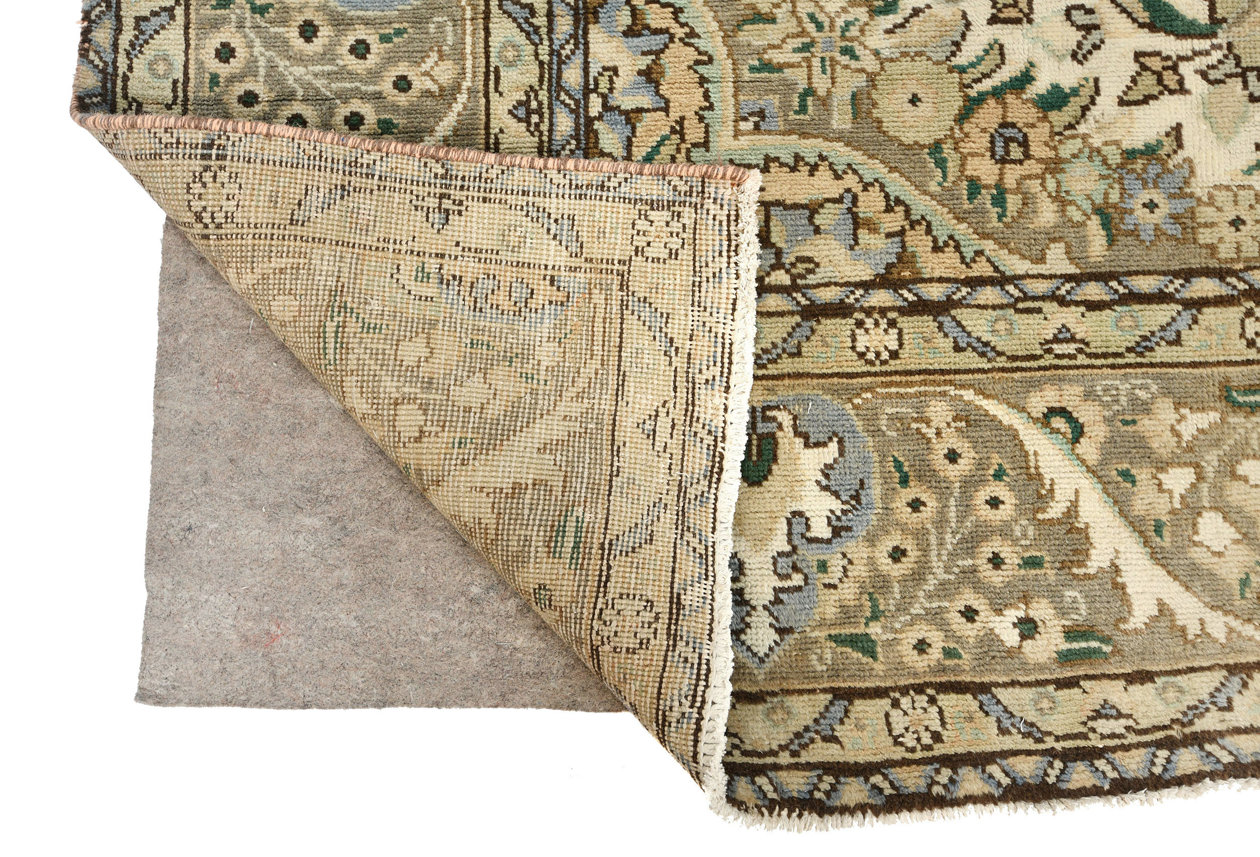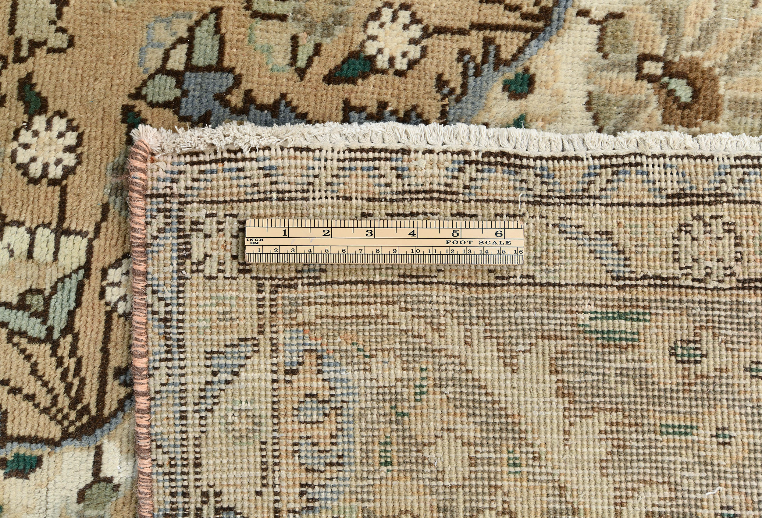 This authentic 9'9X12'5 beige new Oriental rug was crafted by the hands of skilled weavers enthused by a variety of lovely artistic designs, to recreate the aged look of the unique piece with a richness of color and beautifully elaborated background field. What set this vintage style Oriental area rug from the others are the material and dye used (wool pile and cotton foundation), knot count, ancient designs, fantastic grades, and its regional historical connection: it has deep roots, from the story of the people who produced it to the meaning of the symbols and colors displayed across its canvas that have been praised for centuries. This Indian home décor carpet will be completely cozy and inviting that never will go out of style!