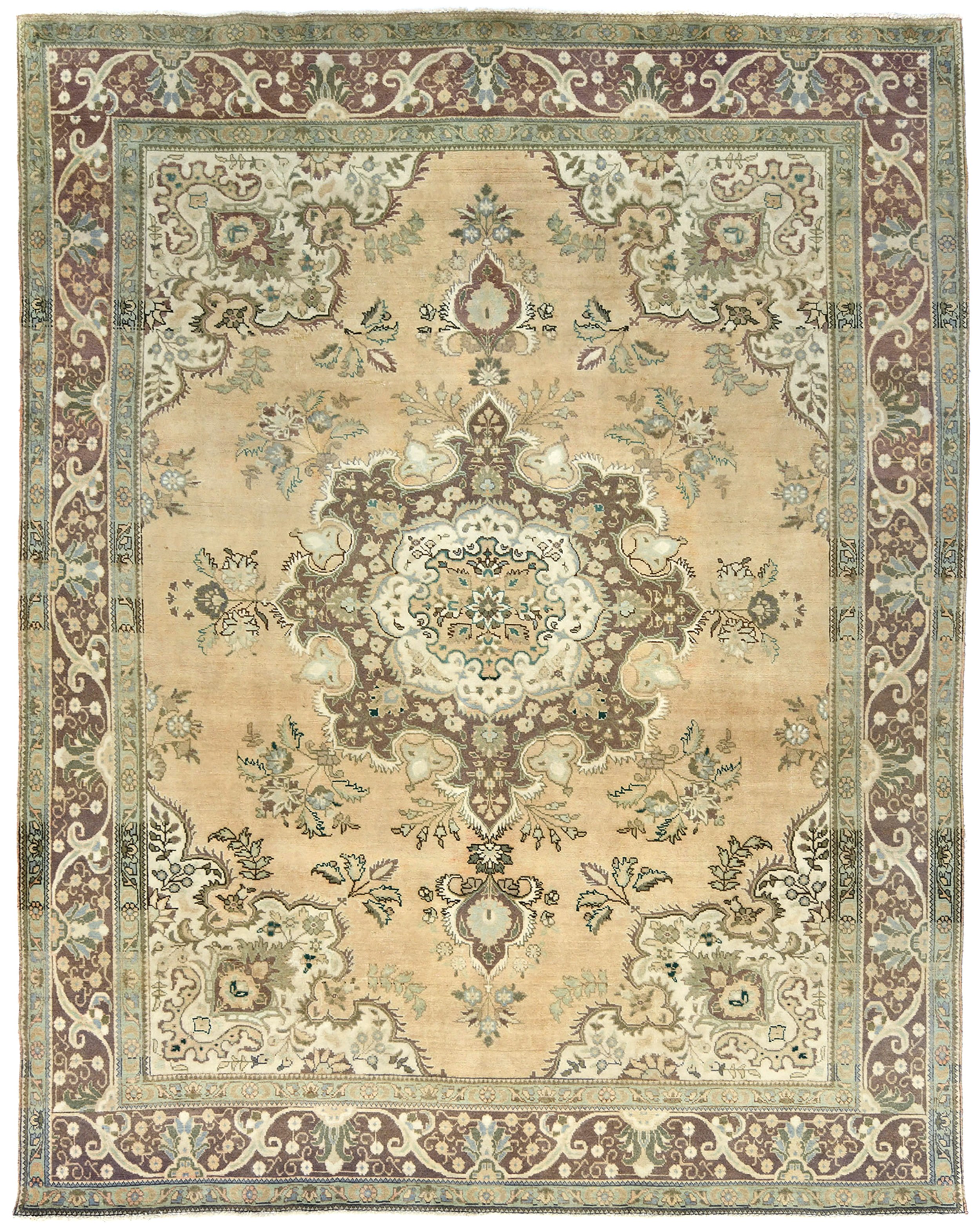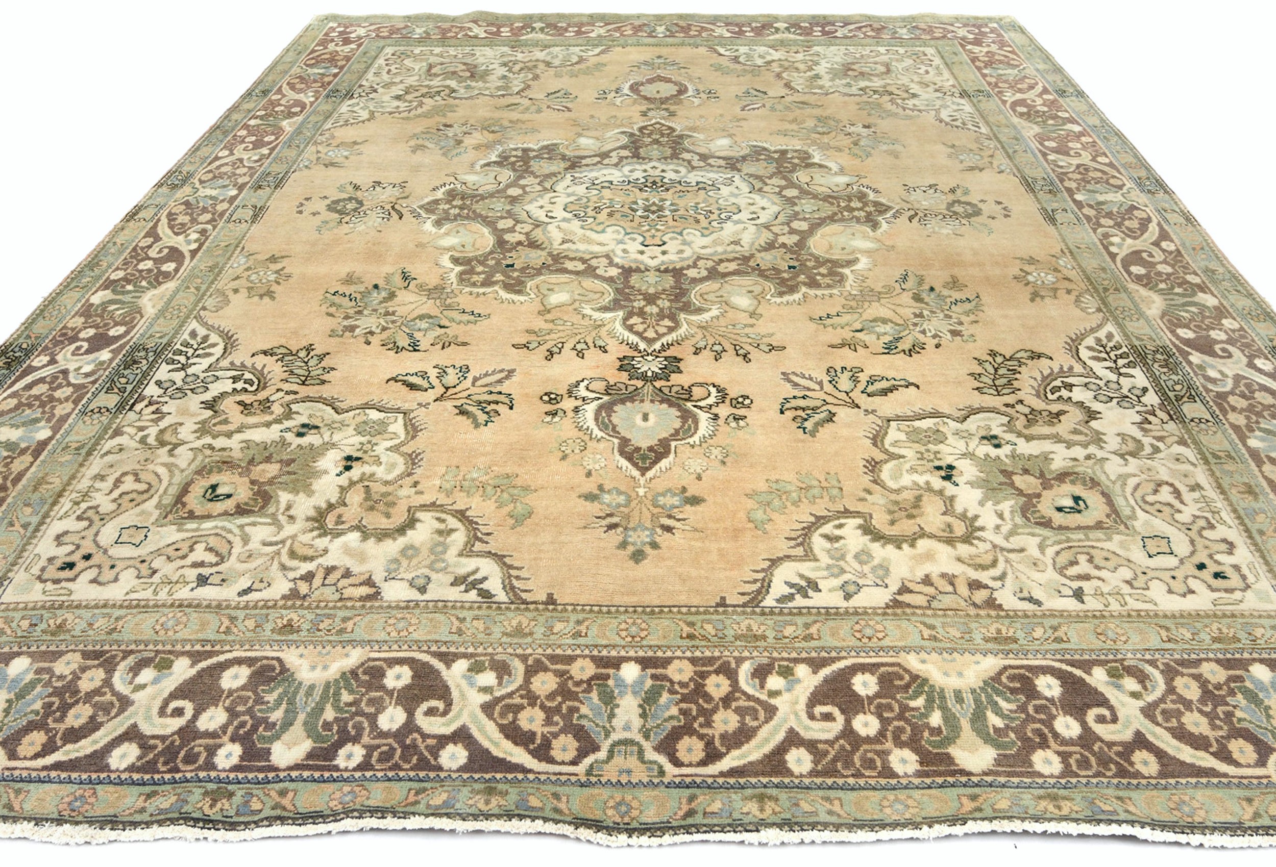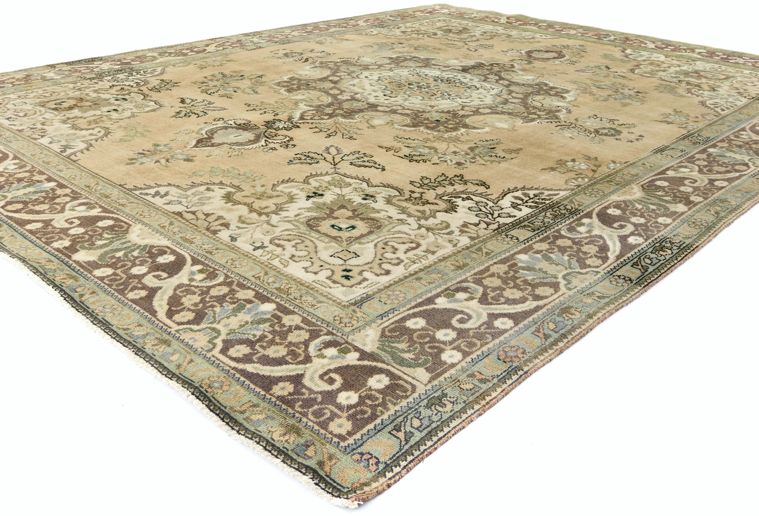 Muted Light Peach Semi Antique Floral 9'9X12'5 Distressed Vintage Oriental Rug