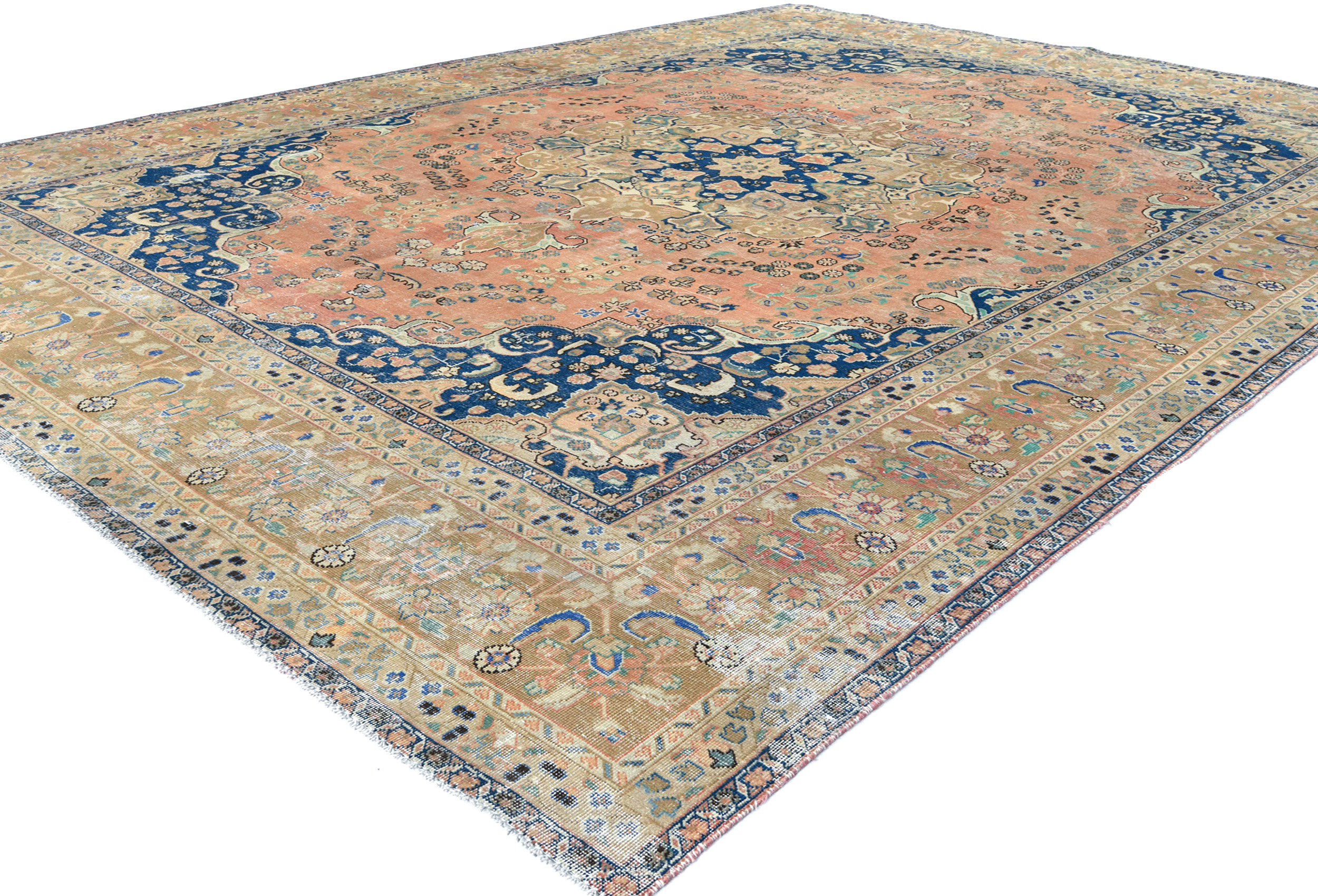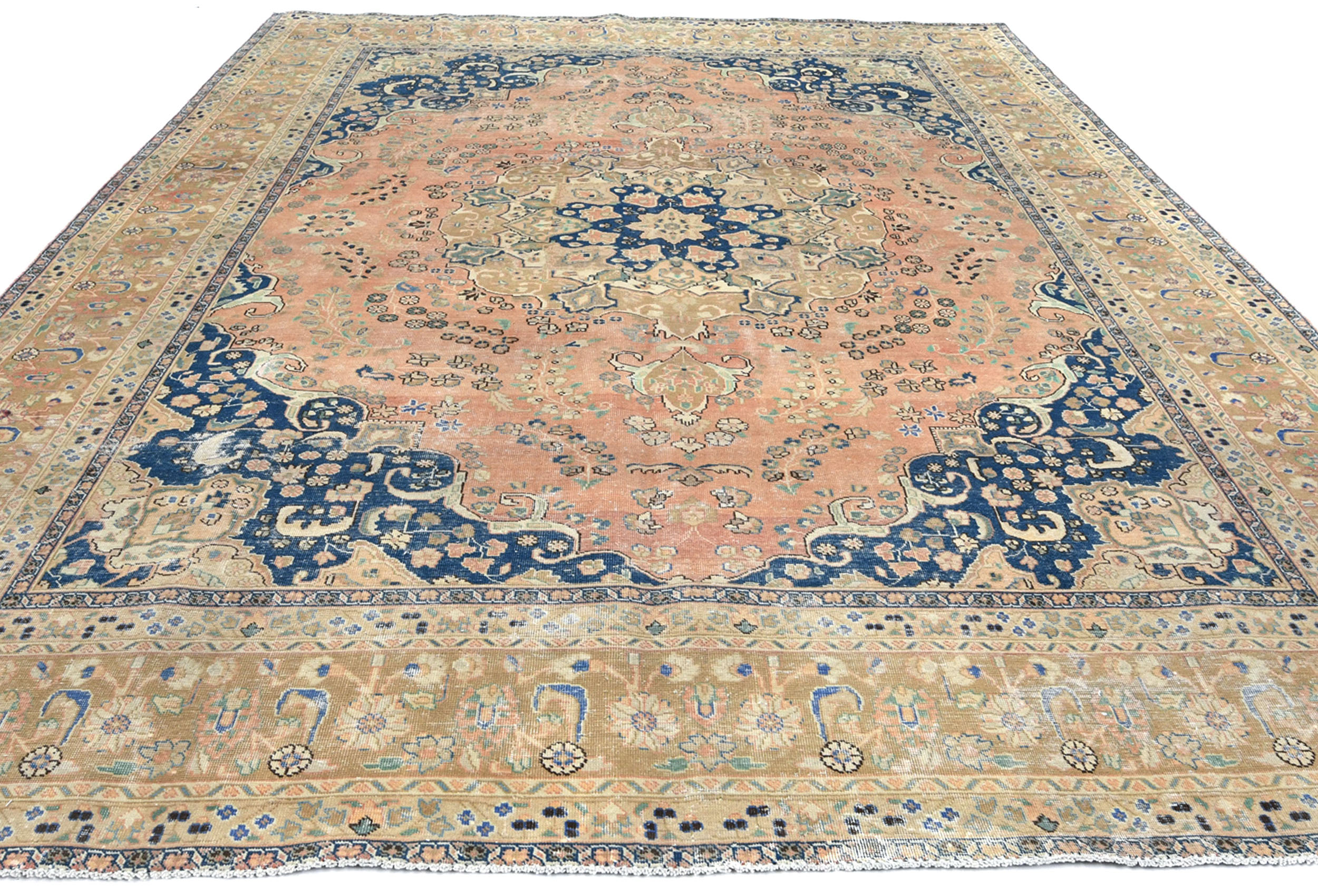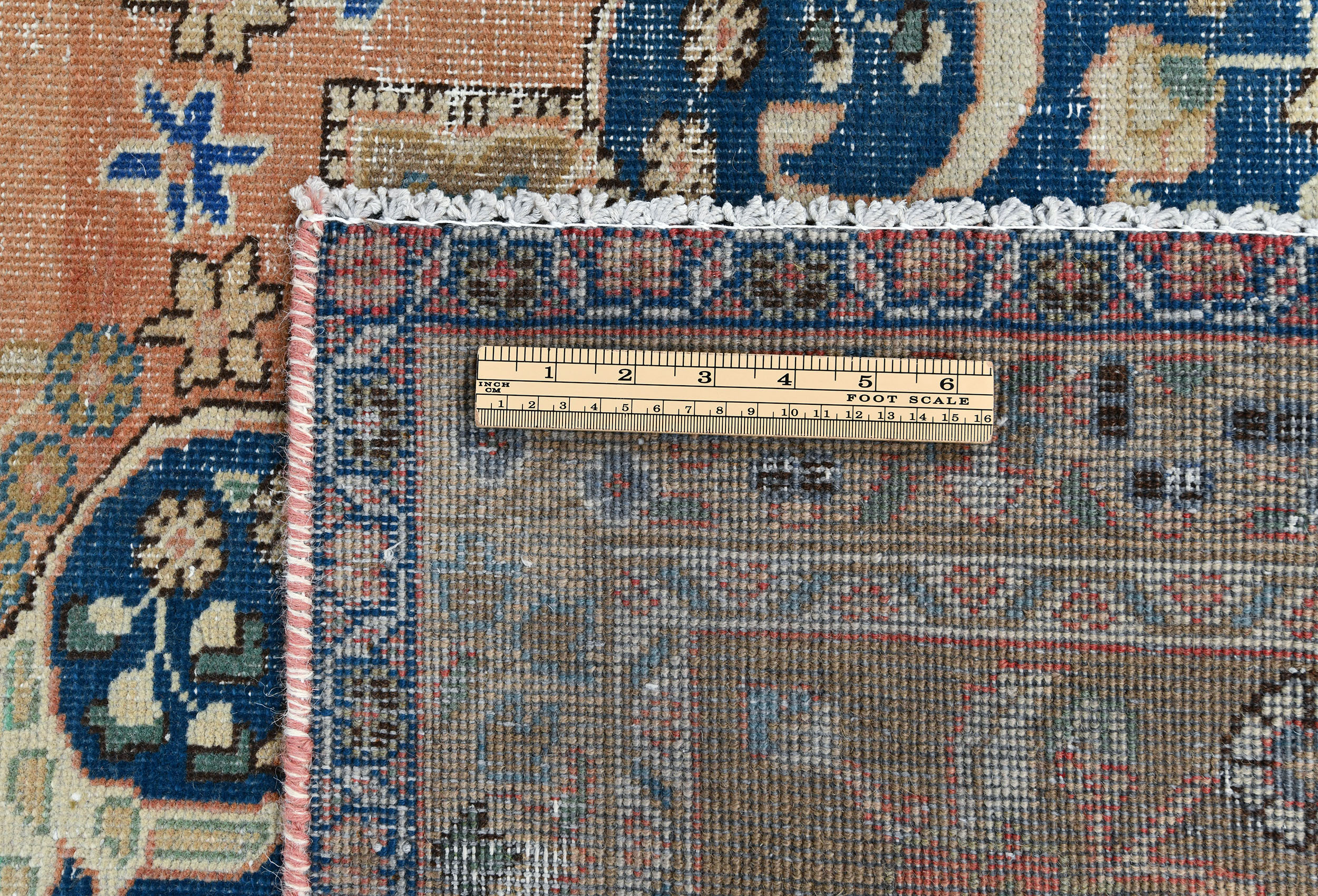 Semi Antique Muted Coral Red Floral 9X12 Distressed Vintage Oriental Rug