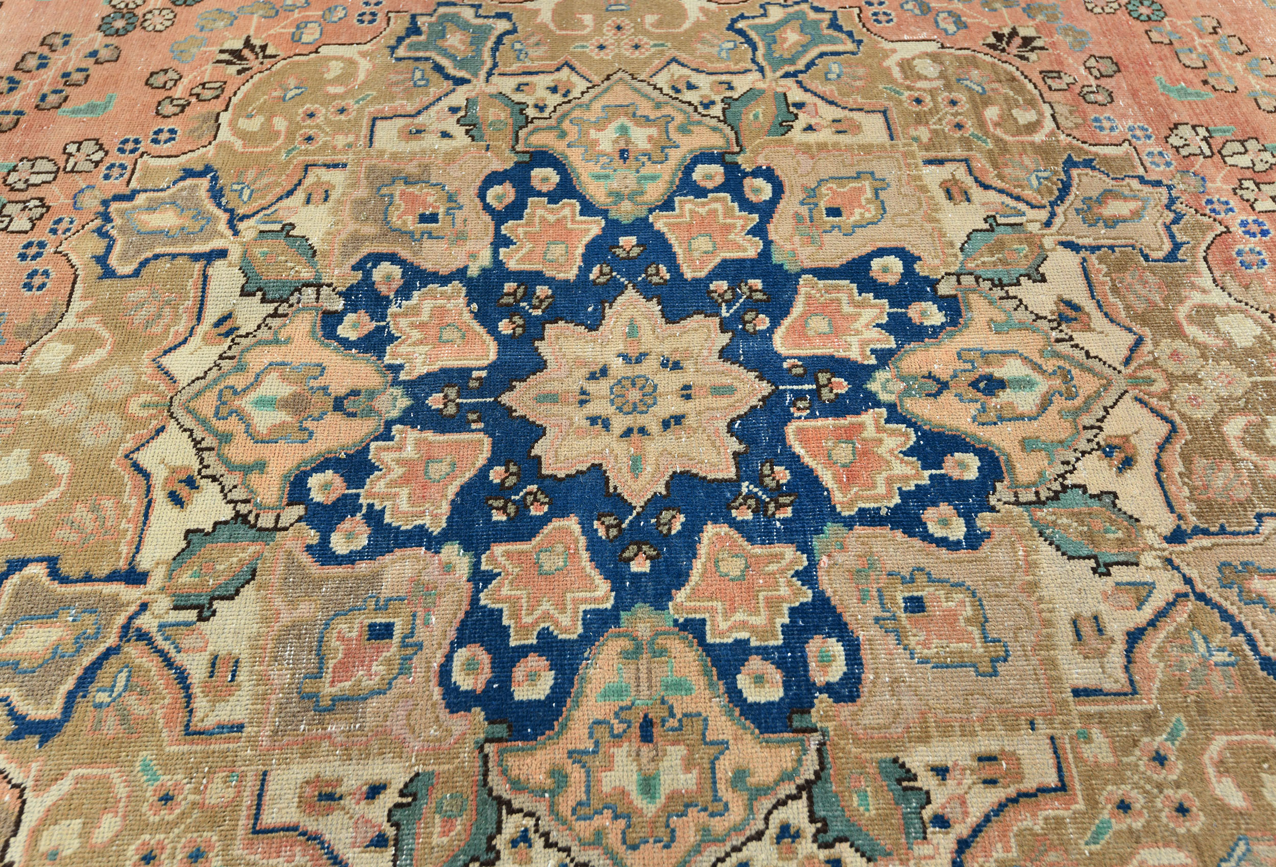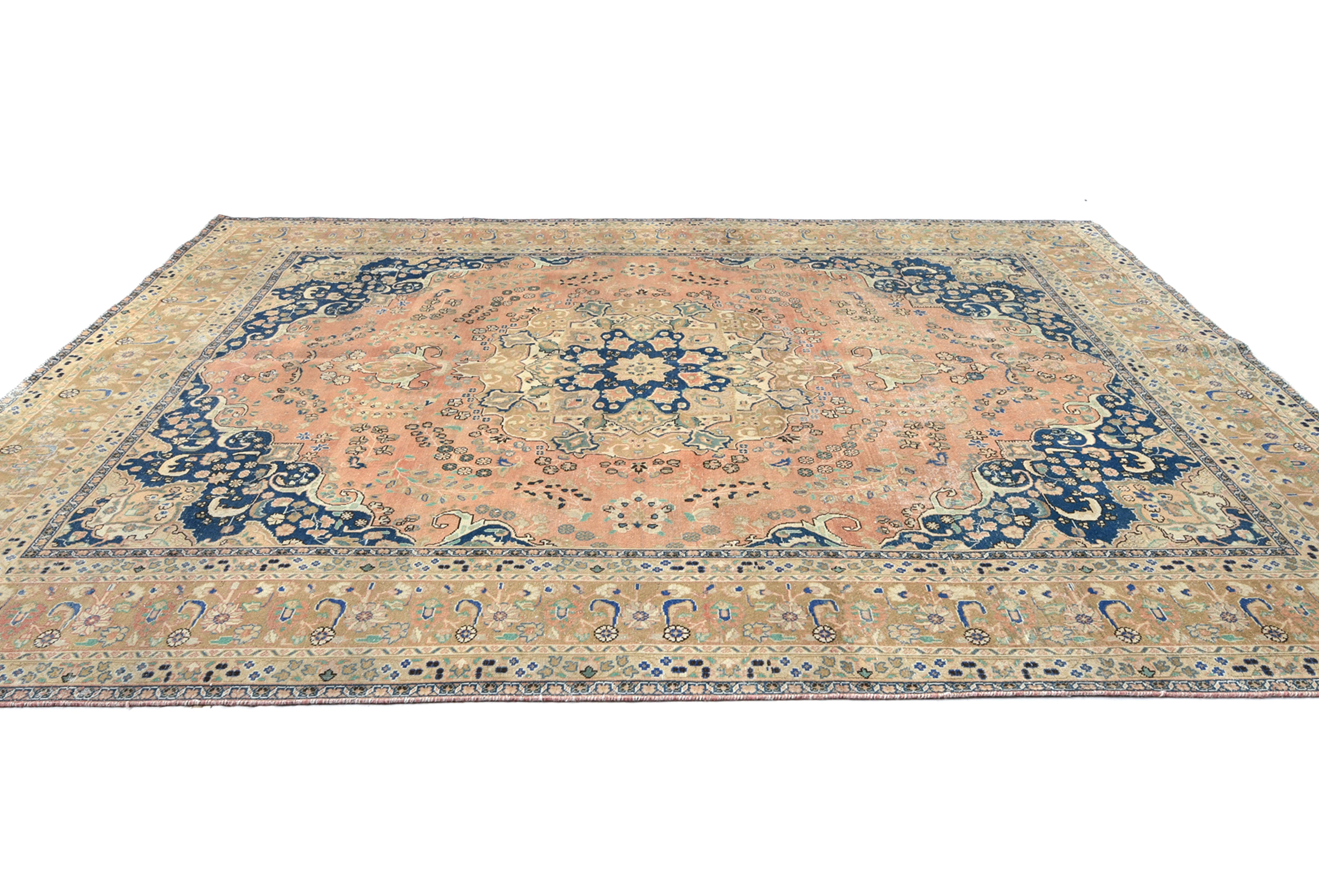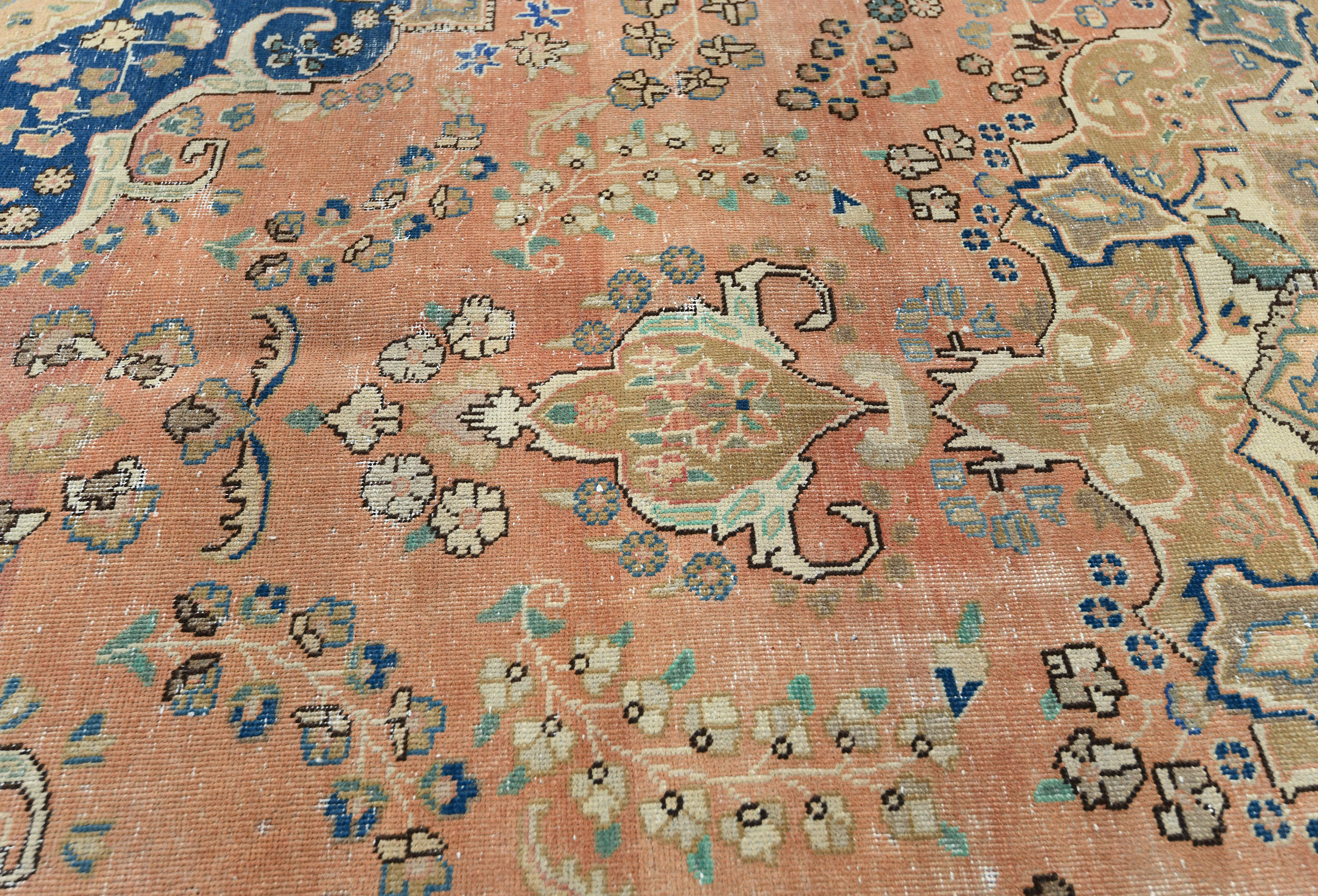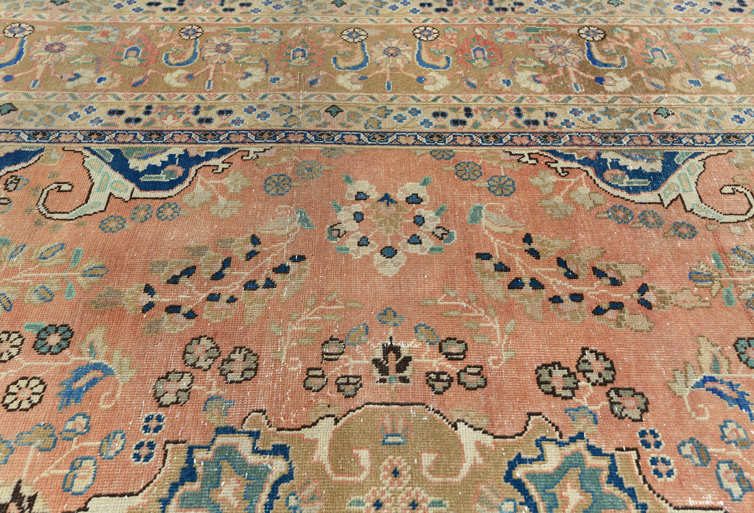 Semi Antique Muted Coral Red Floral 9X12 Distressed Vintage Oriental Rug