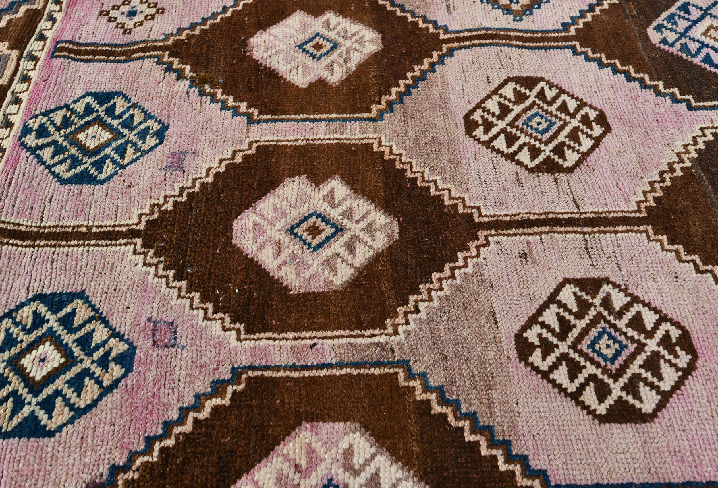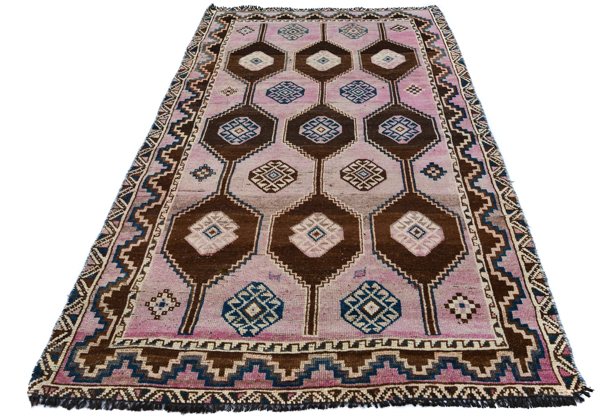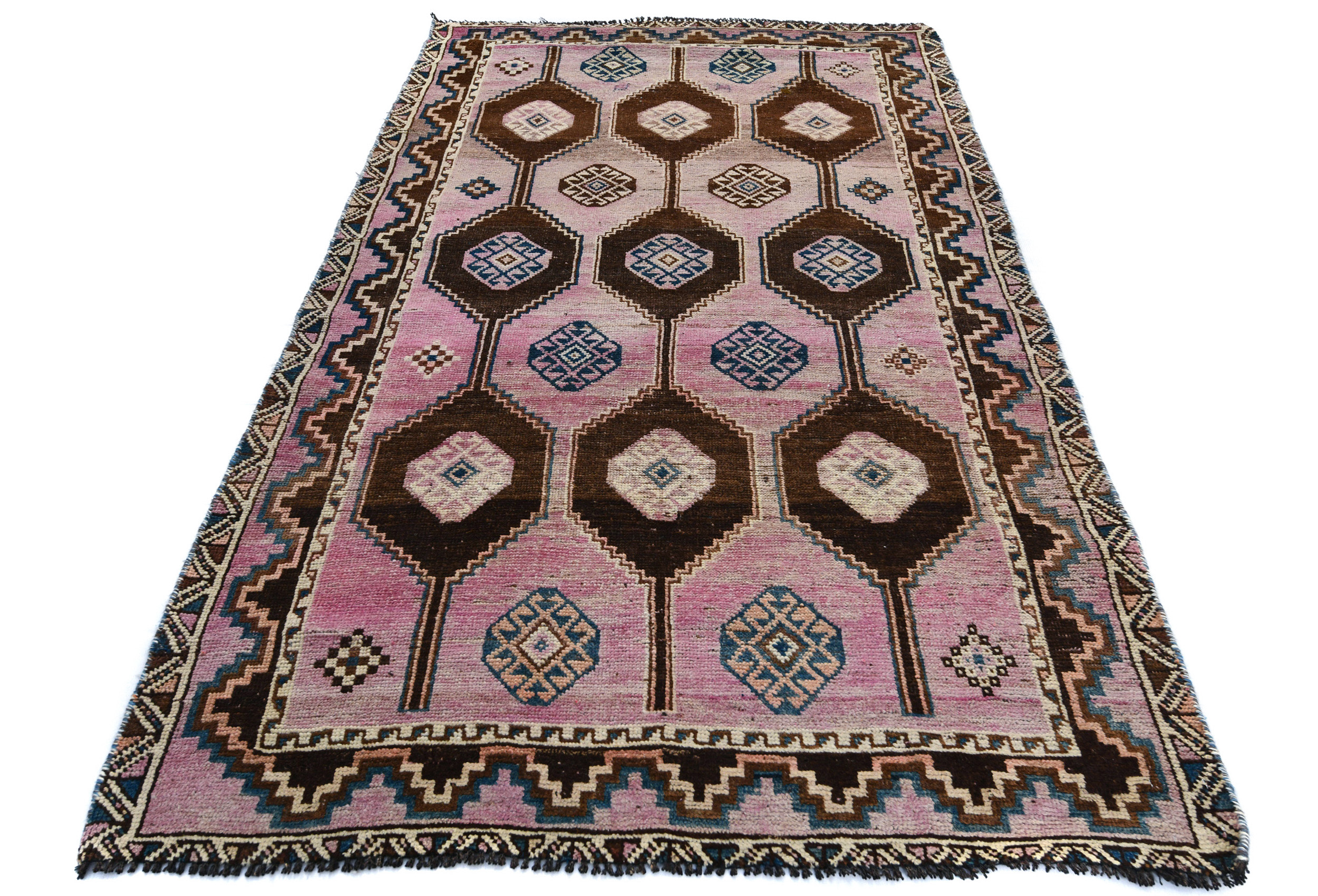 Handmade vintage 4X7 pink Oriental rug made with vegetable dyes (fine wool pile and cotton foundation), superior knot count, and alluring ancient designs. This Oriental rug never will go out of style and would be among your most valuable treasures.