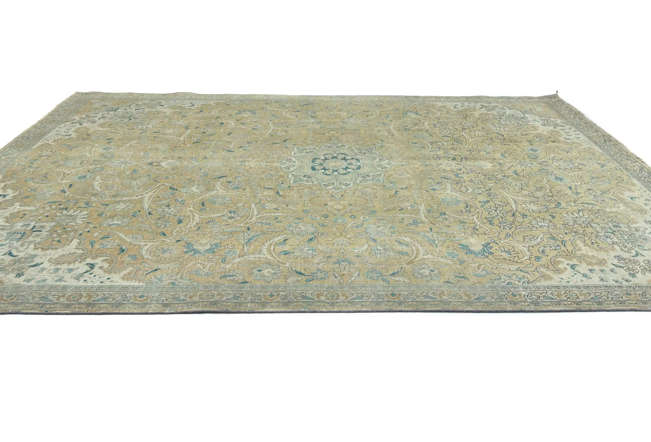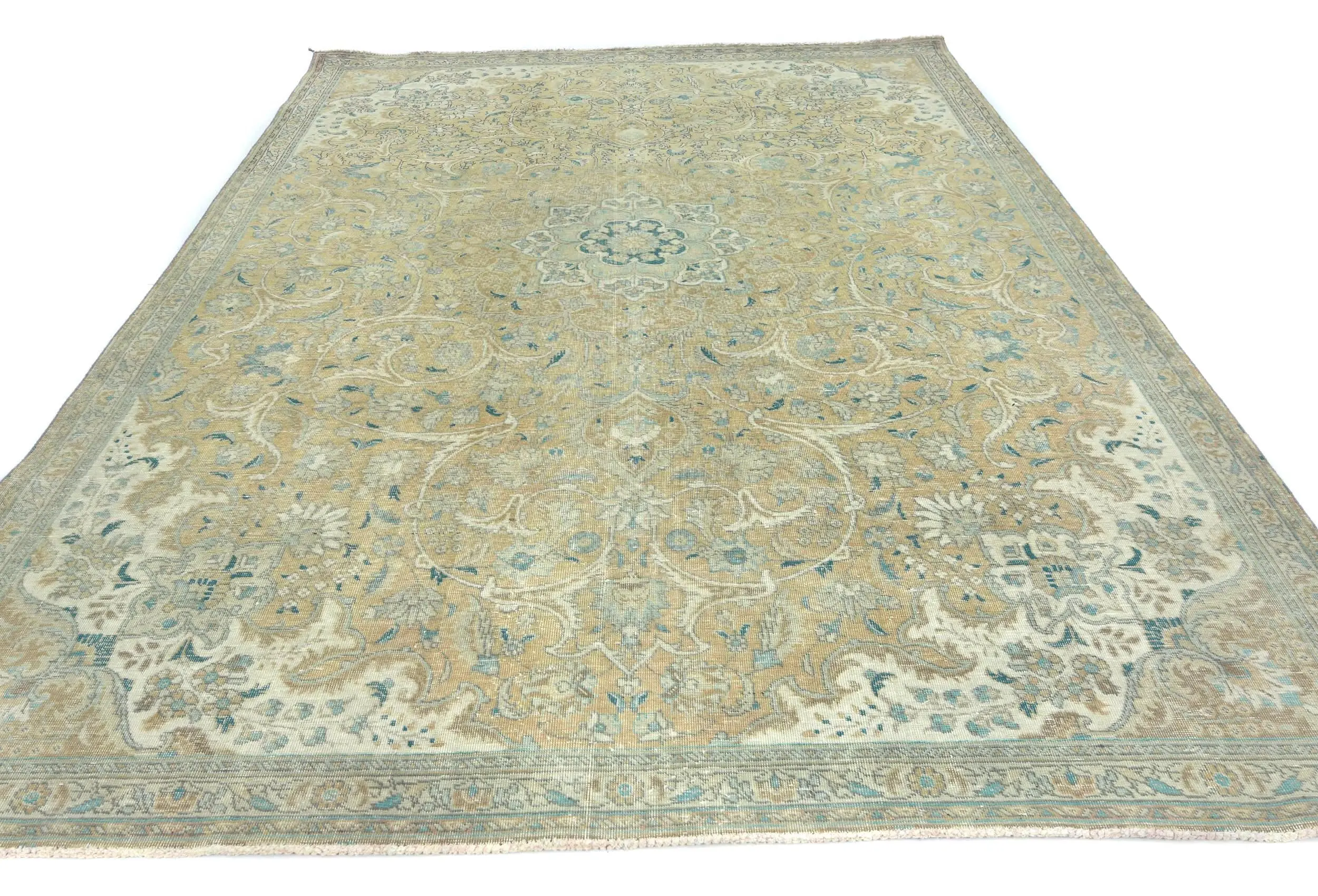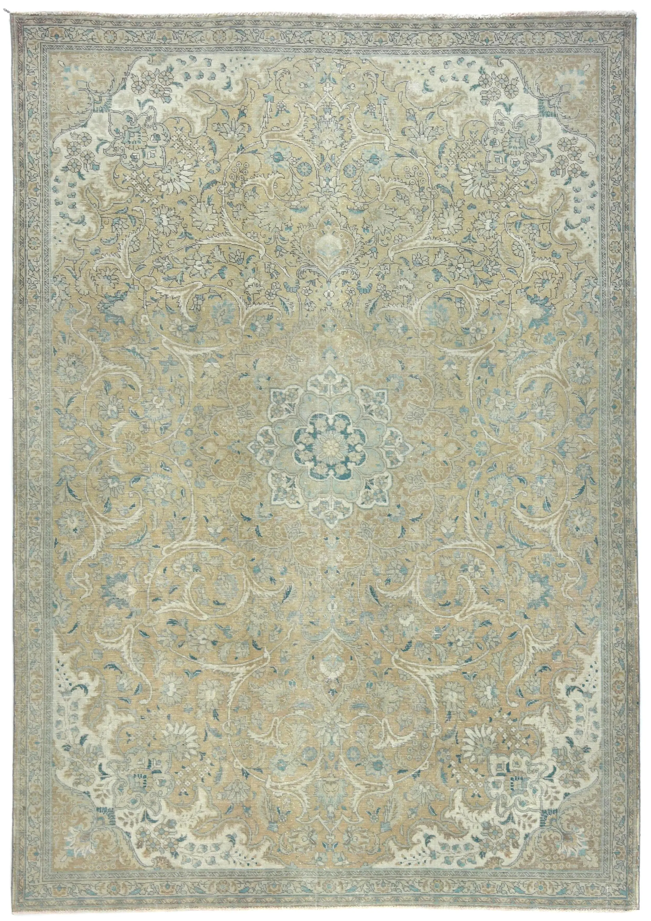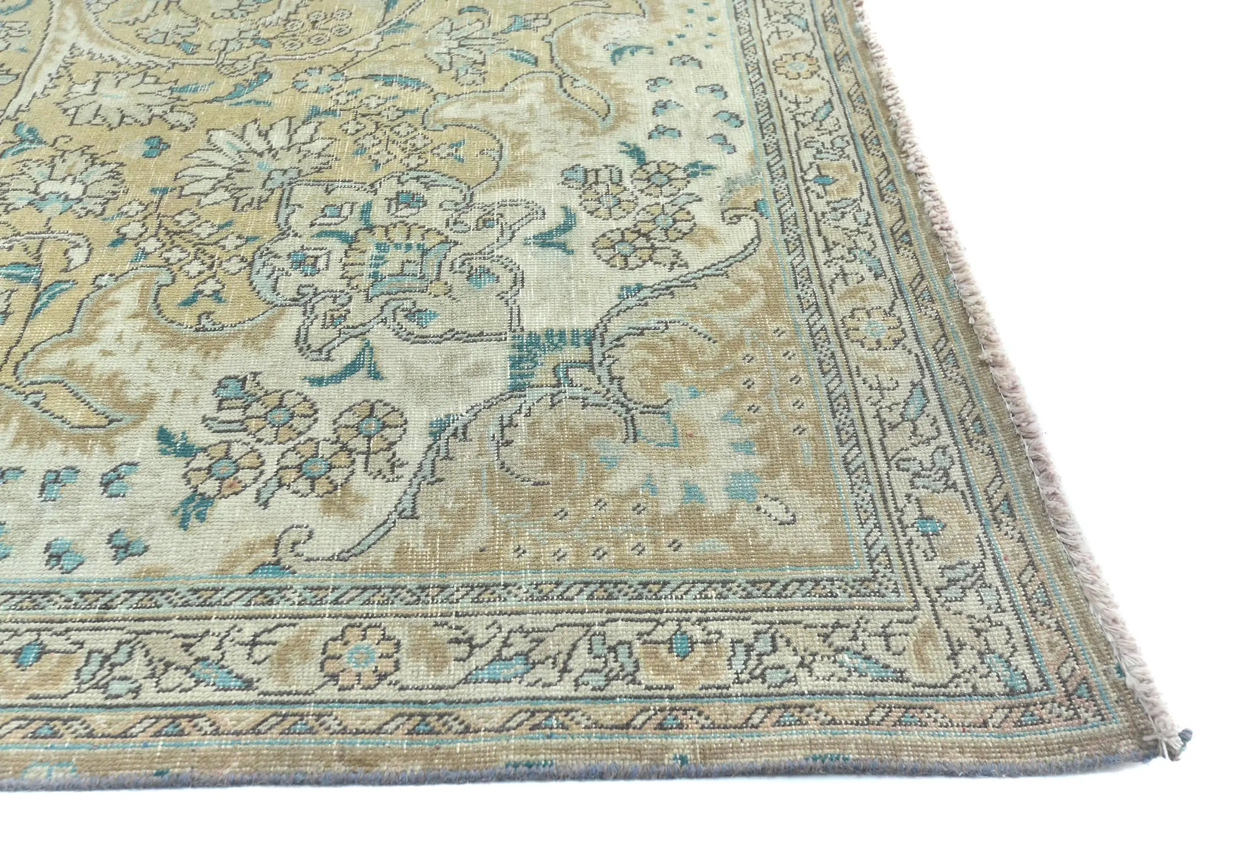 Semi Antique Muted Khaki Floral 7X10 Distressed Vintage Oriental Rug