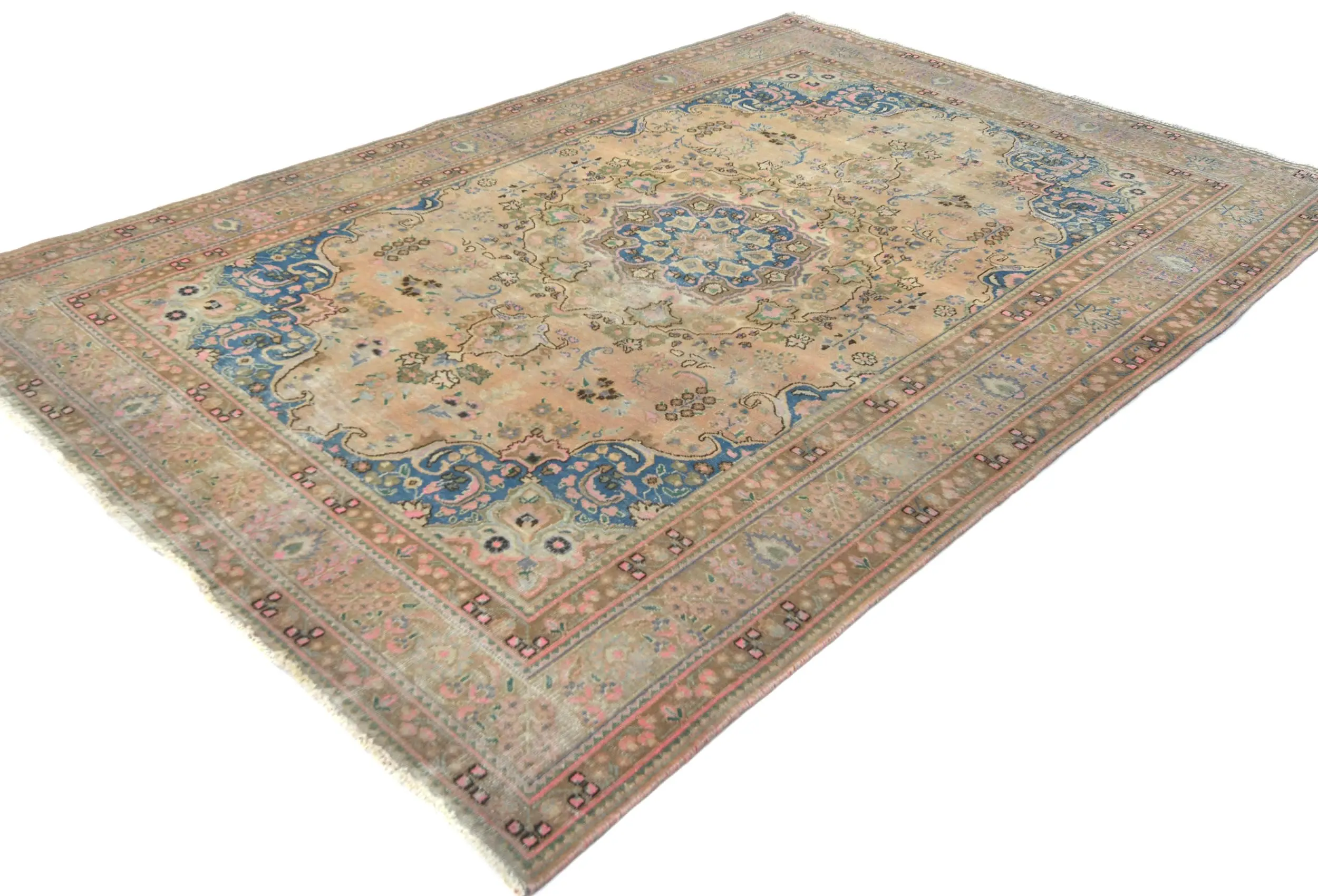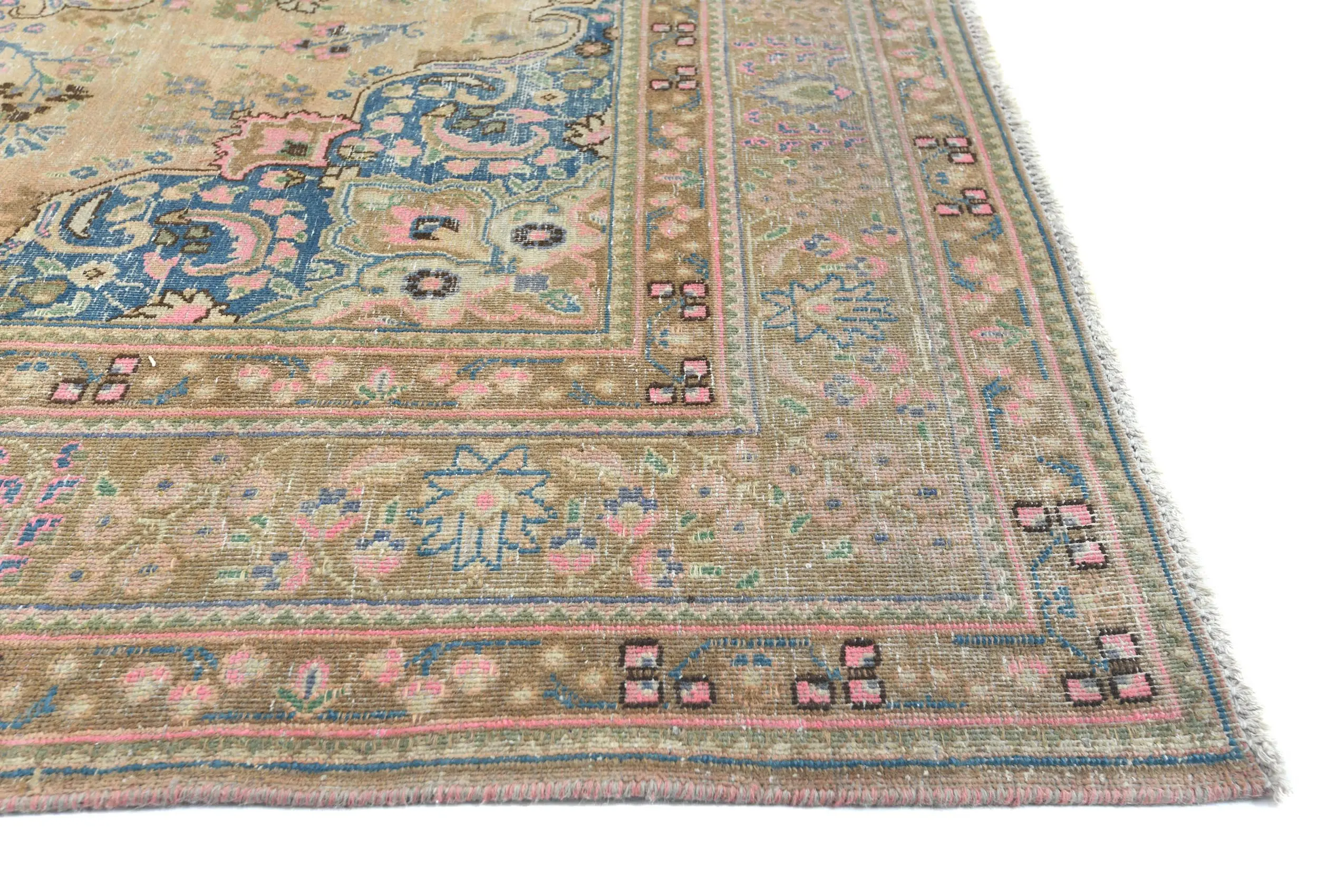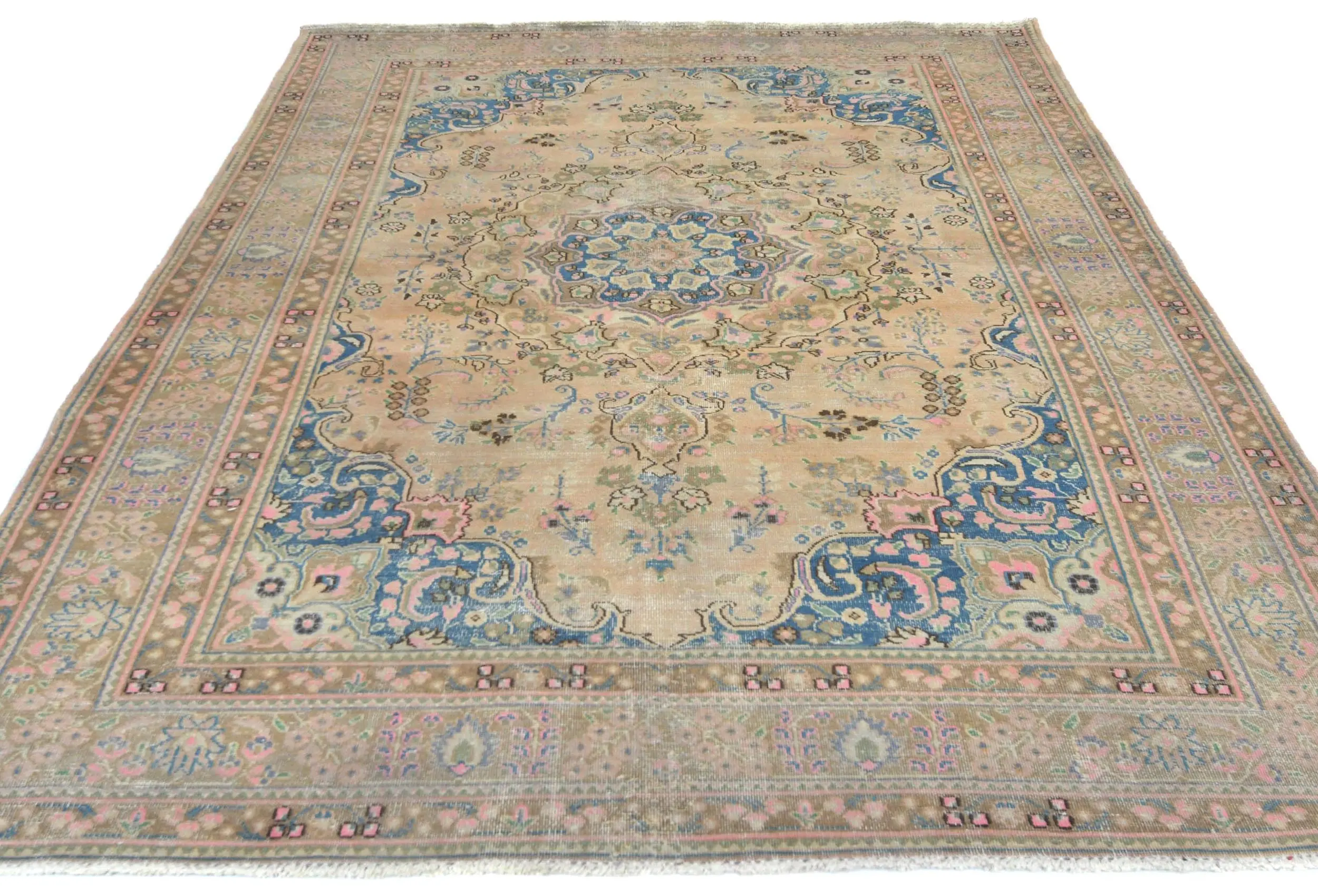 Semi Antique Muted Light Peach Floral 6X9 Distressed Vintage Oriental Rug