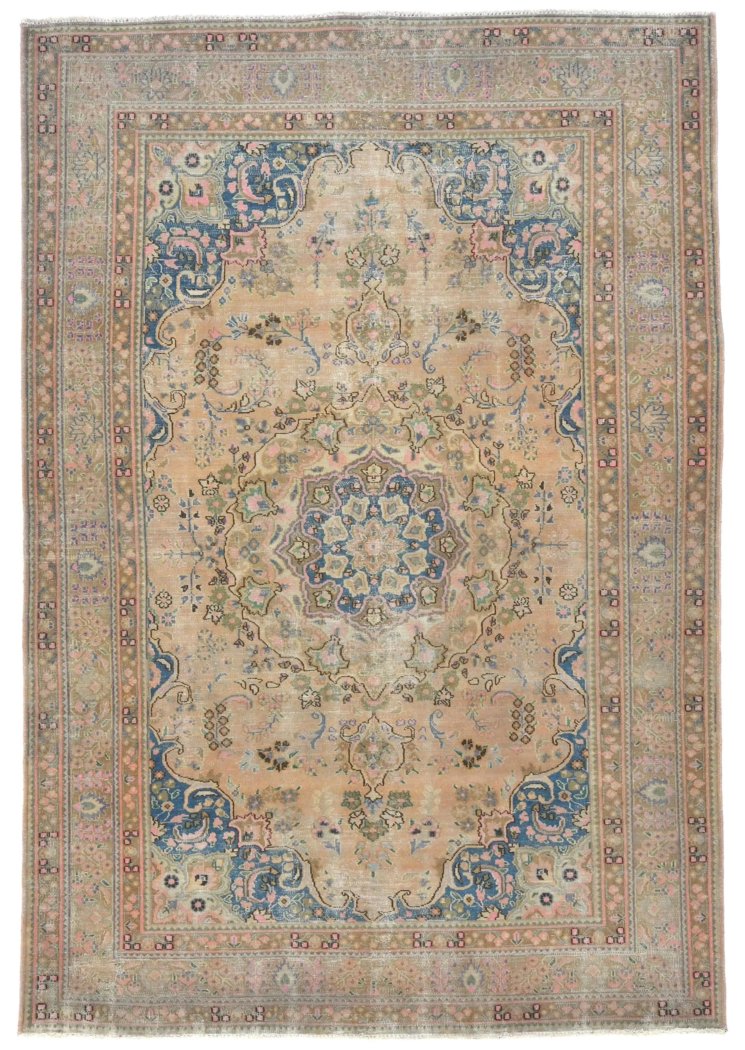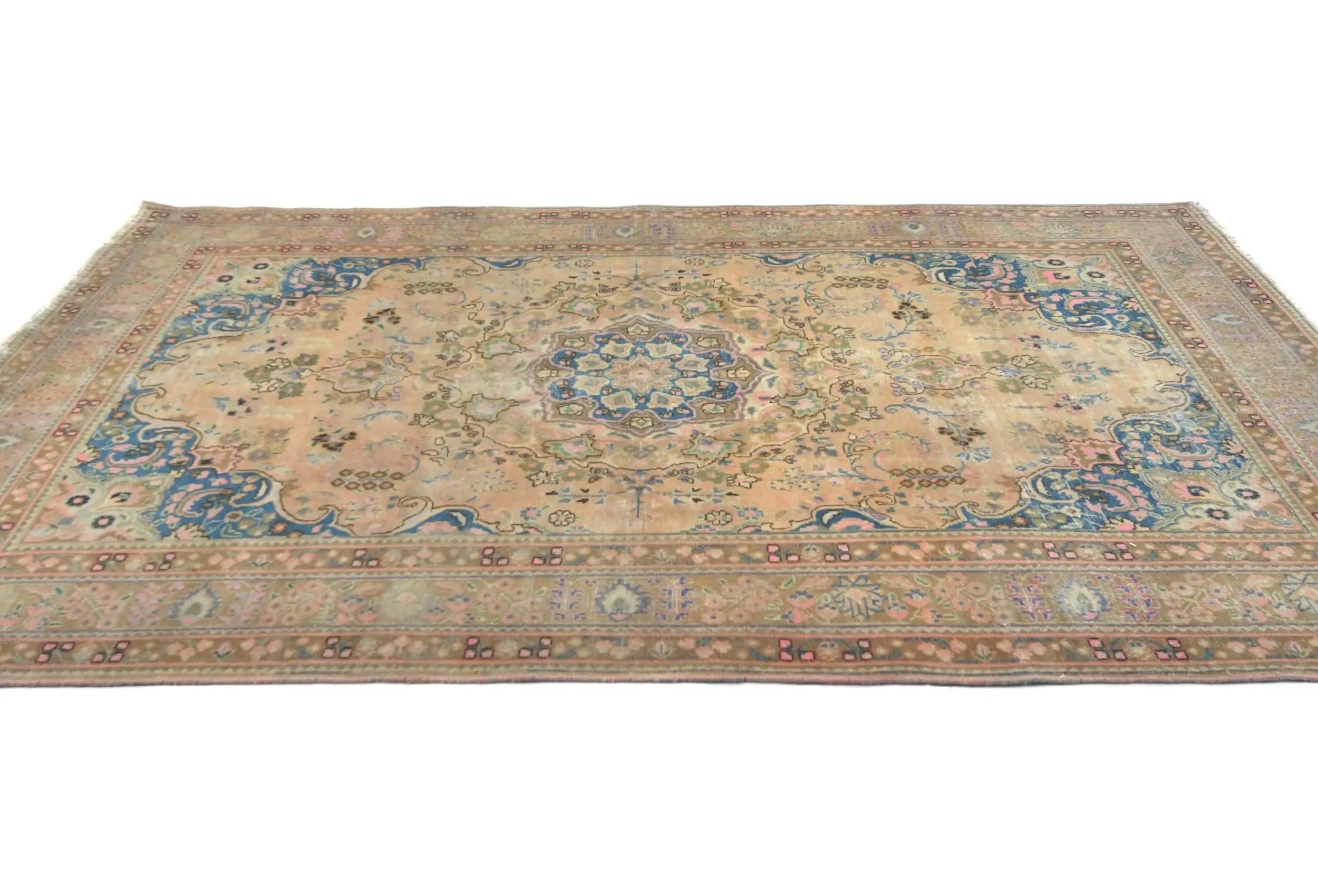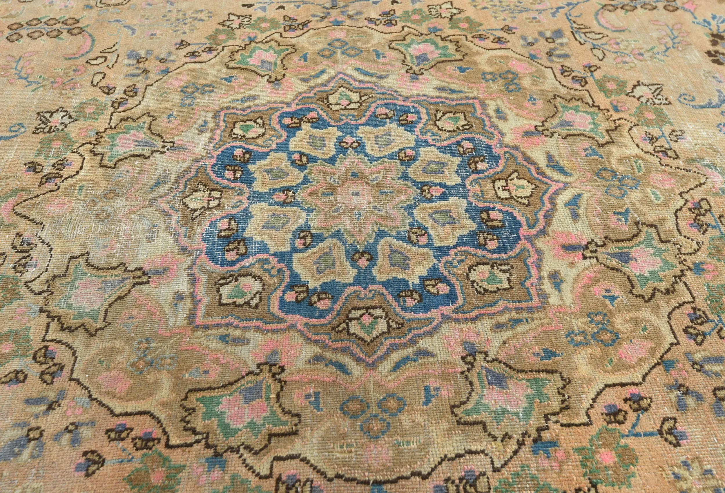 Semi Antique Muted Light Peach Floral 6X9 Distressed Vintage Oriental Rug