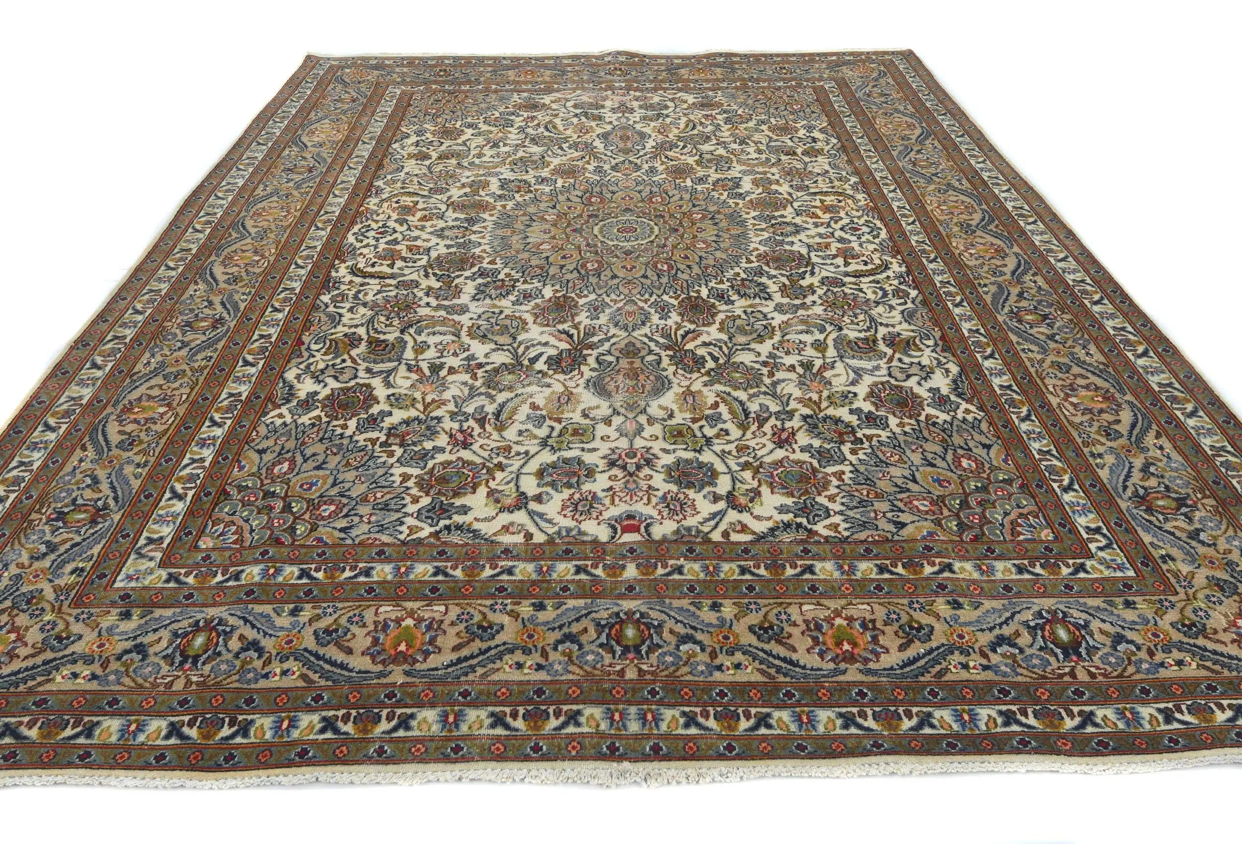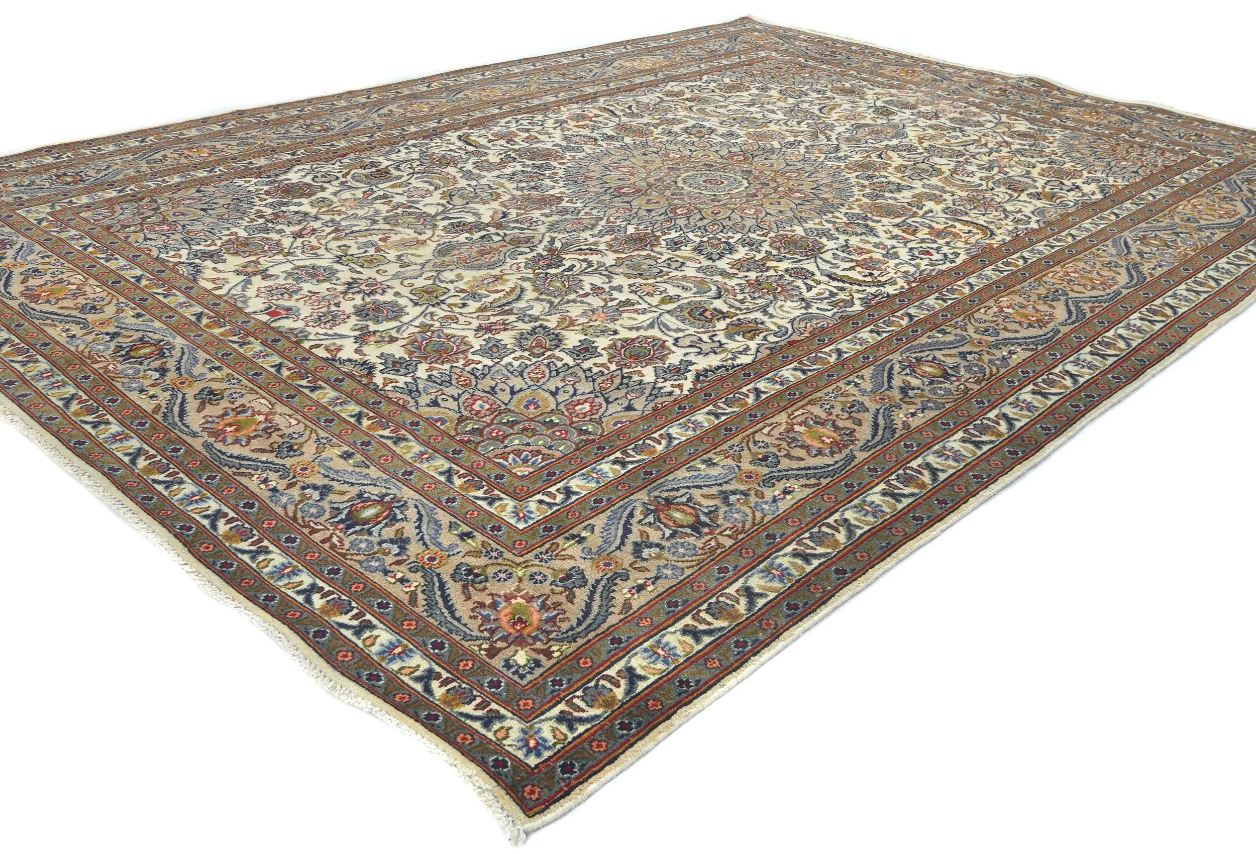 Handmade semi antique 8X11 Light Peach Oriental rug made with vegetable dyes (fine wool pile and cotton foundation), superior knot count, and alluring ancient designs. This Oriental rug never will go out of style and would be among your most valuable treasures.