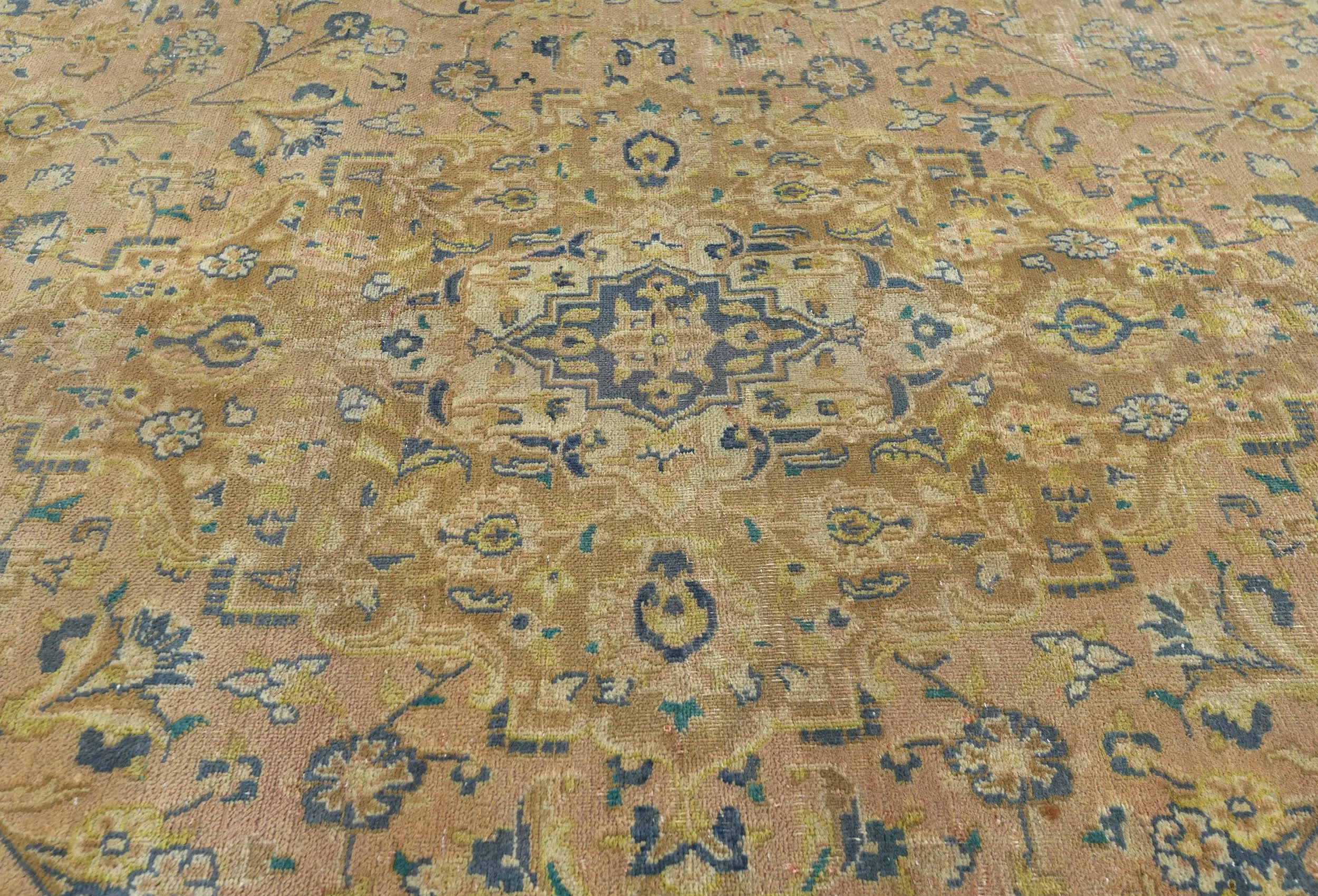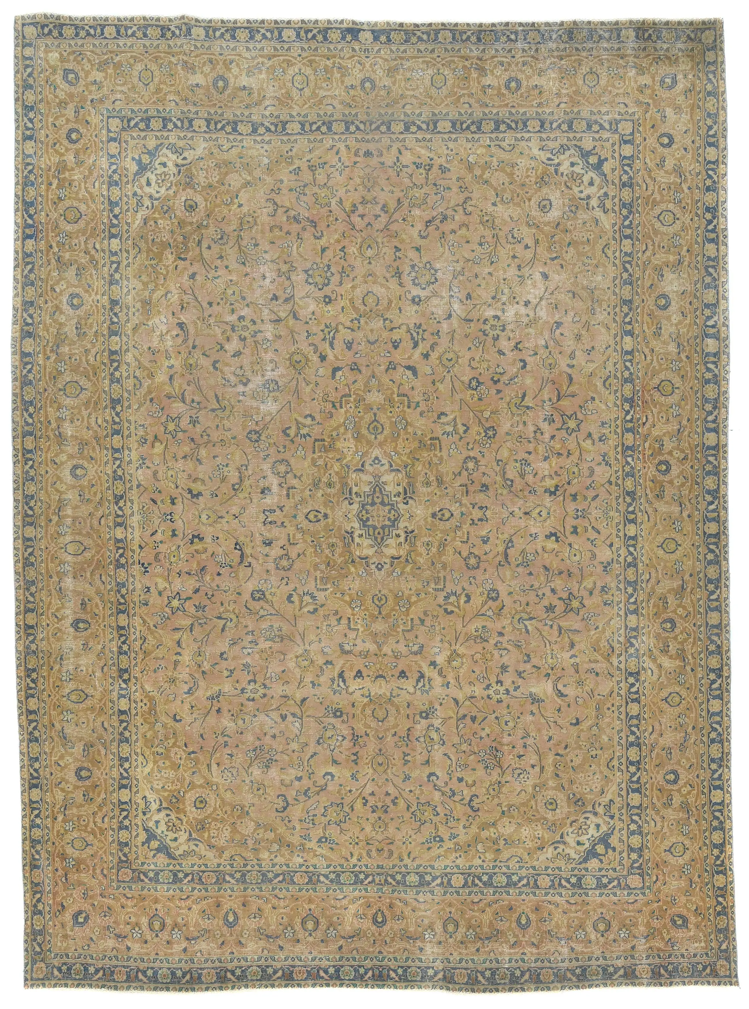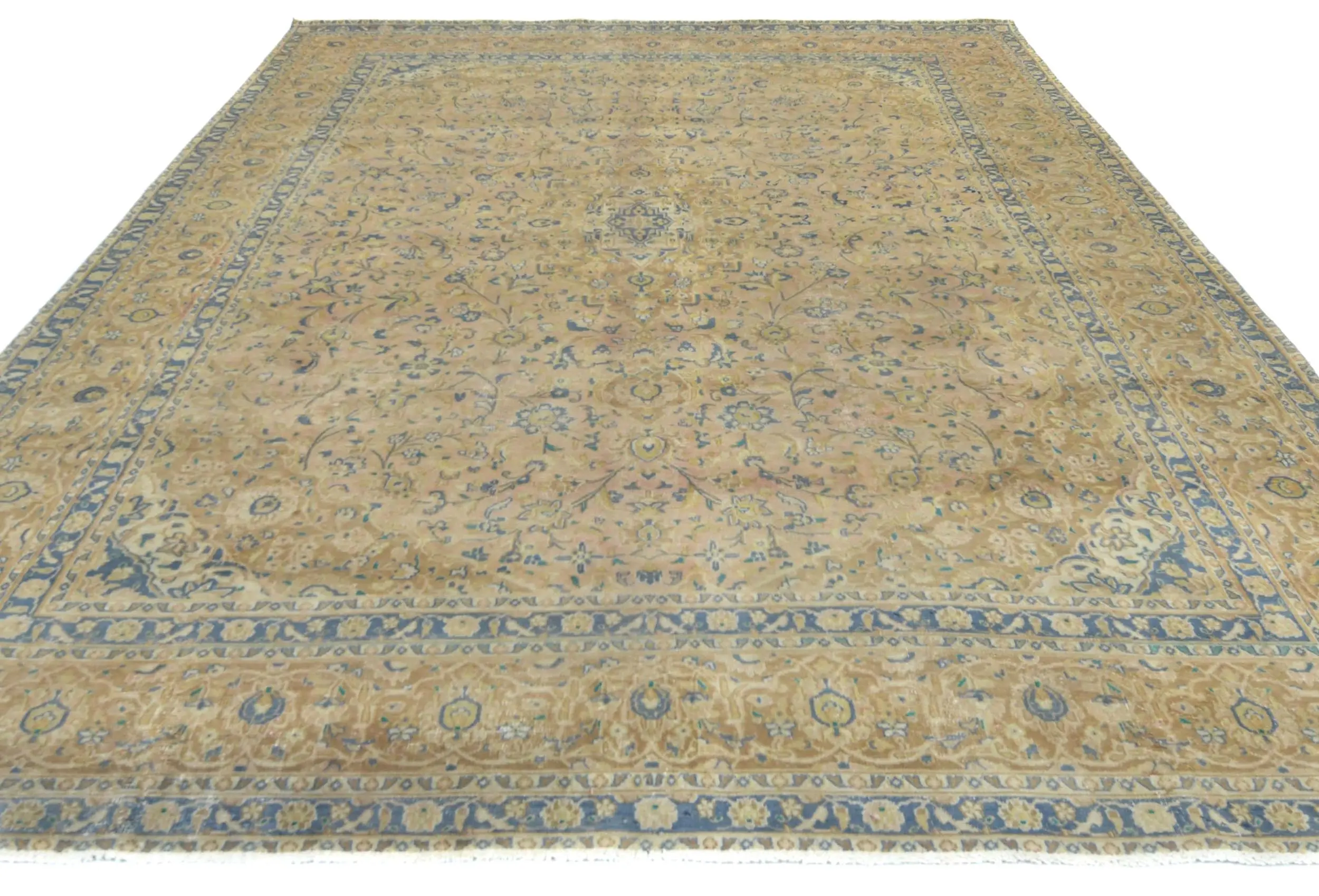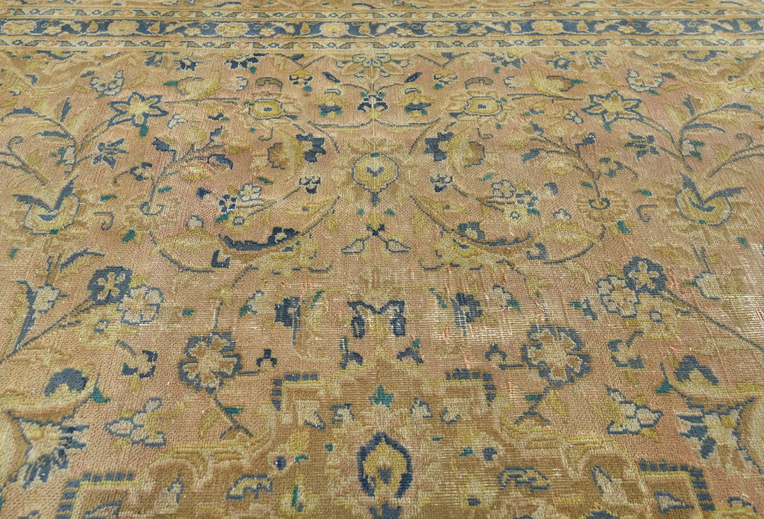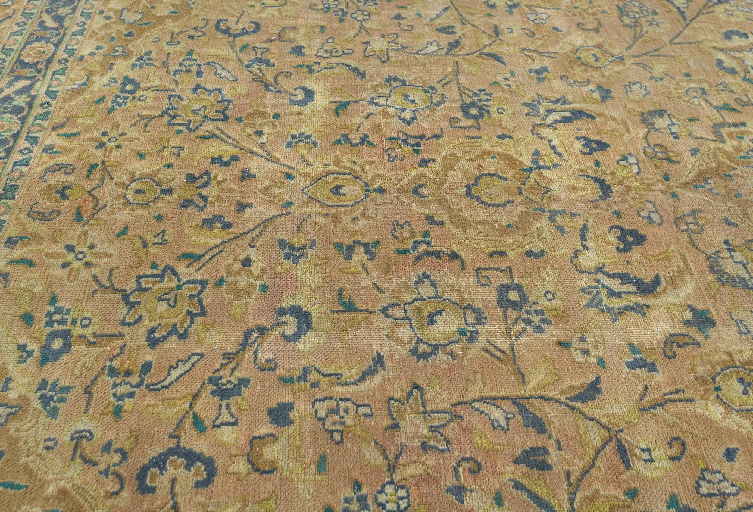 Handmade semi antique 9X12 Light Peach Oriental rug made with vegetable dyes (fine wool pile and cotton foundation), superior knot count, and alluring ancient designs. This Oriental rug never will go out of style and would be among your most valuable treasures.