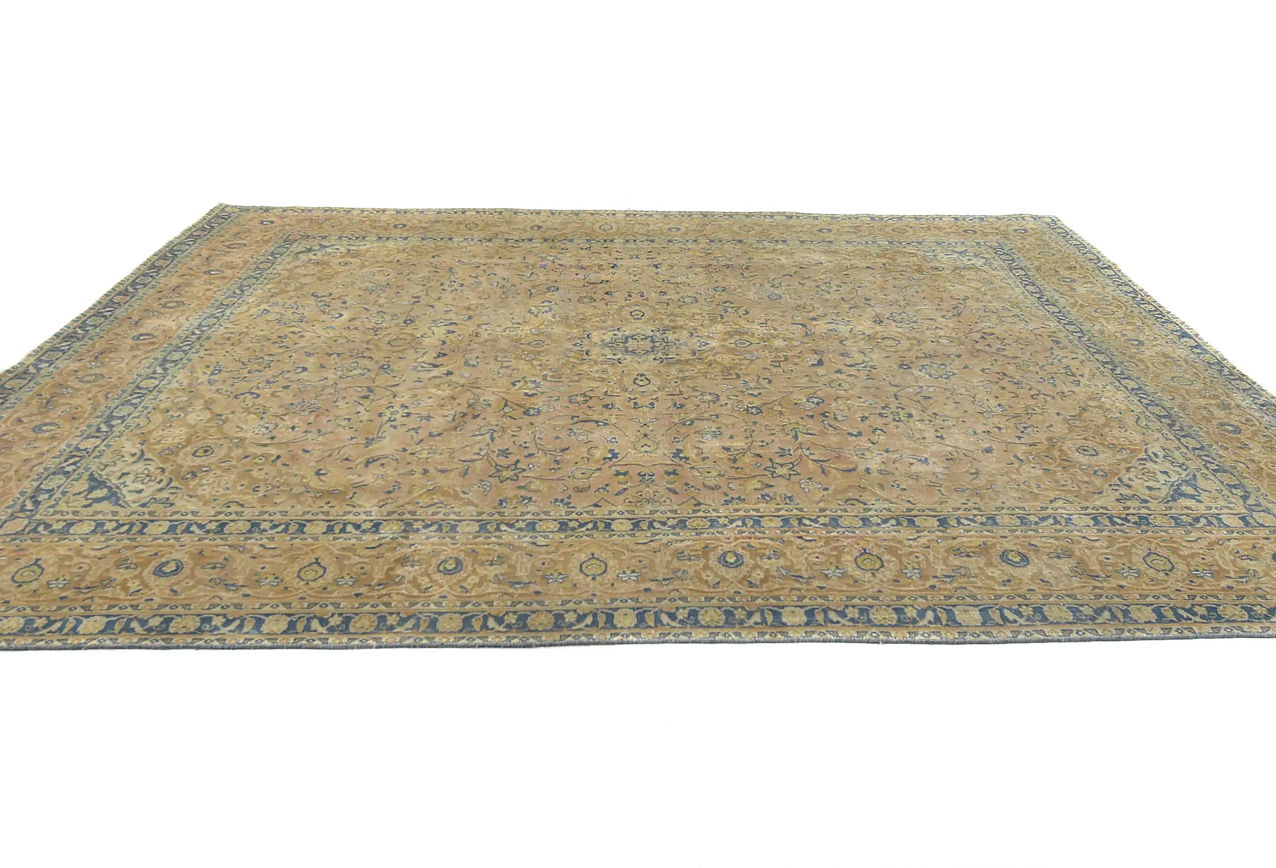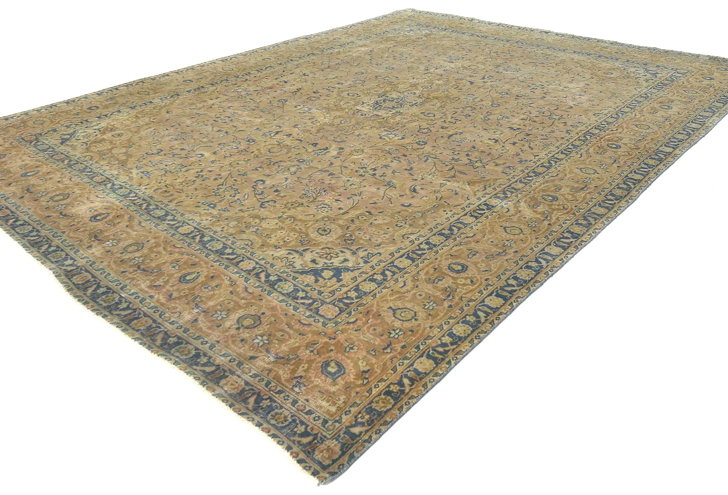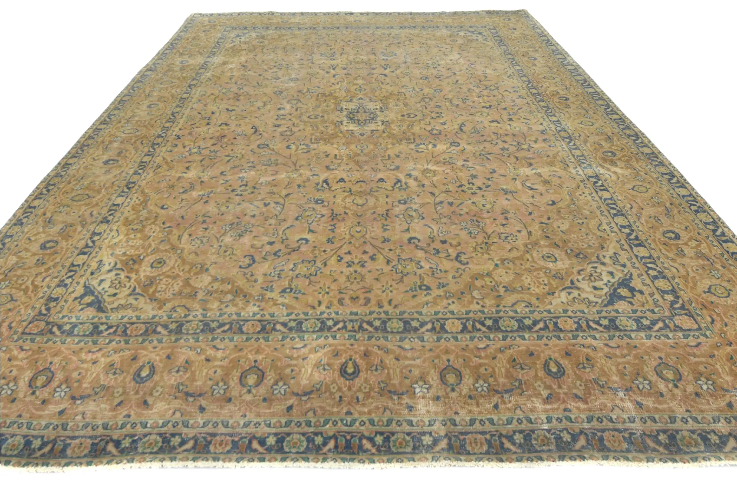 Semi Antique Muted Light Peach Floral 9X12 Distressed Vintage Oriental Rug