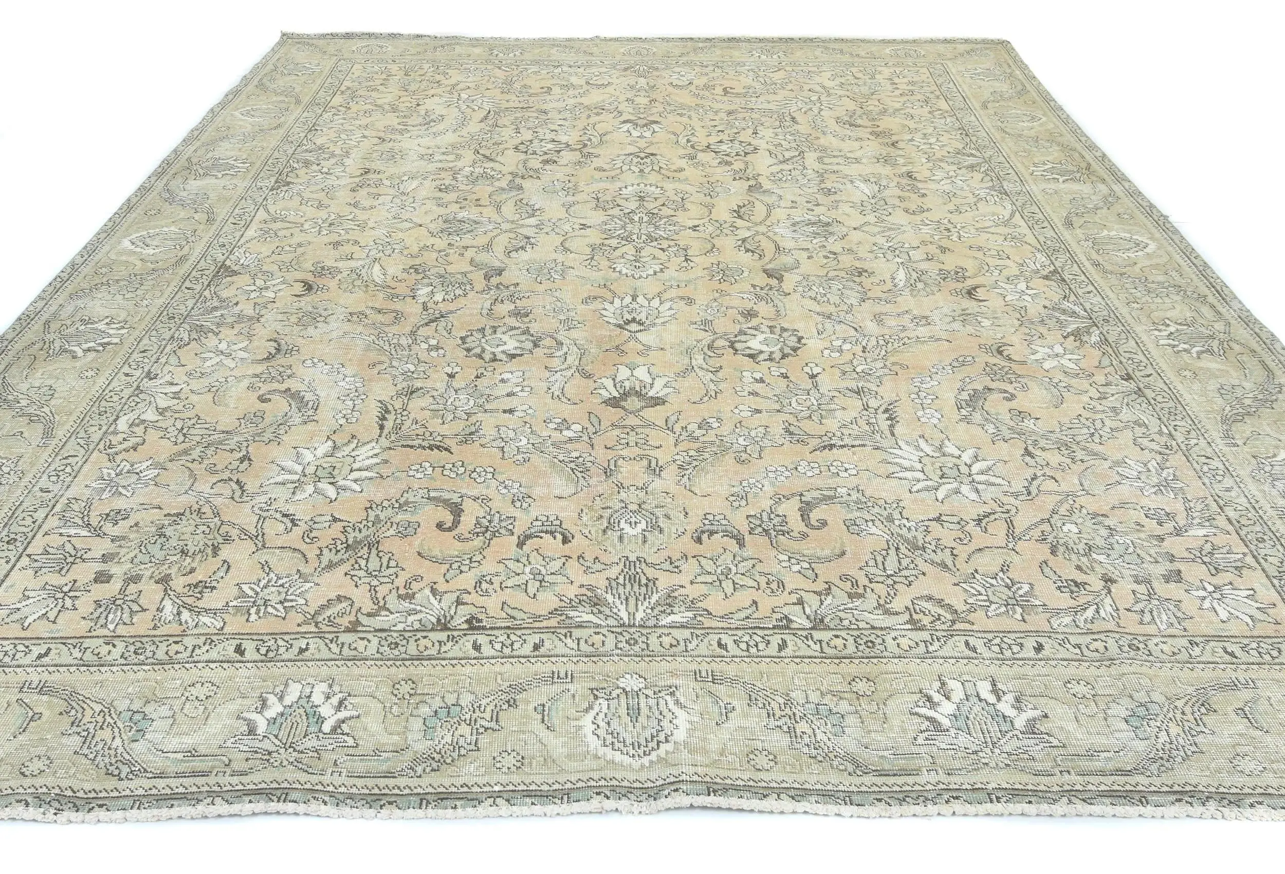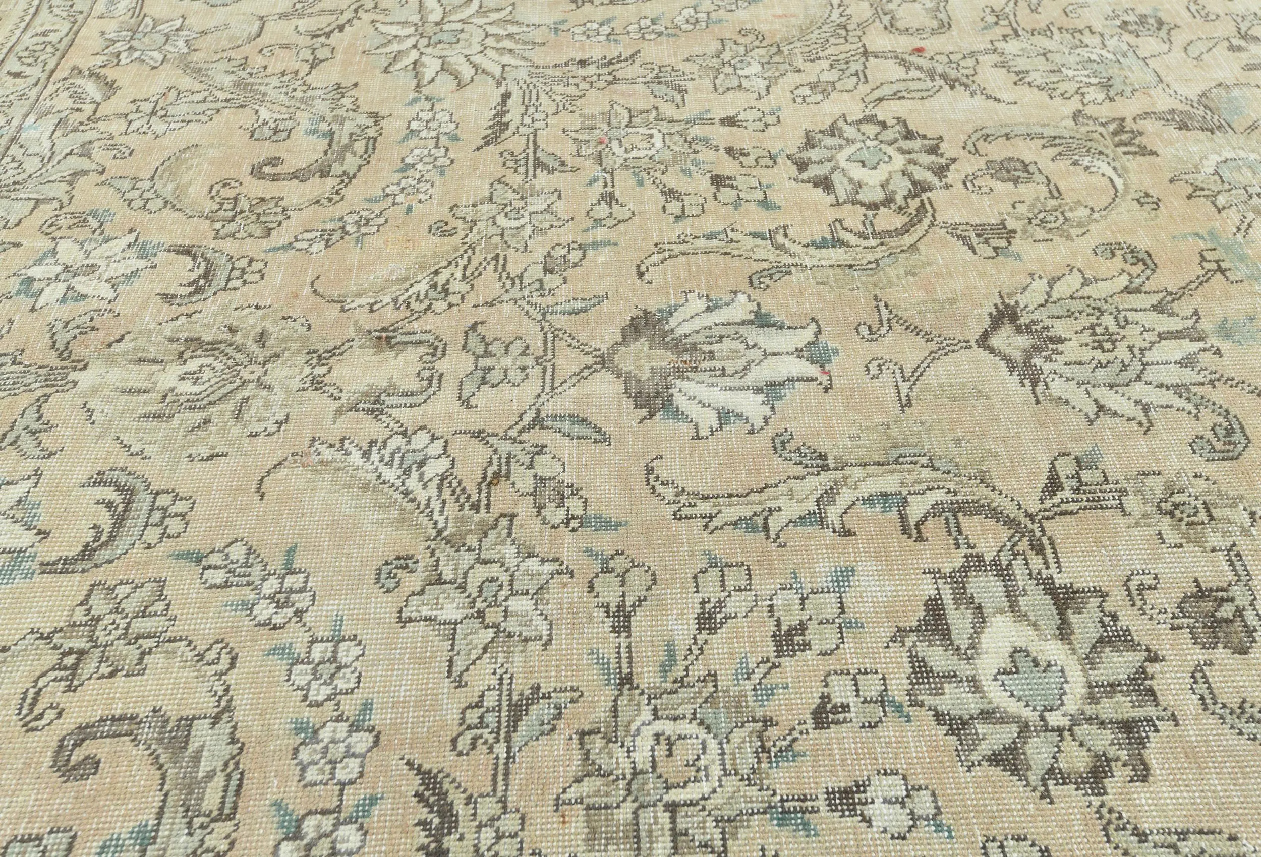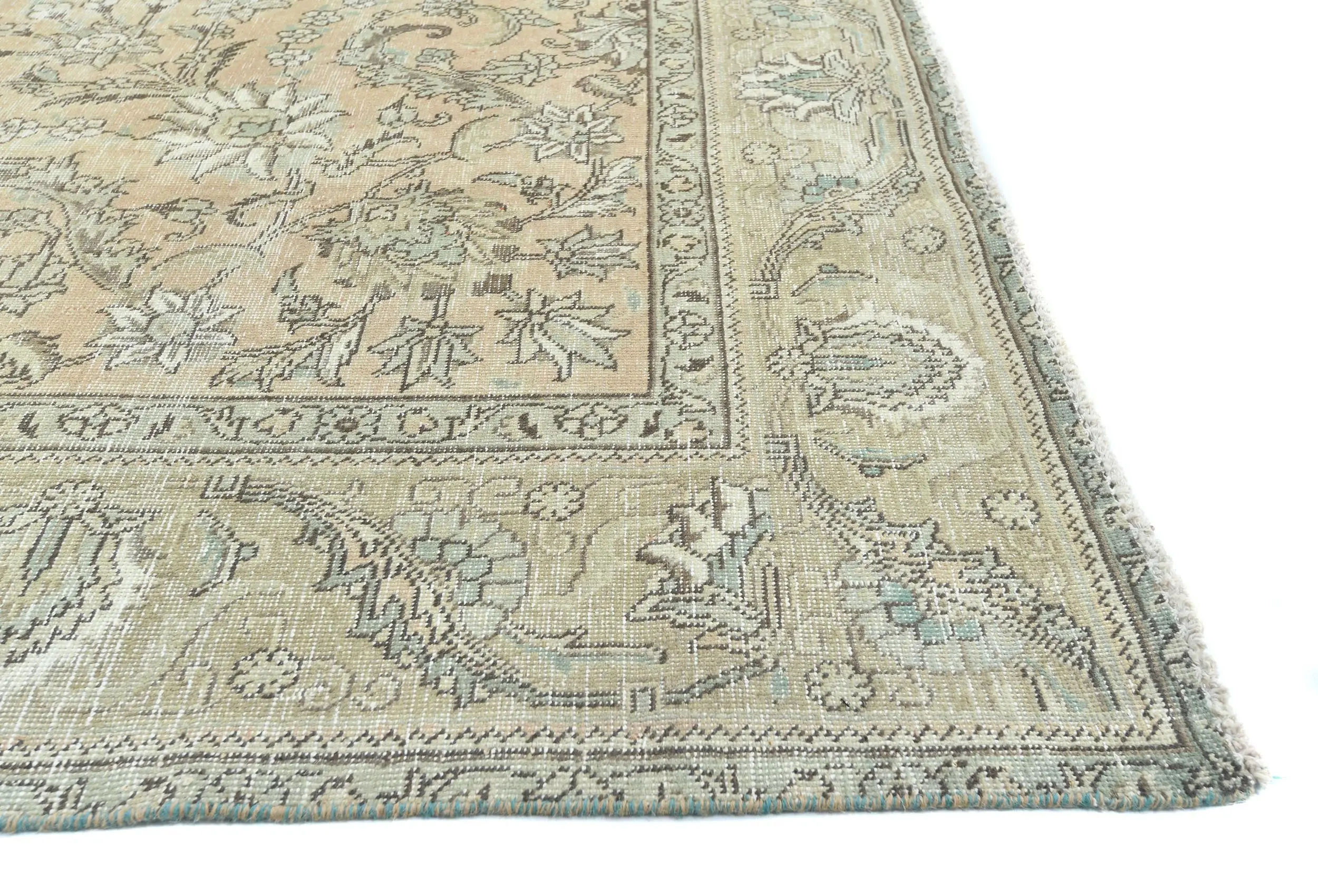 Semi Antique Muted Light Peach Floral 9X12 Distressed Vintage Oriental Rug