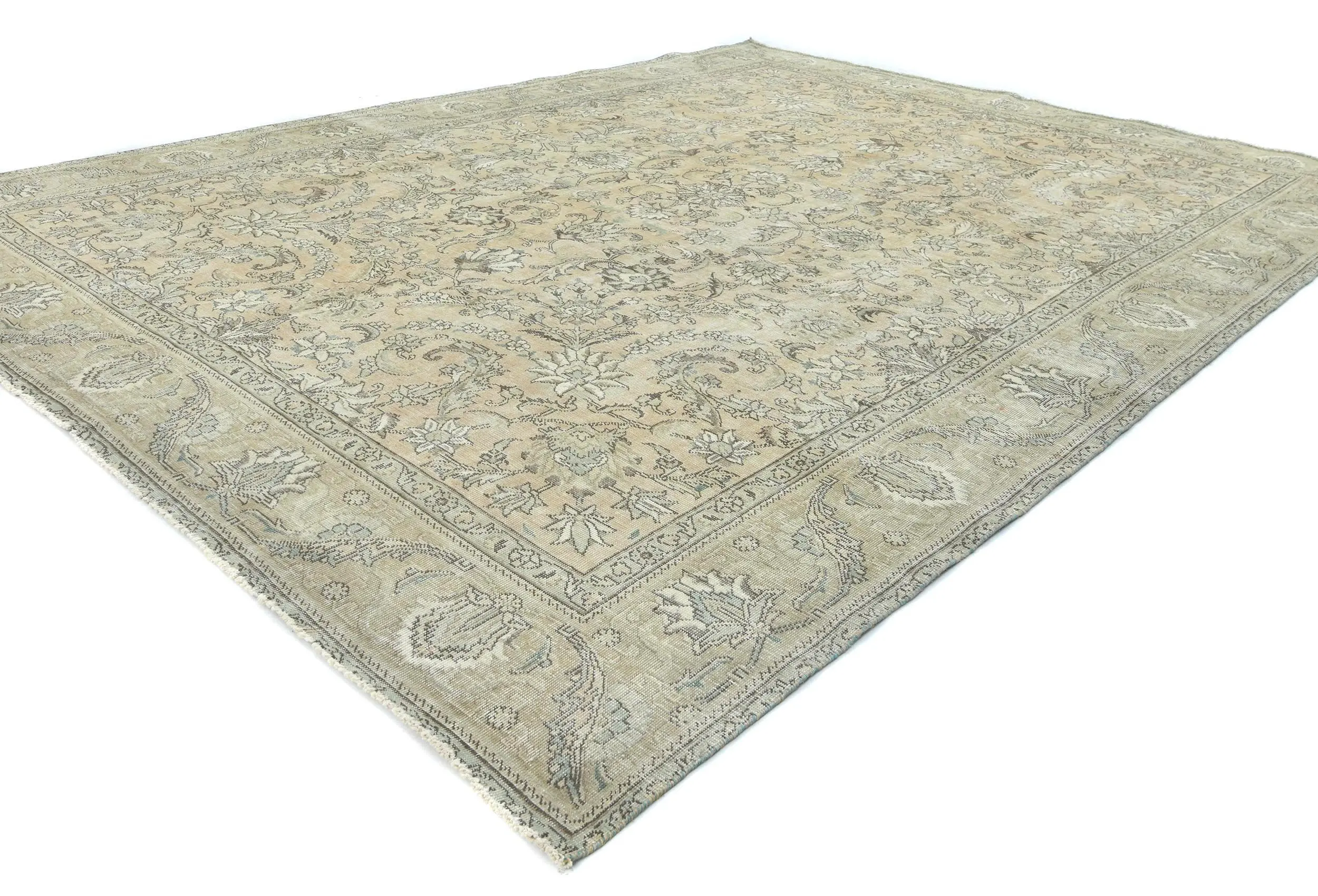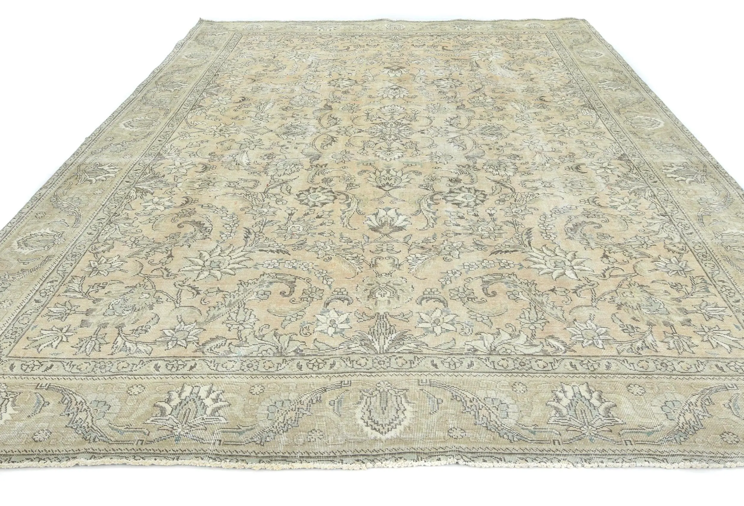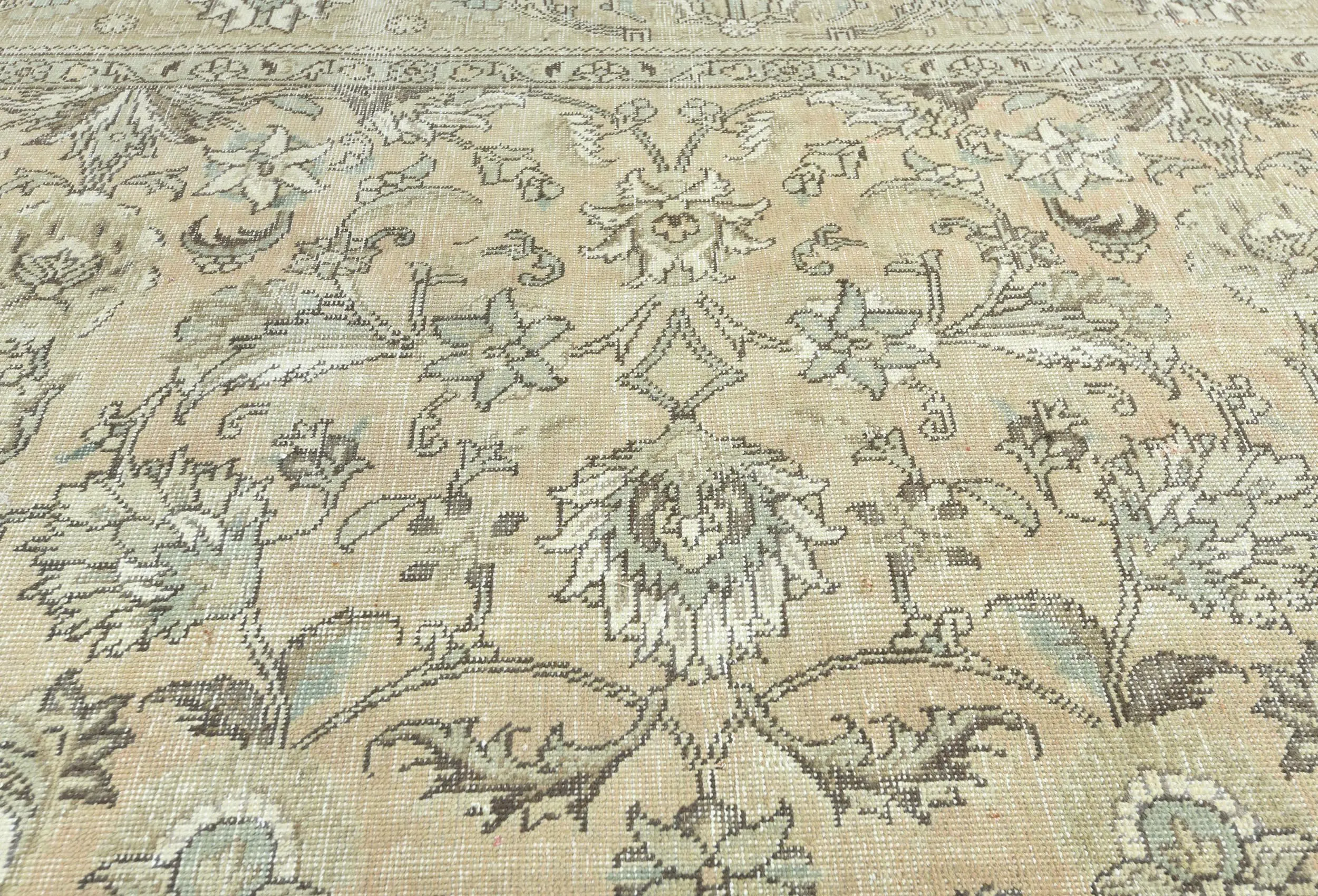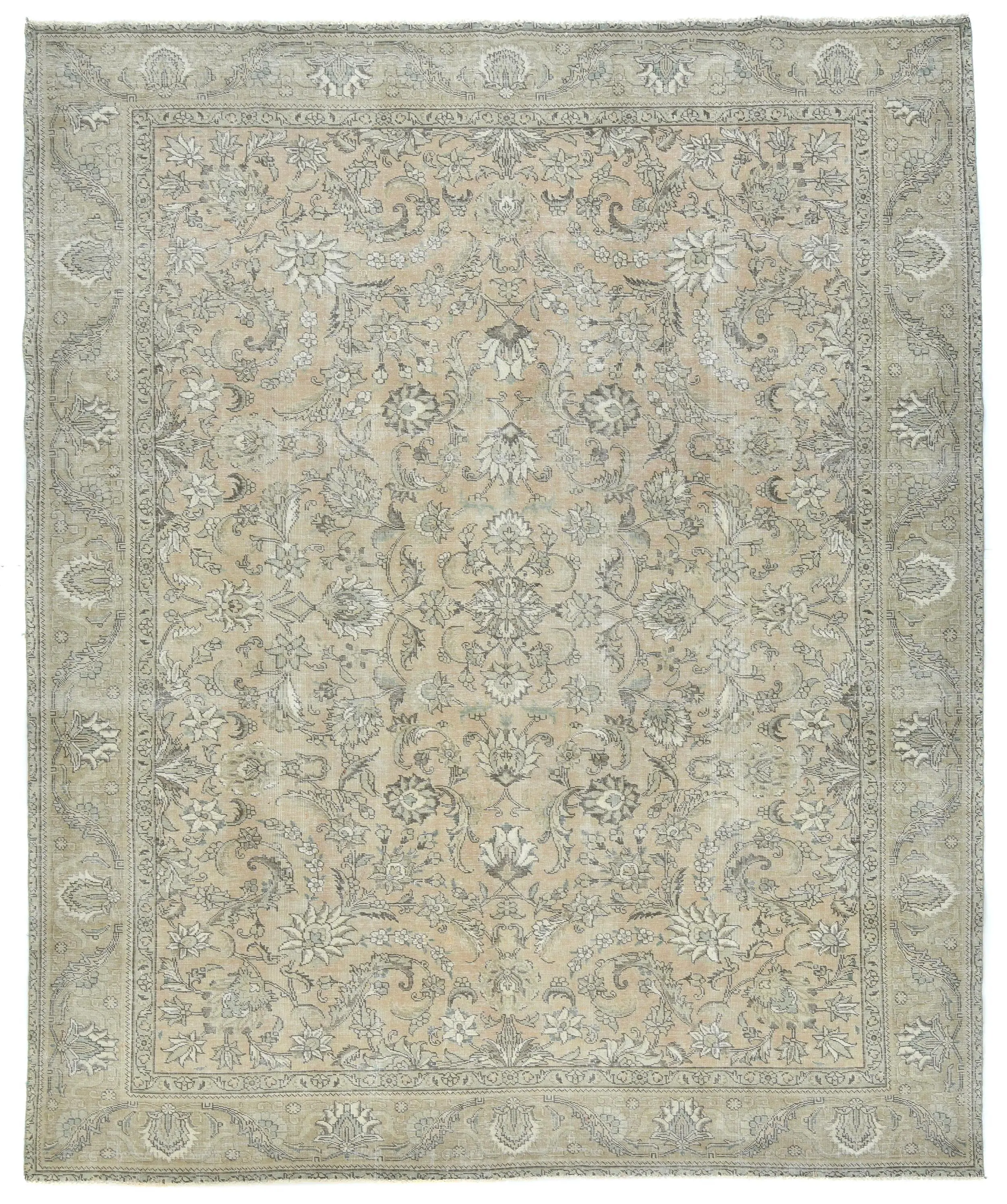 Semi Antique Muted Light Peach Floral 9X12 Distressed Vintage Oriental Rug