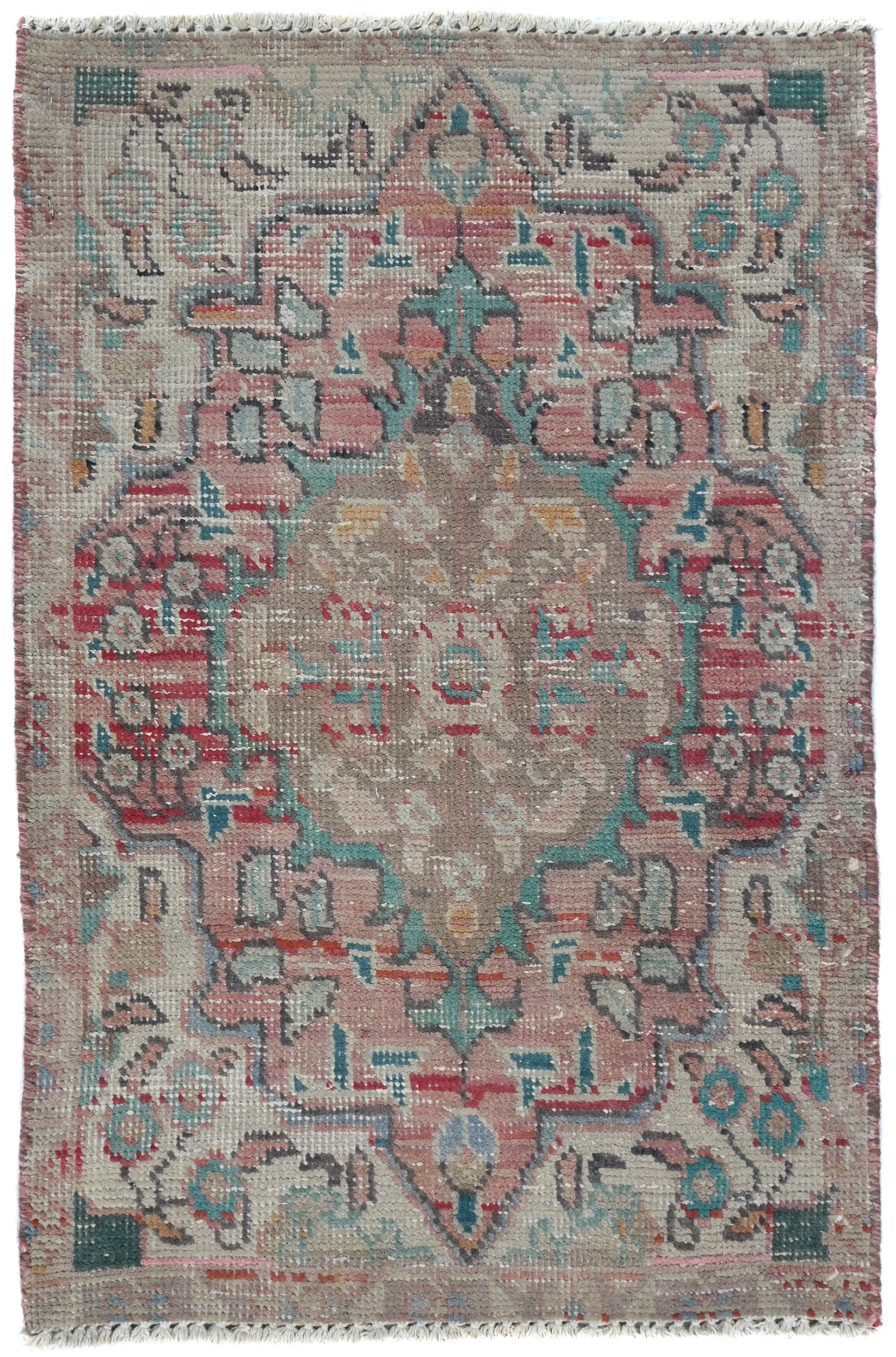 This authentic 1'8X2'7 muted light red vintage Oriental rug was finely knotted by the hands of weavers influenced by a variety of amazing artistic designs, to recreate the aged look of the exceptional piece with a richness of color and embellished background field. What set this tribal Oriental area rug from the others are the material and dye used (wool pile and cotton foundation), knot count, antique designs, fantastic grades, and its regional historical connection: it has deep roots, from the story of the people who produced it to the meaning of the symbols and colors displayed across its canvas that have been praised for centuries. This home décor carpet will be completely cozy and inviting that never will go out of style! Also, this Oriental rug would be among your most valuable treasures, it is a great investment that increase in value over time, and it will last a lifetime because was woven with high-quality, all-natural wool; it won’t rip, tear, or shed. Eco-friendly, opulent yet affordable; this Persian rug will give you an extra pop of character to help define your home environment with luxury and warmth that will capture the eyes and attention of your audience (homeowners, designers, decorators, family and friends). RT-7762