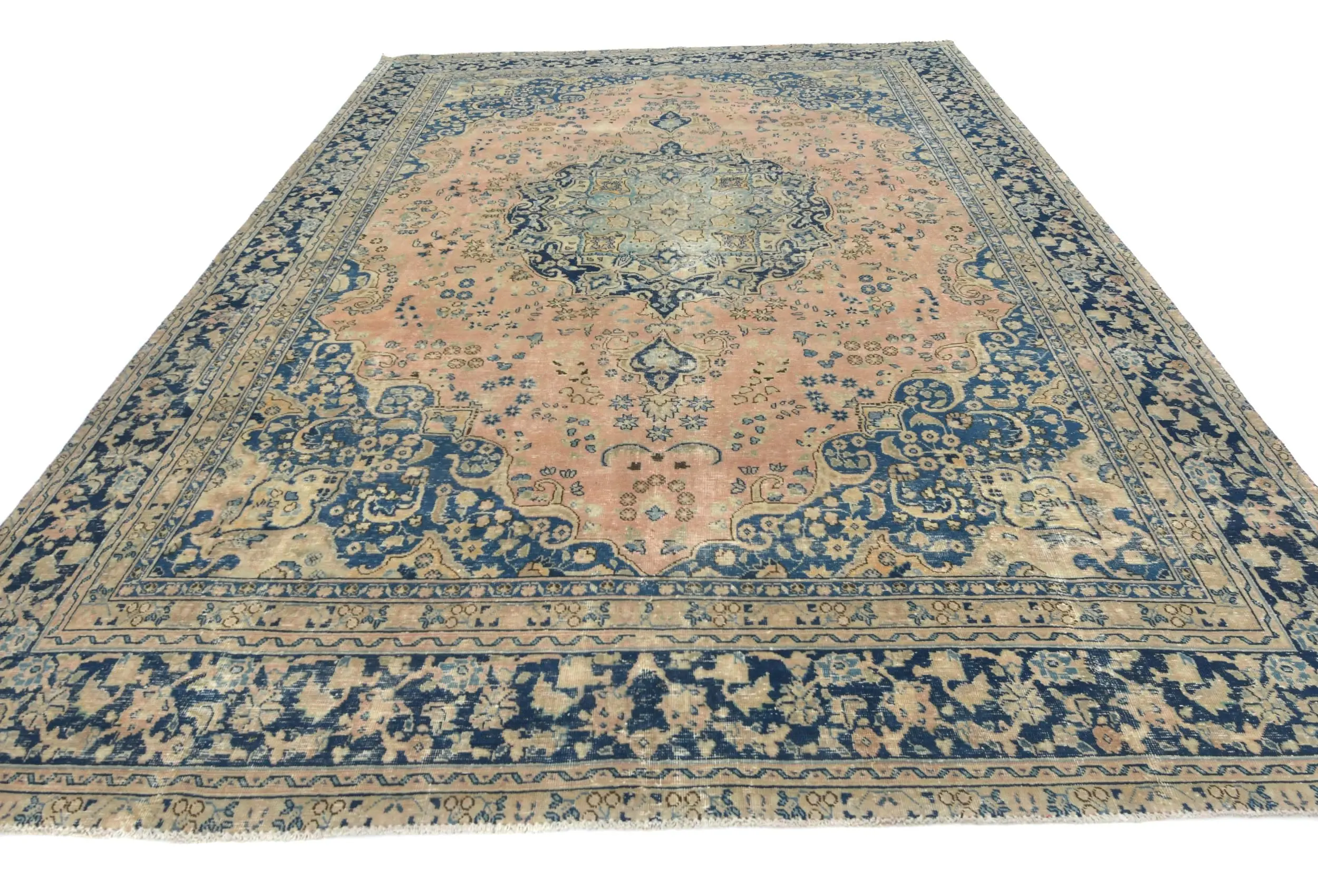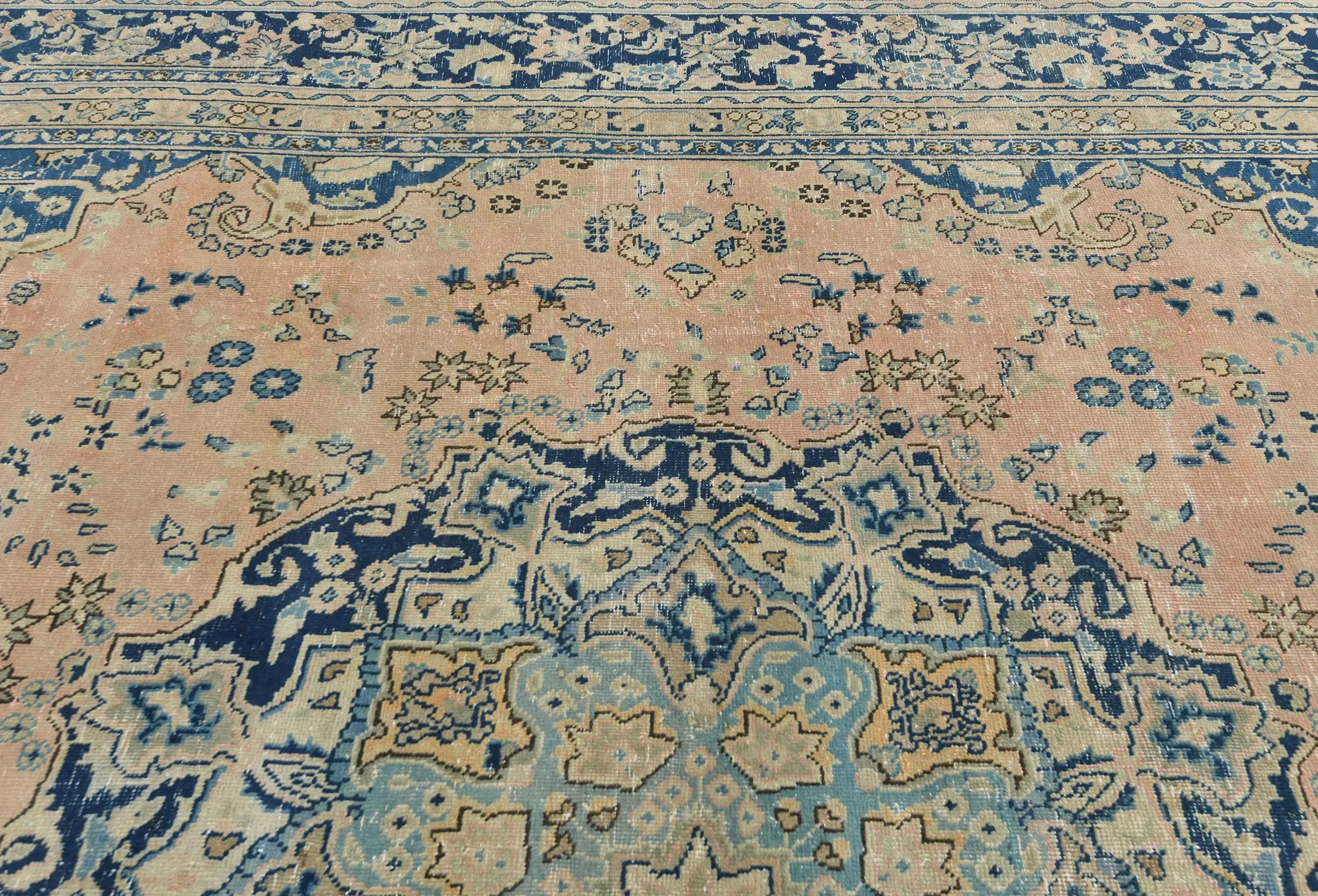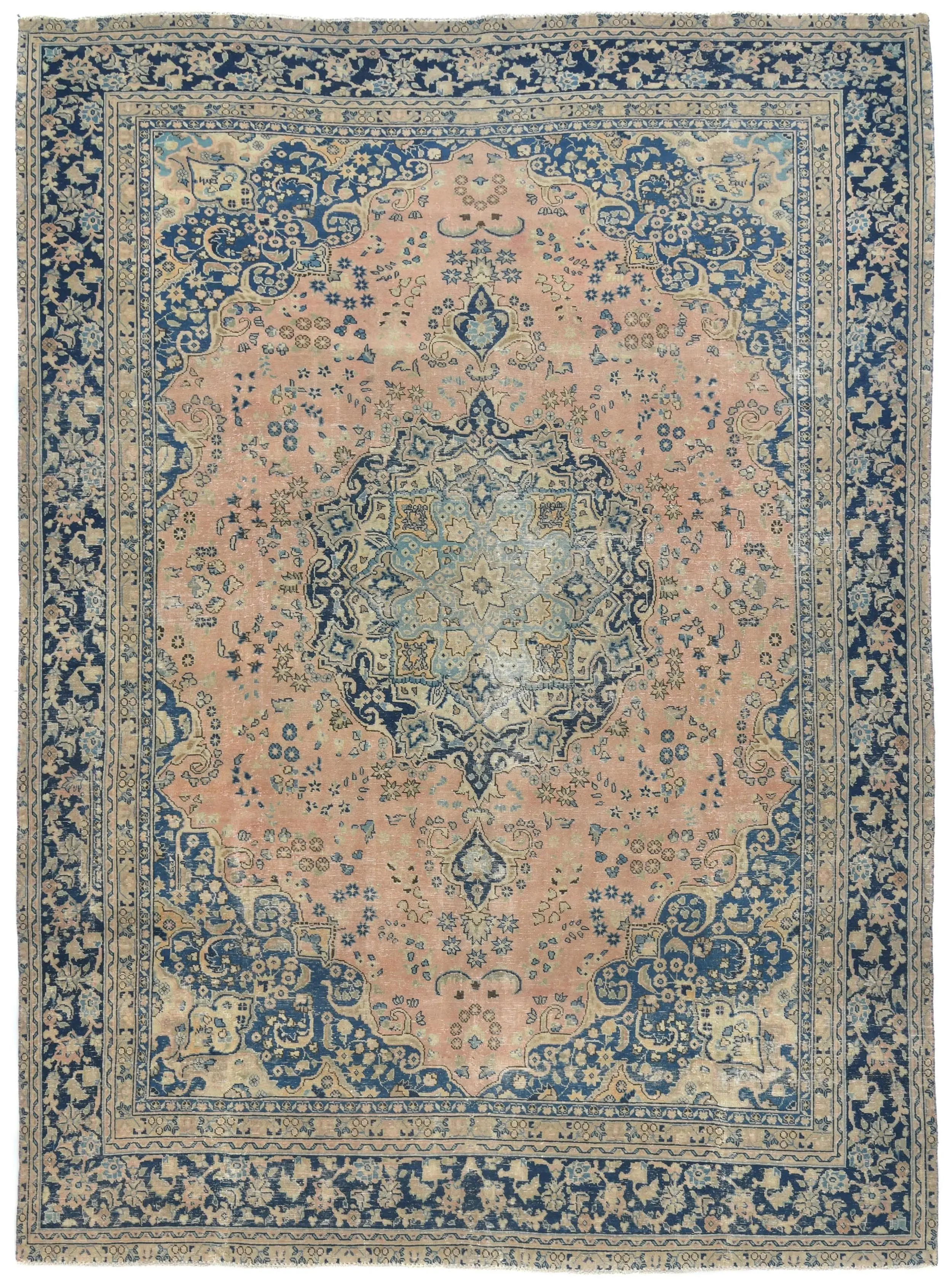 Handmade semi antique 9X12 Light Salmon Oriental rug made with vegetable dyes (fine wool pile and cotton foundation), superior knot count, and alluring ancient designs. This Oriental rug never will go out of style and would be among your most valuable treasures.