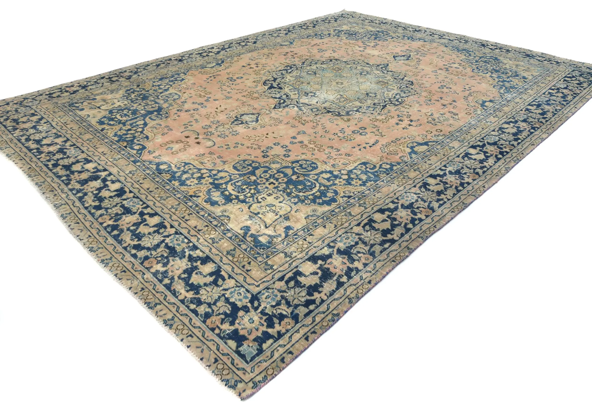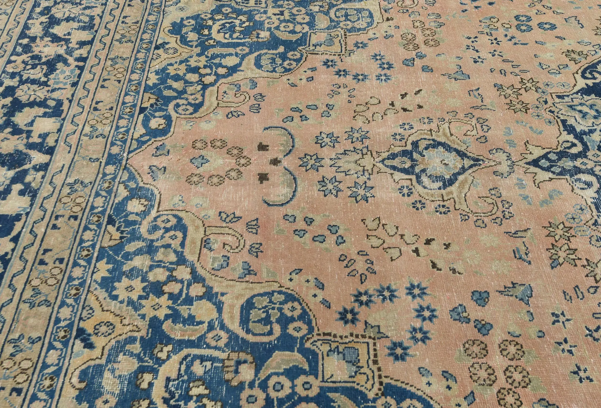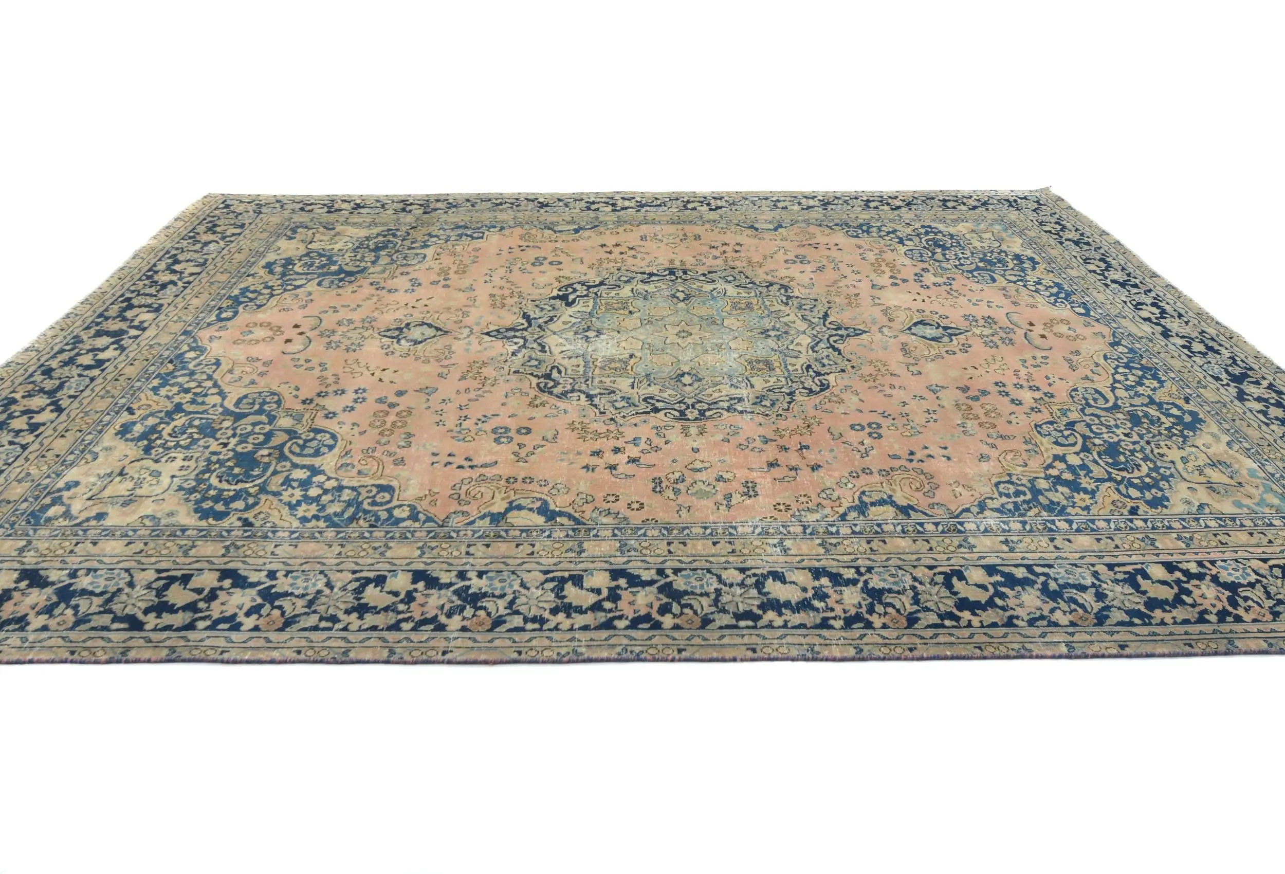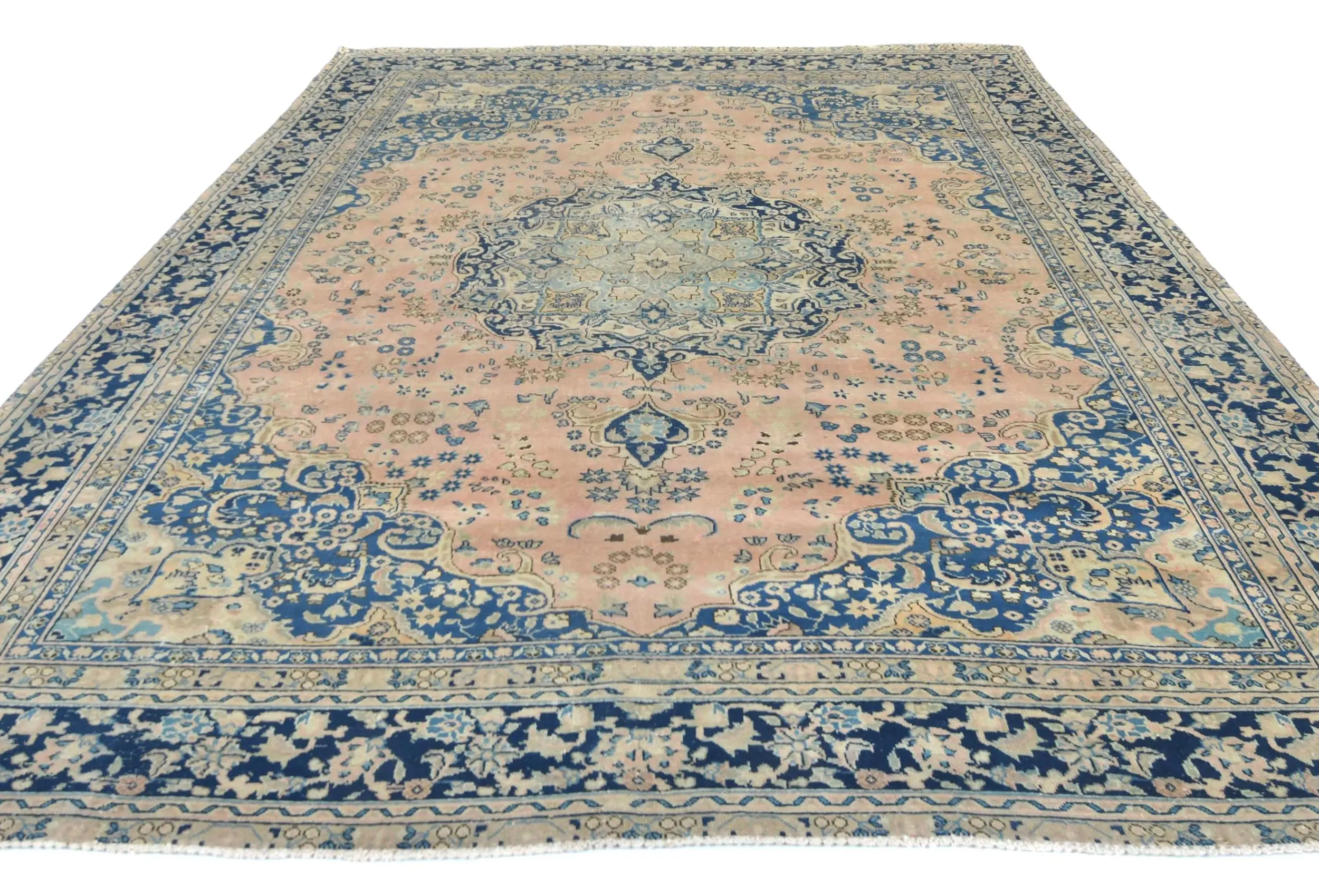 Handmade semi antique 9X12 Light Salmon Oriental rug made with vegetable dyes (fine wool pile and cotton foundation), superior knot count, and alluring ancient designs. This Oriental rug never will go out of style and would be among your most valuable treasures.