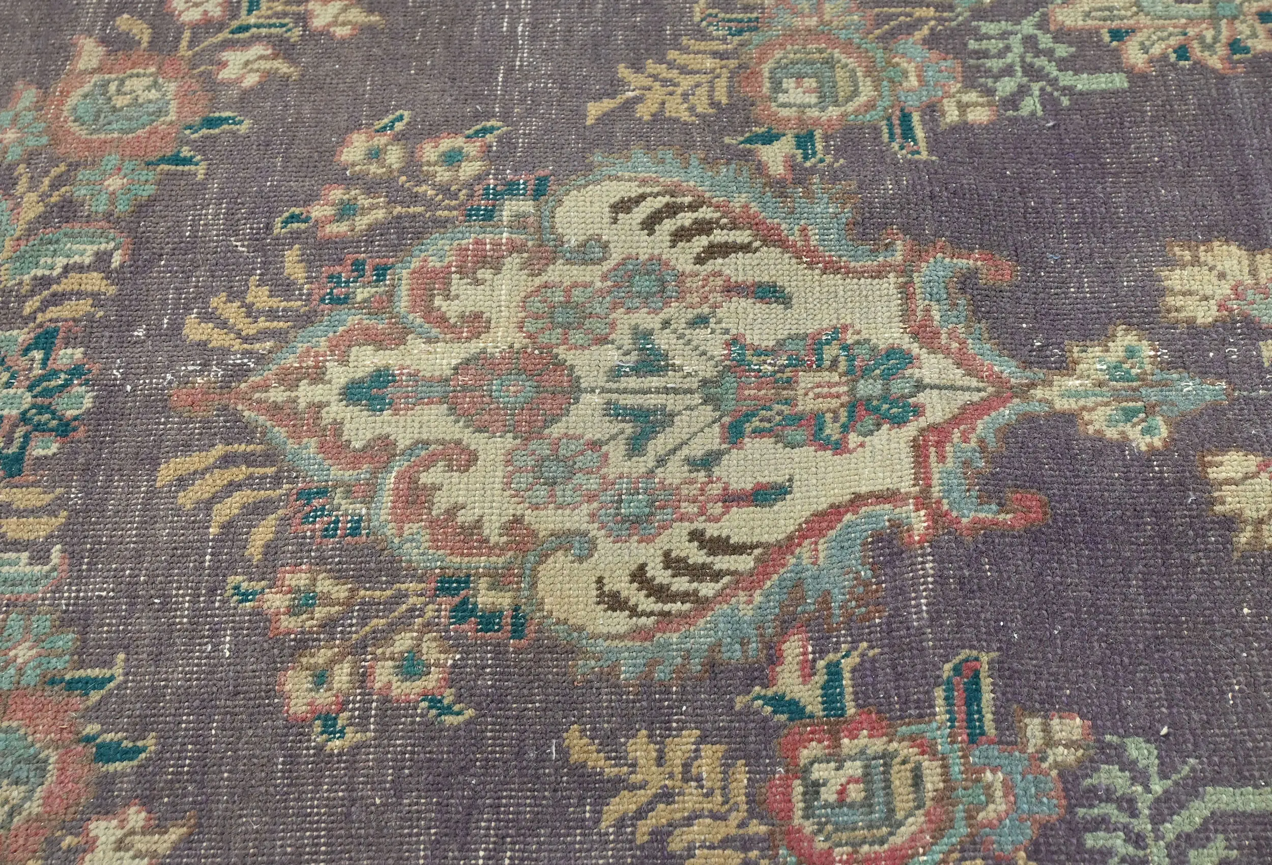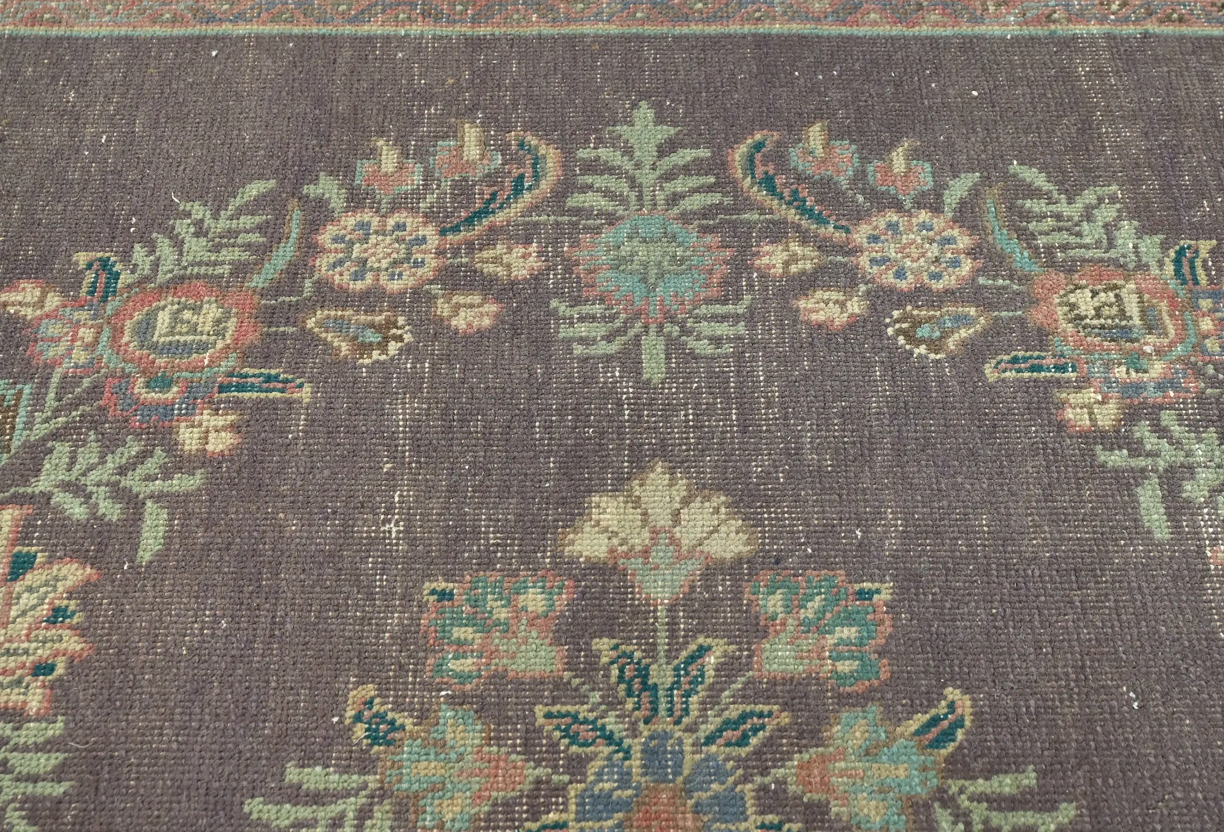 Semi Antique Muted Plum Floral 10X13 Distressed Vintage Oriental Rug